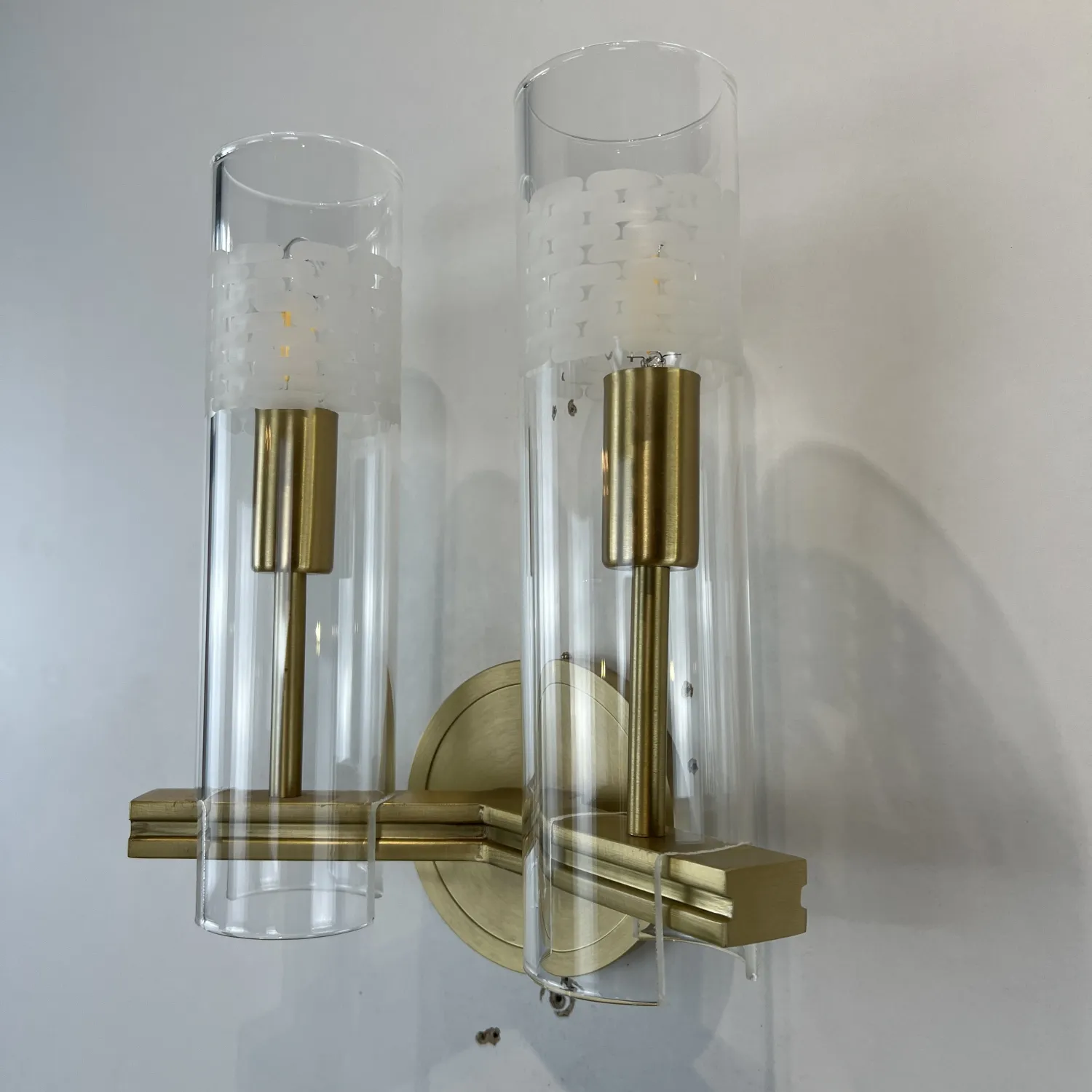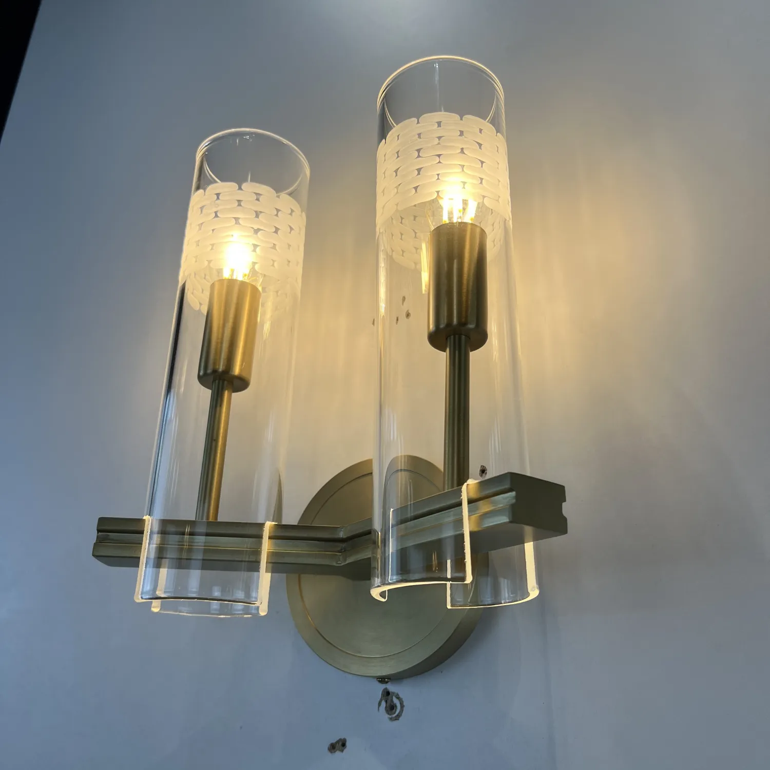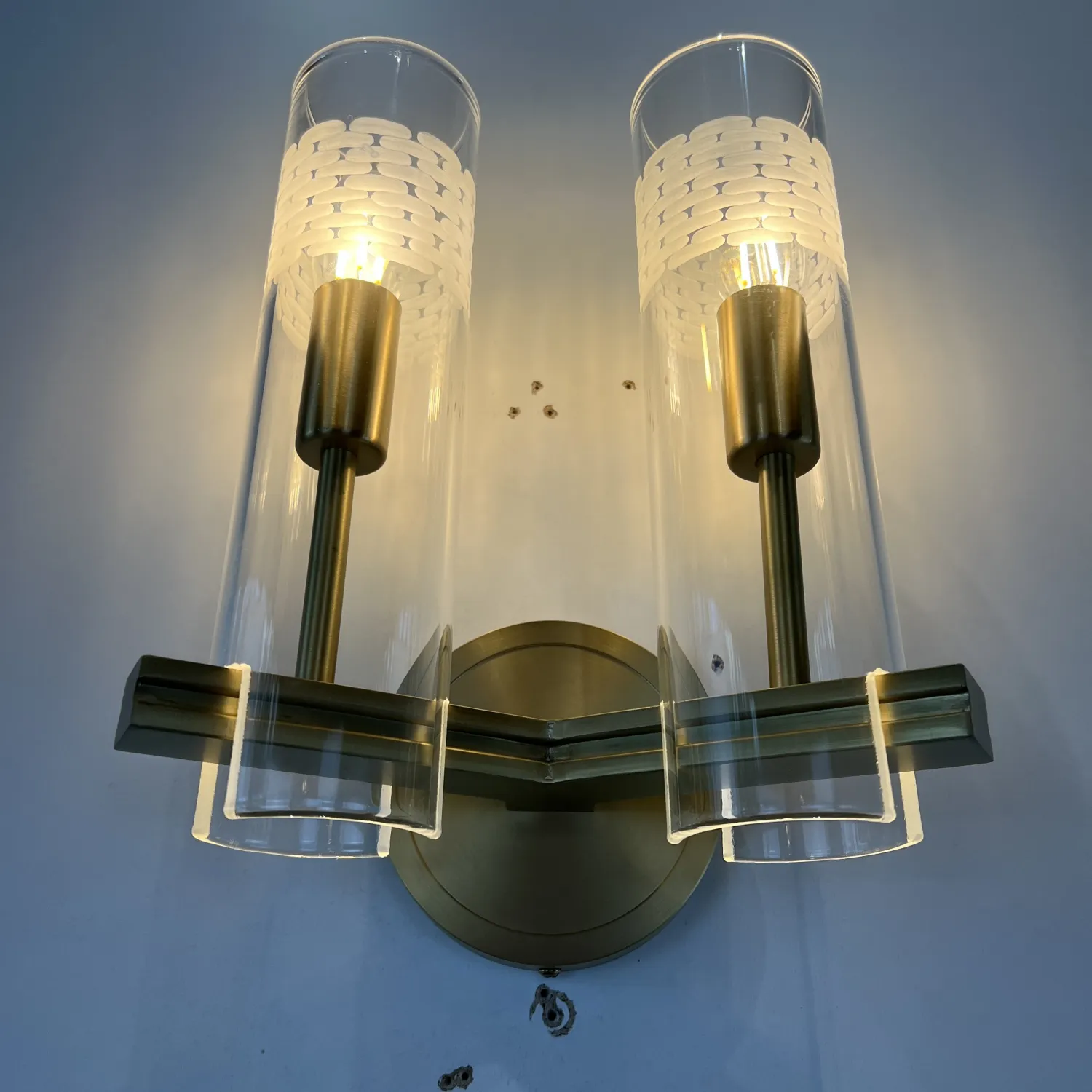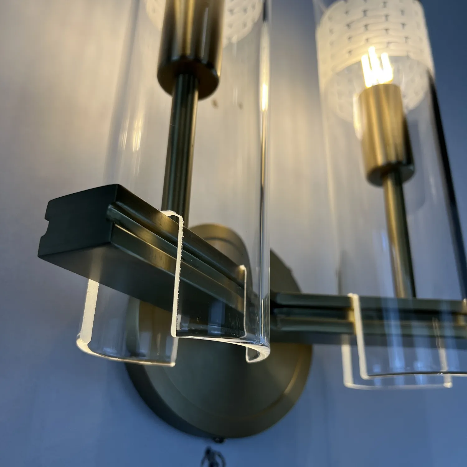 Настенный светильник Chamont 2 изготовлен из цельной латуни. Прямоугольный рычаг обеспечивает надежное крепление боросиликатного стекла.