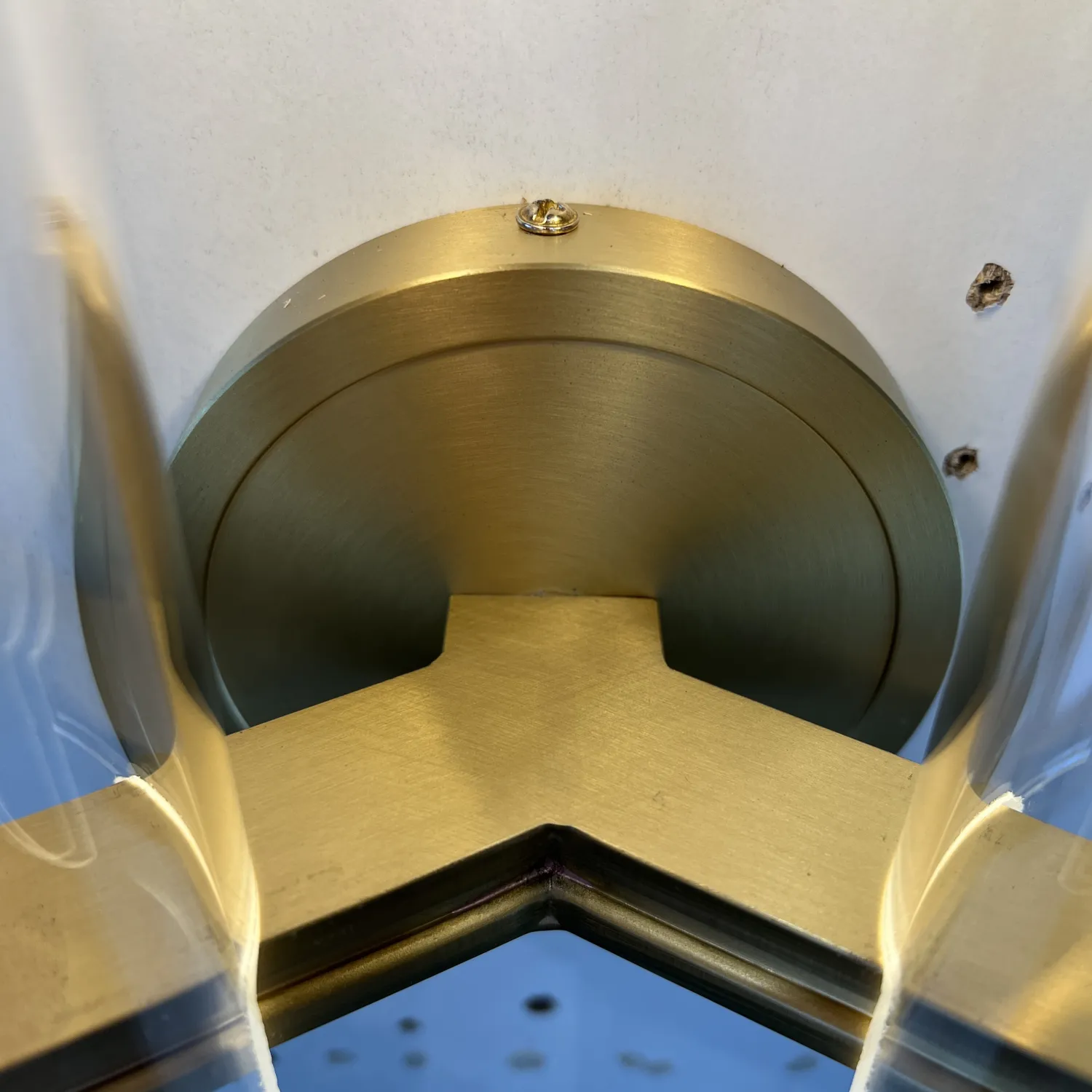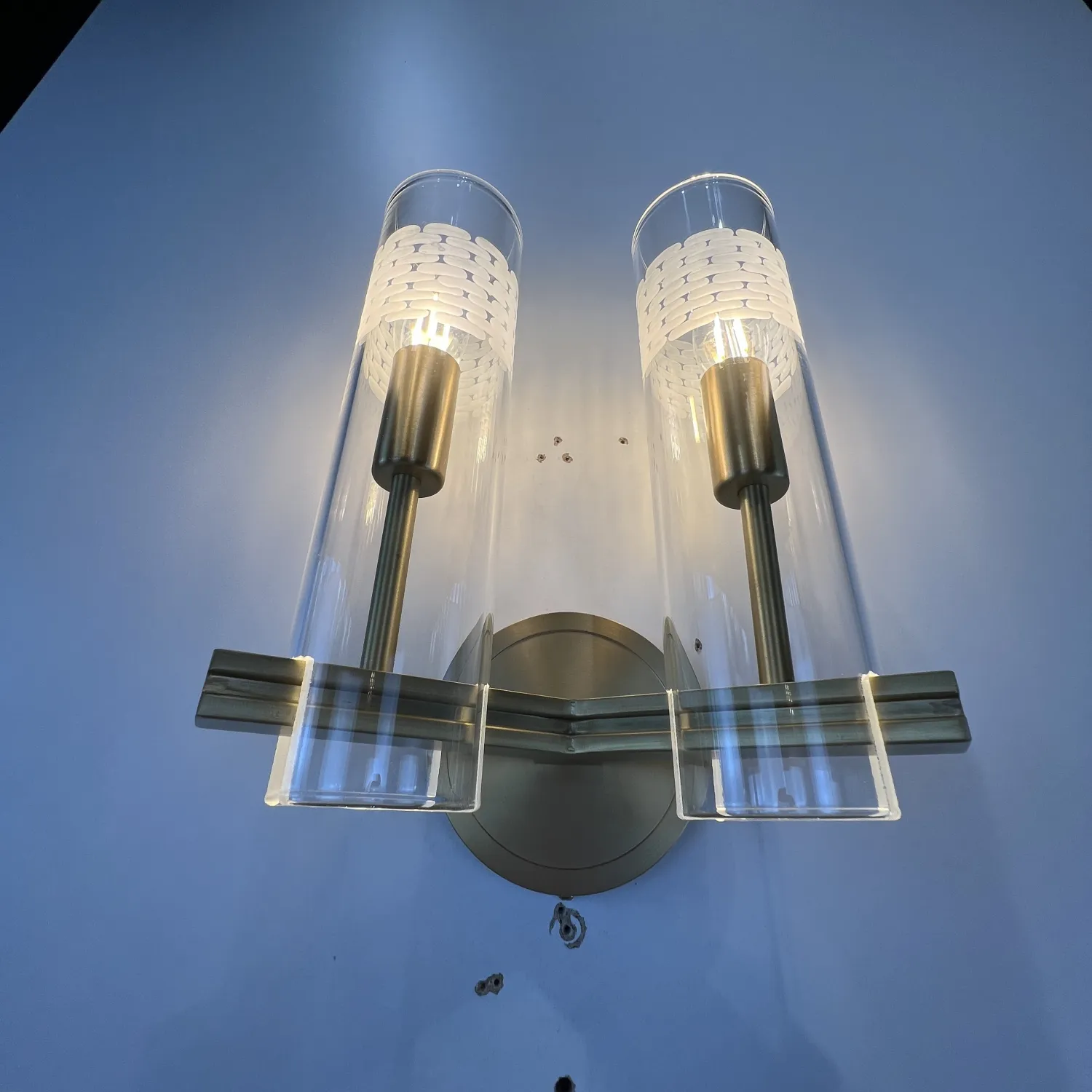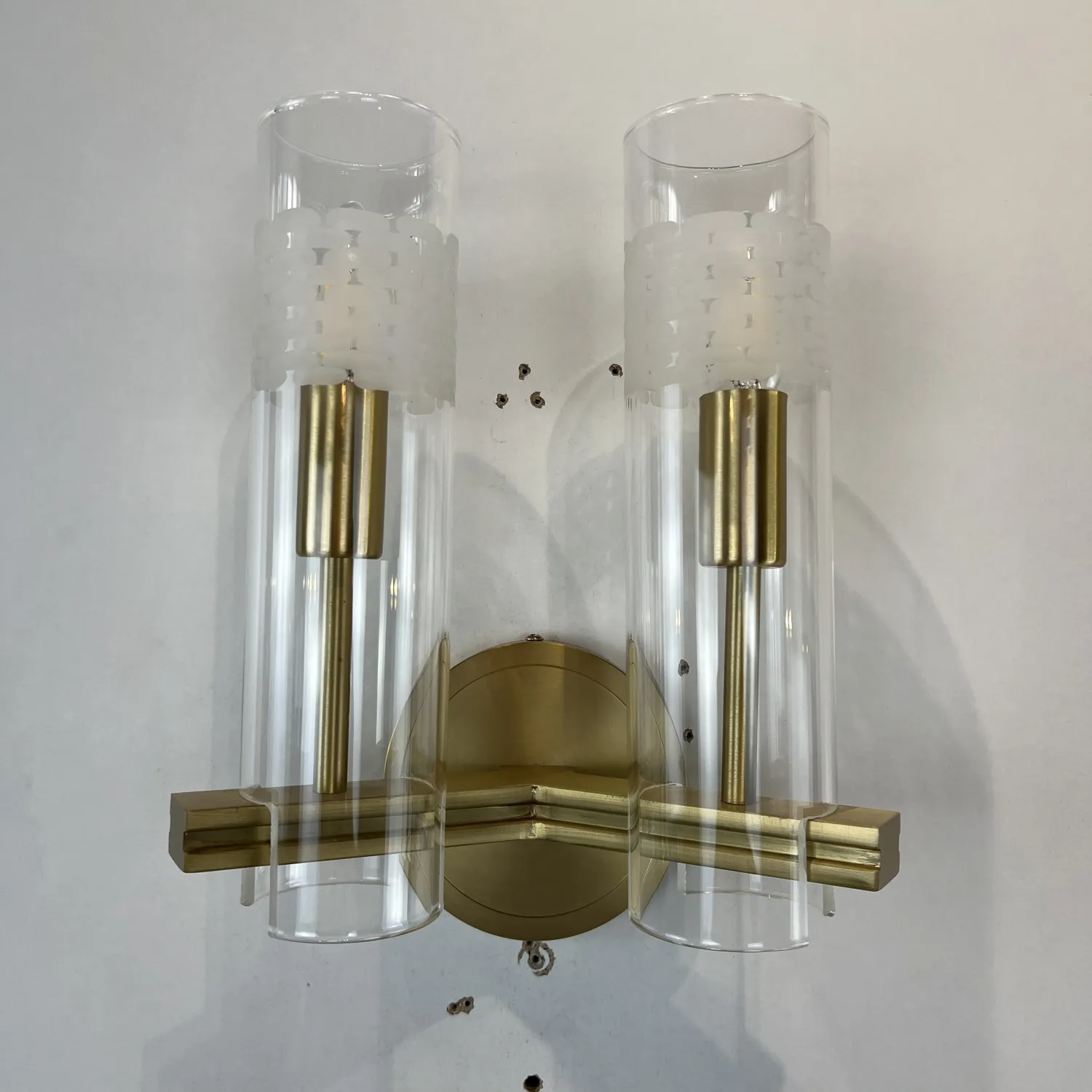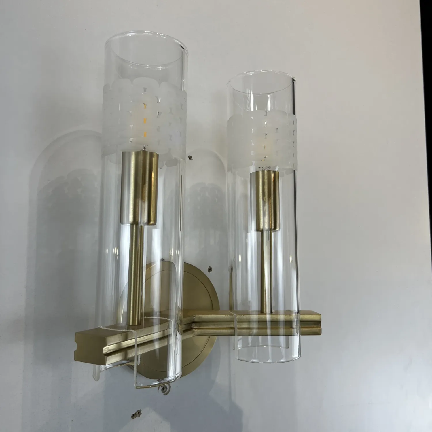 Настенный светильник Chamont 2 изготовлен из цельной латуни. Прямоугольный рычаг обеспечивает надежное крепление боросиликатного стекла.