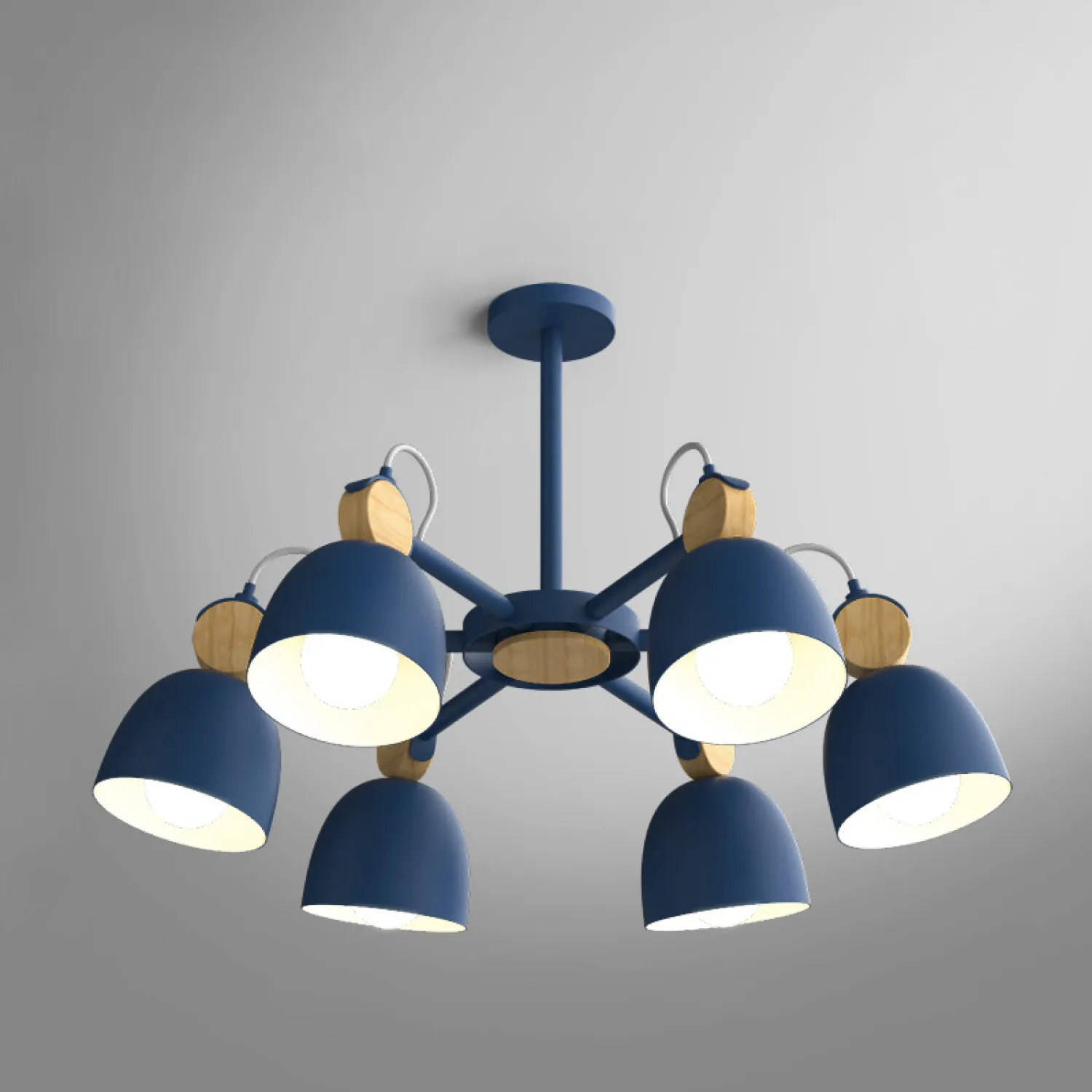 Новая люстра с регулируемым положением плафонов в скандинавском стиле в 4-х благородных оттенках. Серый, беж, черничный синий и зеленый лед. Выпускается на 3, 6 и 8 источников света. Деревянные клипы с выраженной фактурой превосходное дополнение к и без того привлекательному дизайну. Немаловажная особенность этой модели — составная стойка, позволяющая подбирать высоту от потолка 35, 50 или 65 см. Не нужно говорить, что любая модель станет любимым местом отдыха ваших глаз. Осталось только выбрать цвет! Но в этом вам помогут наши менеджеры! Цена указана за 3-х ламповую версию. Потолочная люстра на штанге ROLLA 6 bilberry - это идеальное решение для создания уютной и стильной атмосферы в вашем доме.