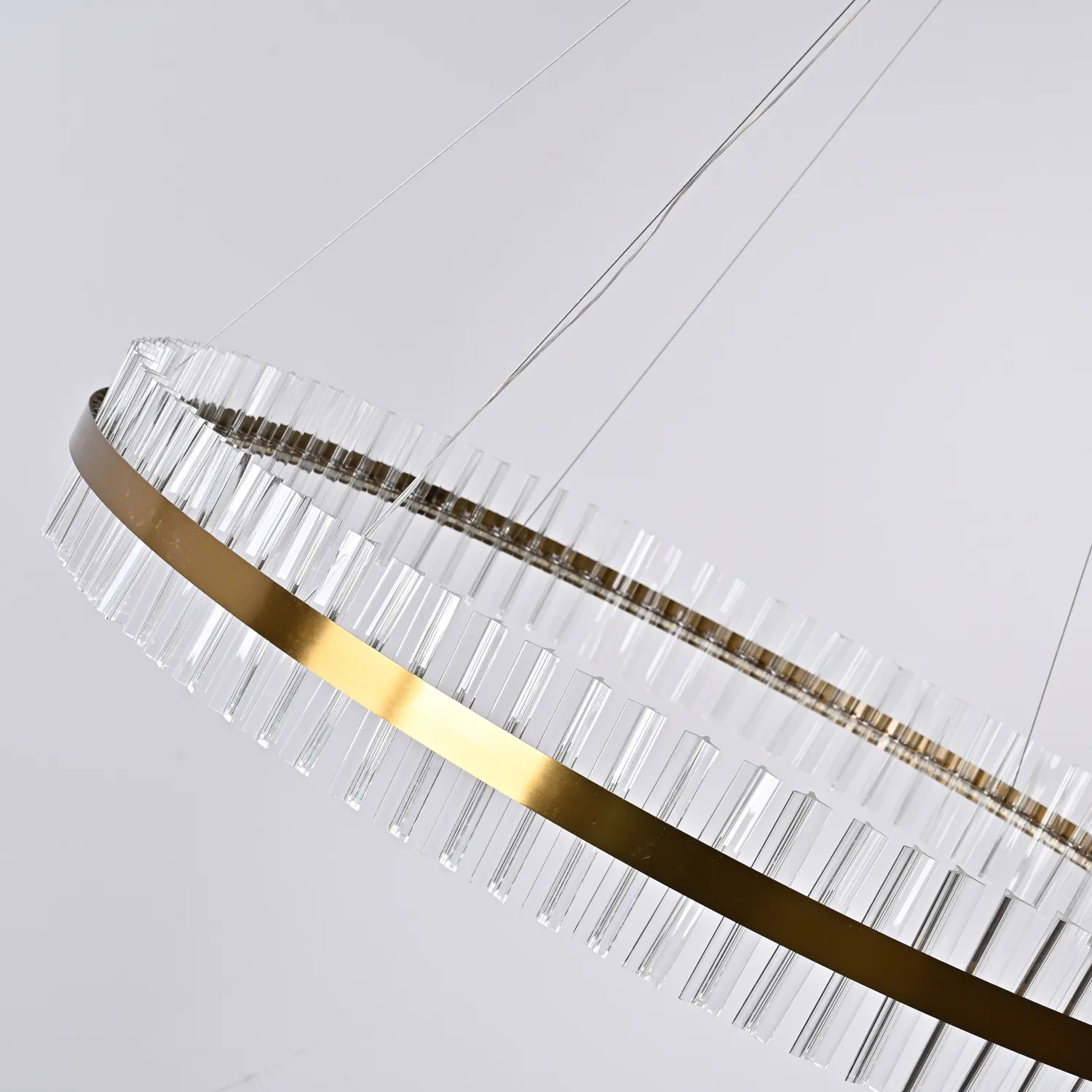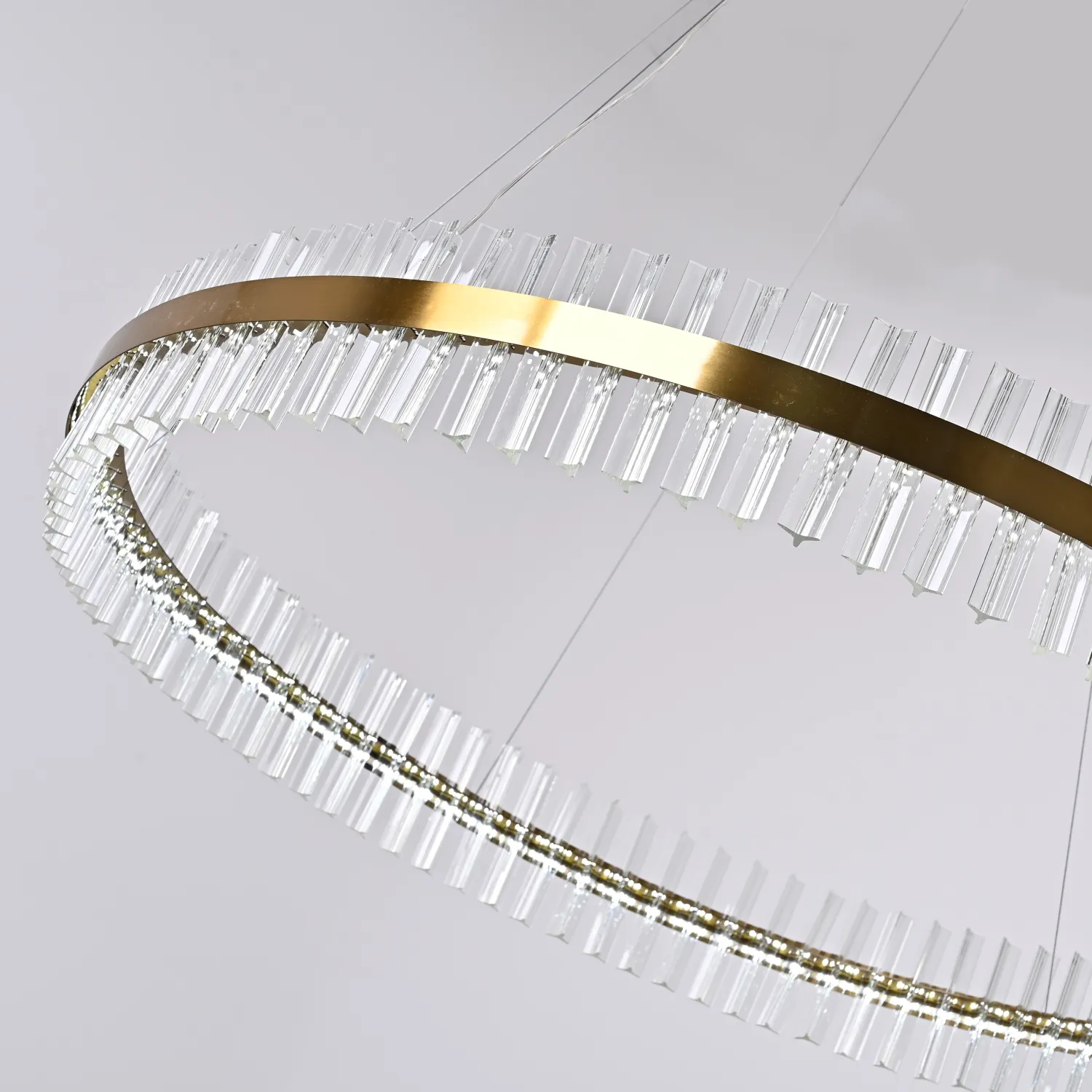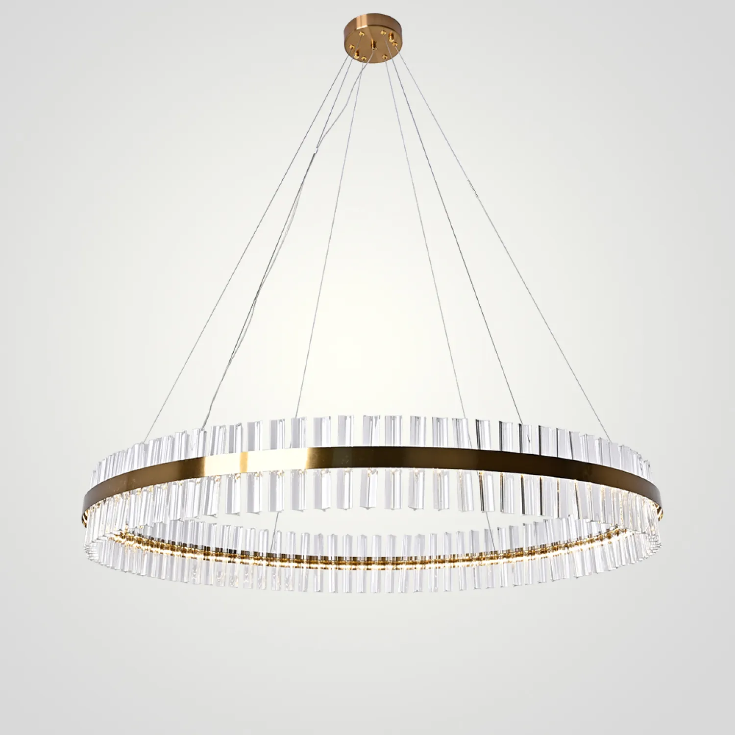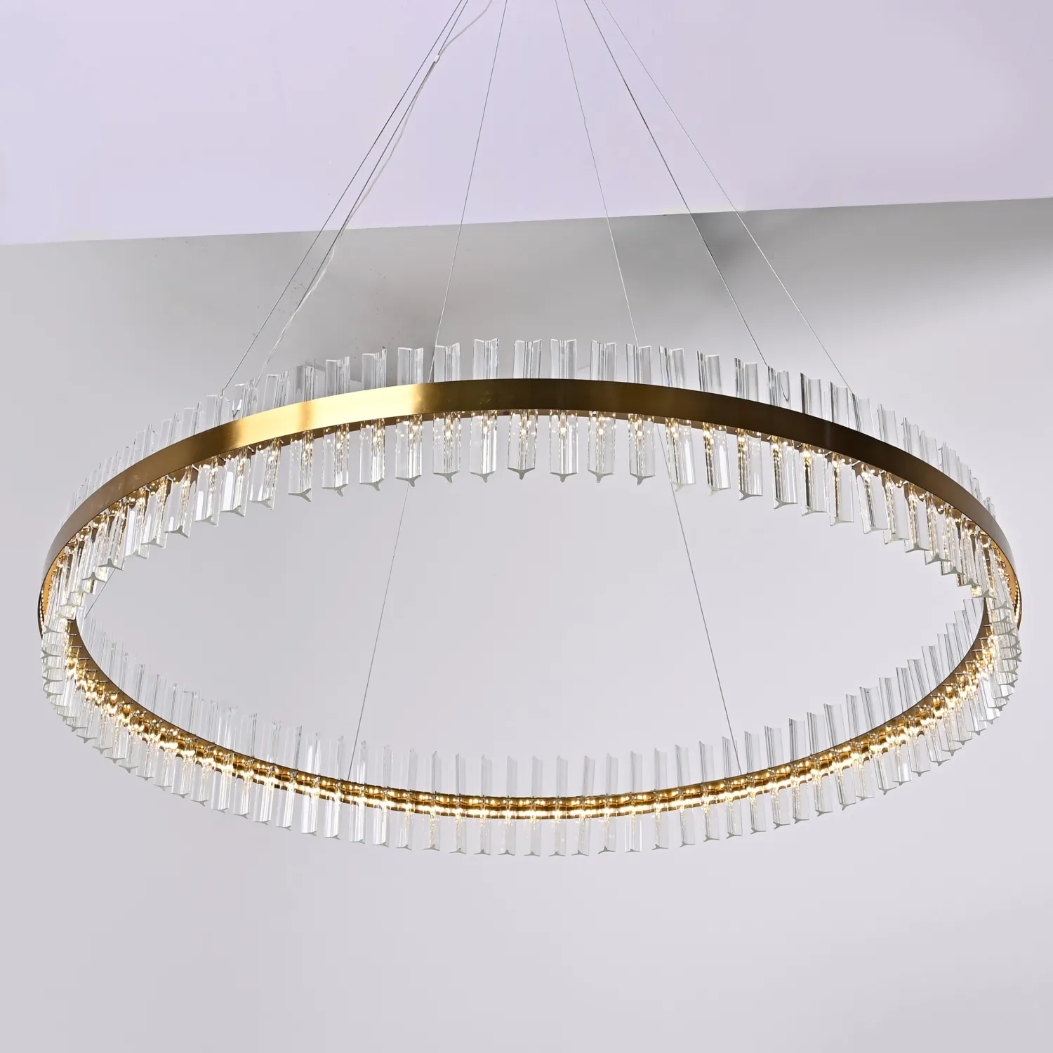 Светильник имеет круглую форму и изготовлен из прочного металла с хромированным покрытием, что придает ему элегантный и изысканный вид. Благодаря своему размеру (диаметр 120 см) он станет прекрасным акцентом в любом помещении.