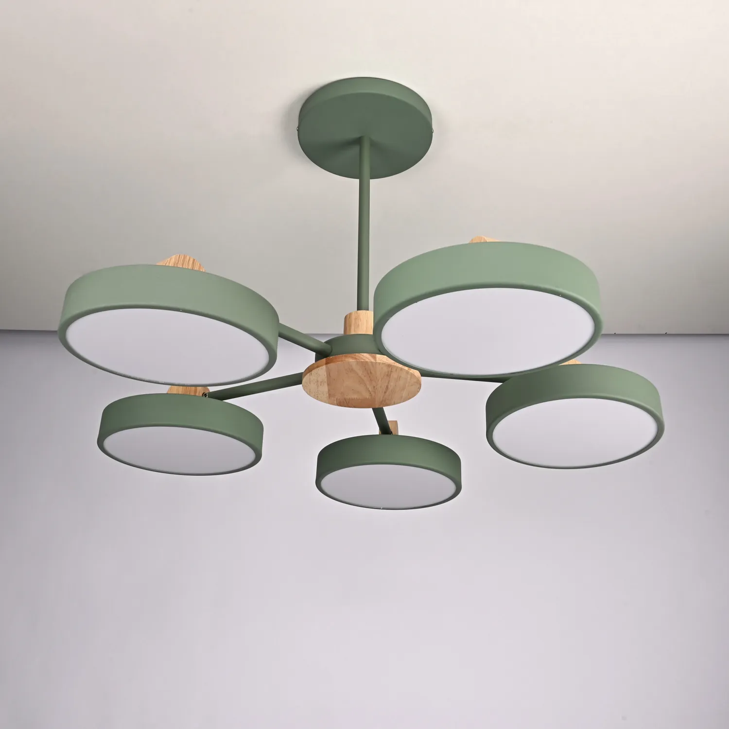 Новинка: Люстра с поворотными плафонами и деревянным декором с выраженной фактурой. Модные цвета: голубой лед, зеленая дыня, ягодный розовый и кунжутный серый — не только позволят вписаться в любую цветовую гамму, но наряду с интересным внешним видом, сами станут привлекательным центром интерьерной вселенной. Особое значение имеет стойка с минимальной высотой всего 18 см. от потолка, что крайне значимо в наших городских реалиях, где высокие потолки далеко не везде обычная вещь. Цена указана за модификацию с 3-мя плафонами. Остальную информацию, пожалуйста уточняйте у наших менеджеров. Потолочная люстра MOVE 5 Green - это элегантное и стильное освещение для вашего интерьера. Ее современный дизайн и изысканный зеленый цвет придадут вашему помещению уют и изысканность. Люстра освещает пространство равномерно и ярко, создавая уютную атмосферу в комнате. MOVE 5 Green идеально подойдет для гостиной, спальни или столовой. Позвольте этой потолочной люстре добавить шарм и стиль в ваш дом!