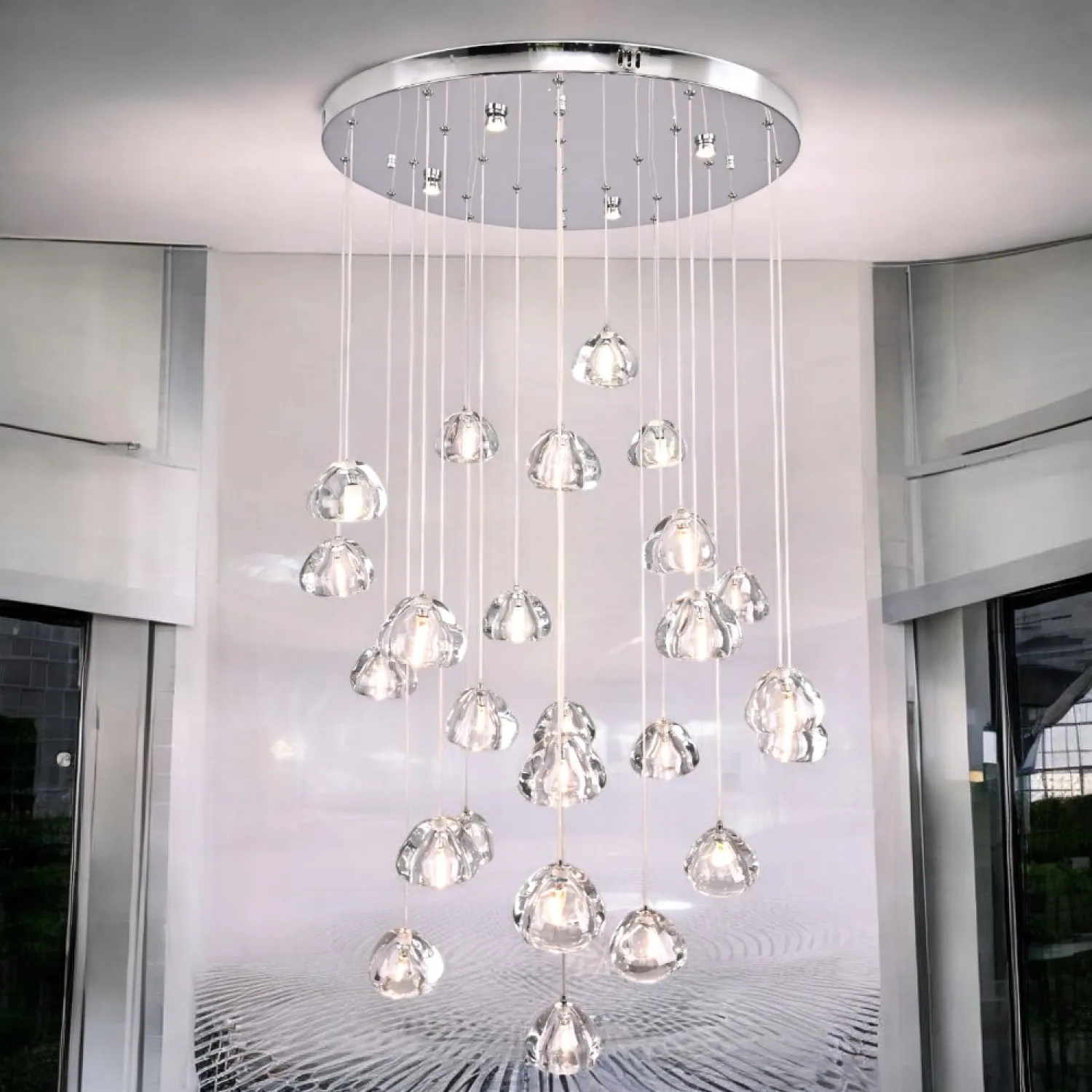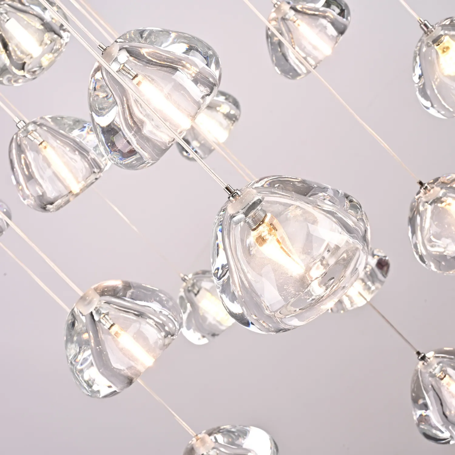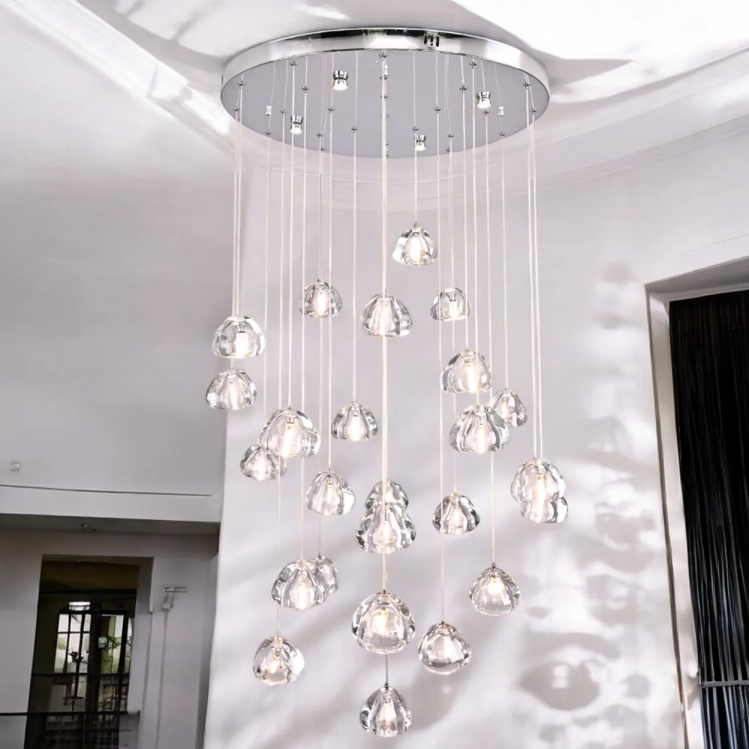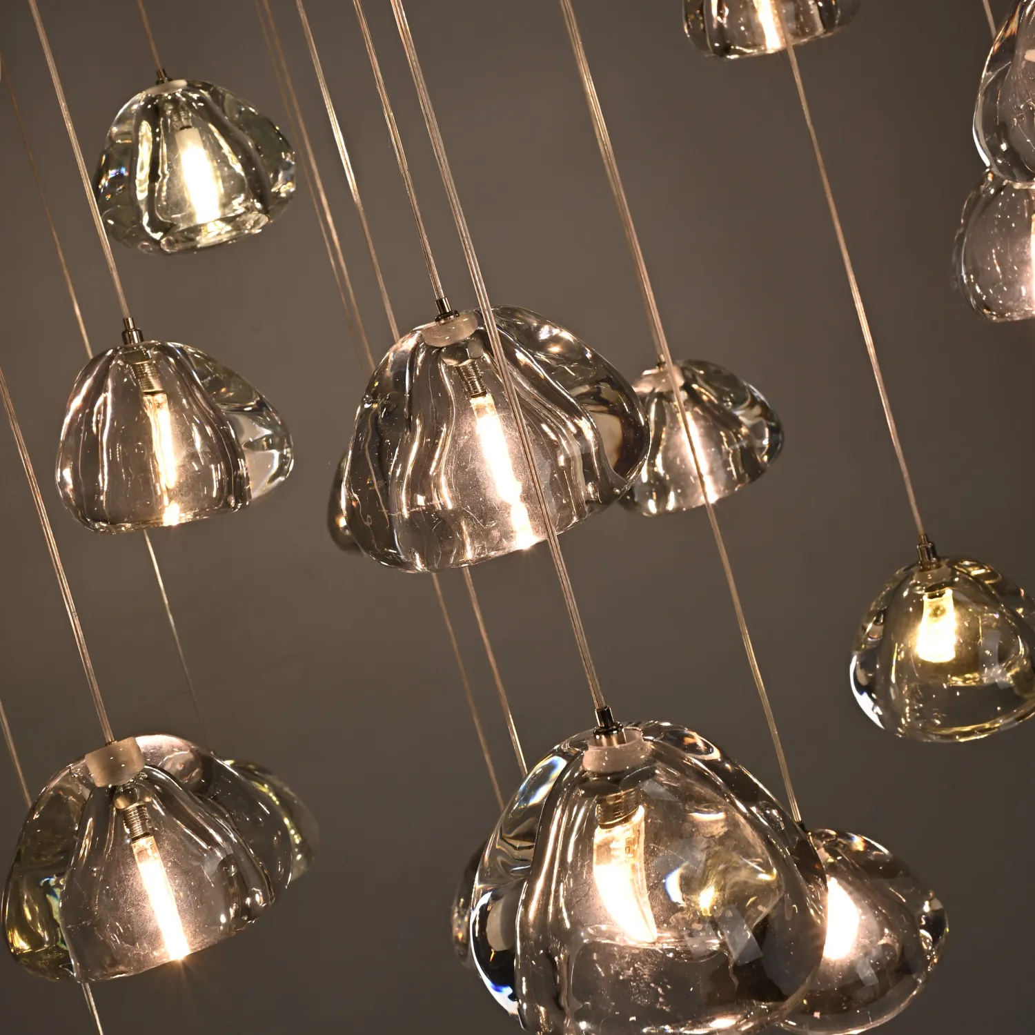 Светодиодный каскадный светильник с массивными стеклянными плафонами на общей потолочной плоскости. Дополнительные точечные светильники в основании, подсвечивают всю композицию и создают забавную игру преломления света. Встретим август каскадом падающих звезд. Выпускается на 3, 5, 7, 14 и даже 26 ламп. Так же по запросу возможно изготовить люстру любого размера с желаемым количеством подвесов. Подвесная люстра METEORA 26 - идеальное сочетание элегантности и функциональности для вашего интерьера! Эта потрясающая люстра станет настоящим украшением любого помещения. Сочетание изящного дизайна и высококачественных материалов делает ее непревзойденной в своем классе. Металлическая основа и кристальные подвески создают эффектный световой эффект, который добавит шик и роскошь в вашу обстановку. METEORA 26 имеет 26 лампочек, что обеспечивает яркое и равномерное освещение всего помещения. Вы сможете наслаждаться комфортной и приятной атмосферой в любое время дня. Эта люстра идеально подходит для гостиной, столовой или спальни. Она станет центральным элементом вашего интерьера, привлекая восхищенные взгляды гостей и создавая уютную атмосферу в вашем доме. METEORA 26 легко устанавливается и обслуживается. Она оснащена высококачественными компонентами, которые гарантируют долгий срок службы и надежную работу. Кроме того, она экономична и энергоэффективна, что позволит вам сэкономить на счетах за электроэнергию. Не упустите возможность добавить изысканности и роскоши в свой дом с помощью люстры METEORA 26. Покупайте сейчас и наслаждайтесь роскошным освещением, которое подчеркнет ваш неповторимый стиль и создаст непревзойденную атмосферу в вашем интерьере!