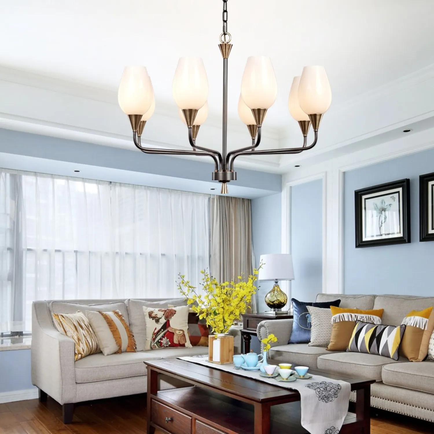 Сочетание изящного дизайна и превосходного качества материалов делает эту люстру по-настоящему уникальной. Ее молочно-белый цвет и стеклянные элементы создают неповторимый световой эффект, который добавит особую атмосферу в вашу комнату.