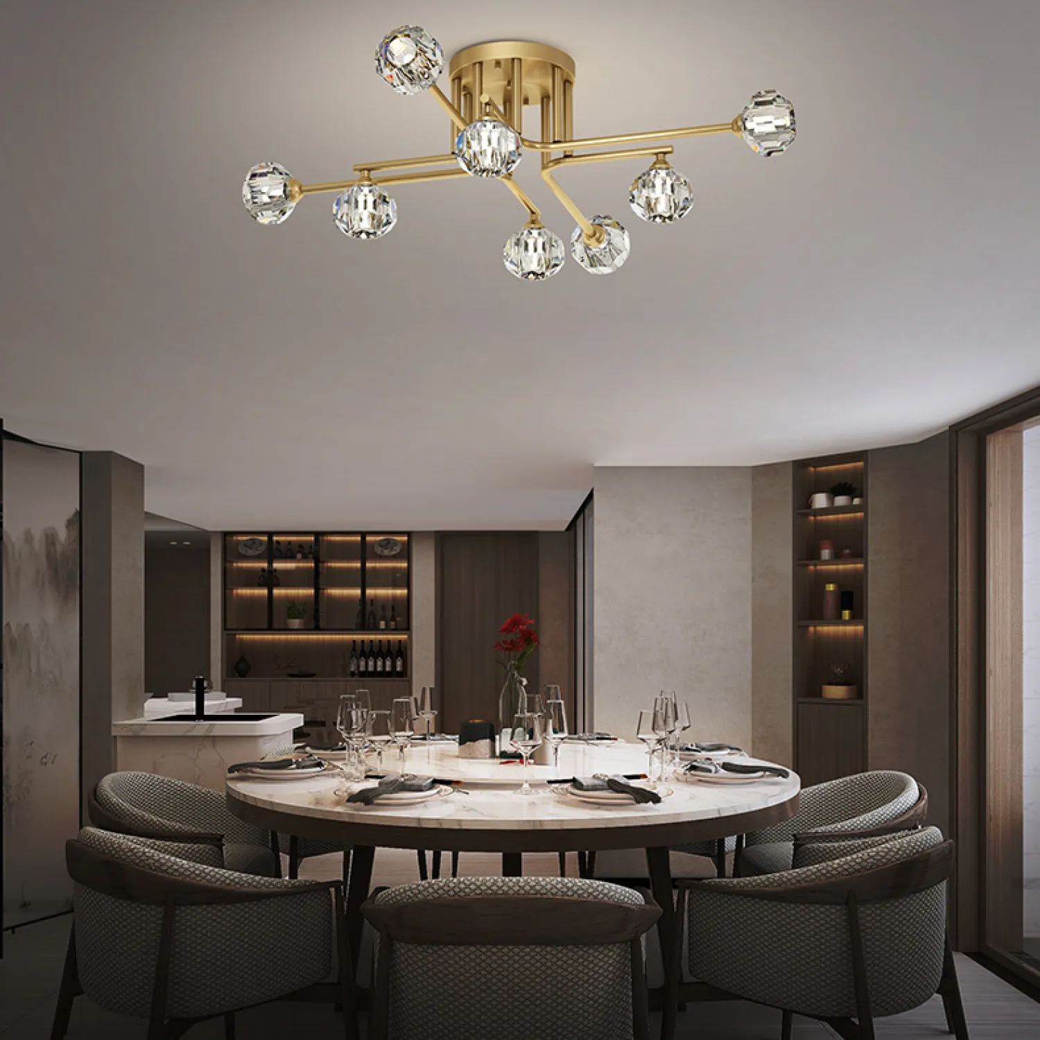 Кроме того, эта потолочная люстра легко устанавливается и обслуживается. Она оснащена высококачественными энергосберегающими лампами, что позволяет сэкономить на электроэнергии.