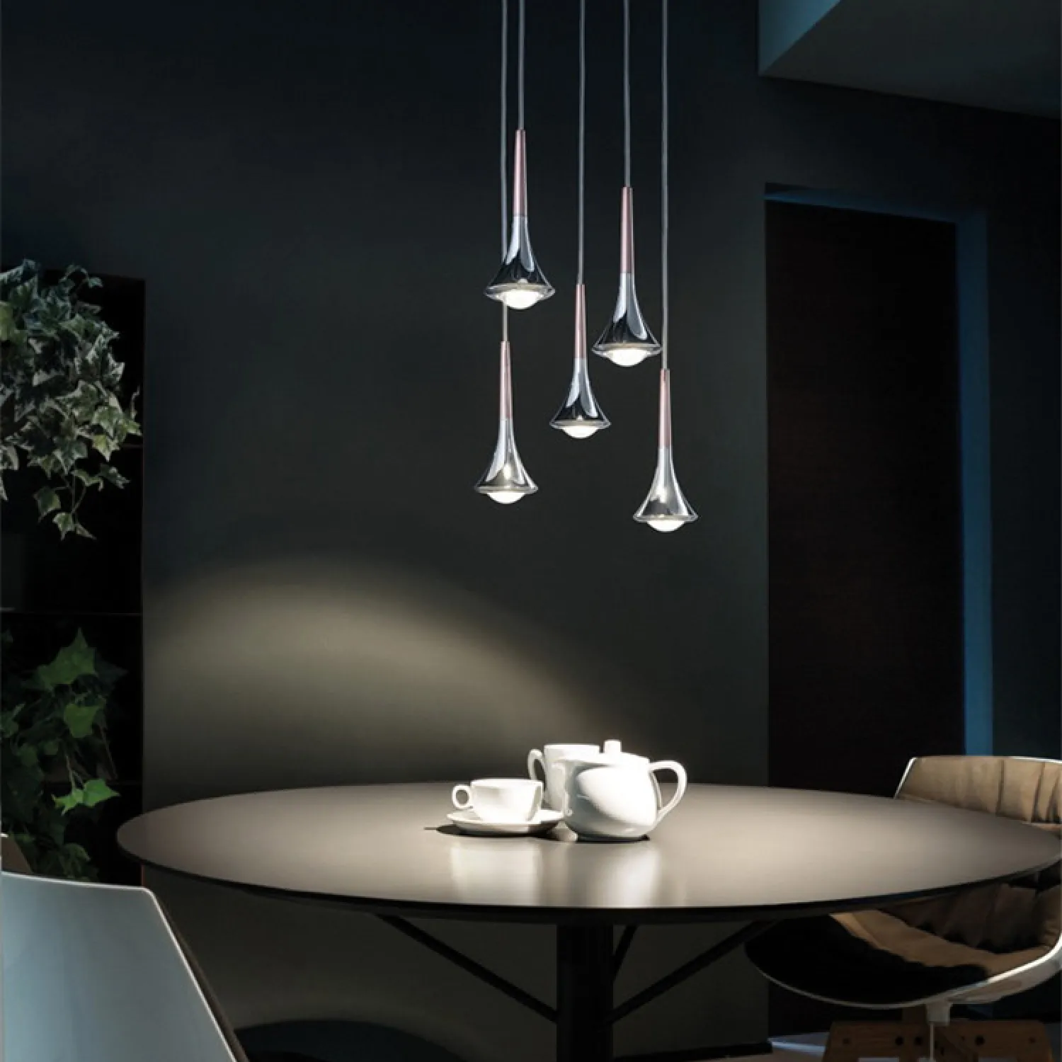 Сочетание розового золота и прозрачного стекла делает этот светильник настоящим произведением искусства. Он прекрасно подойдет для освещения столовой, гостиной или спальни, создавая уютную и расслабленную атмосферу.