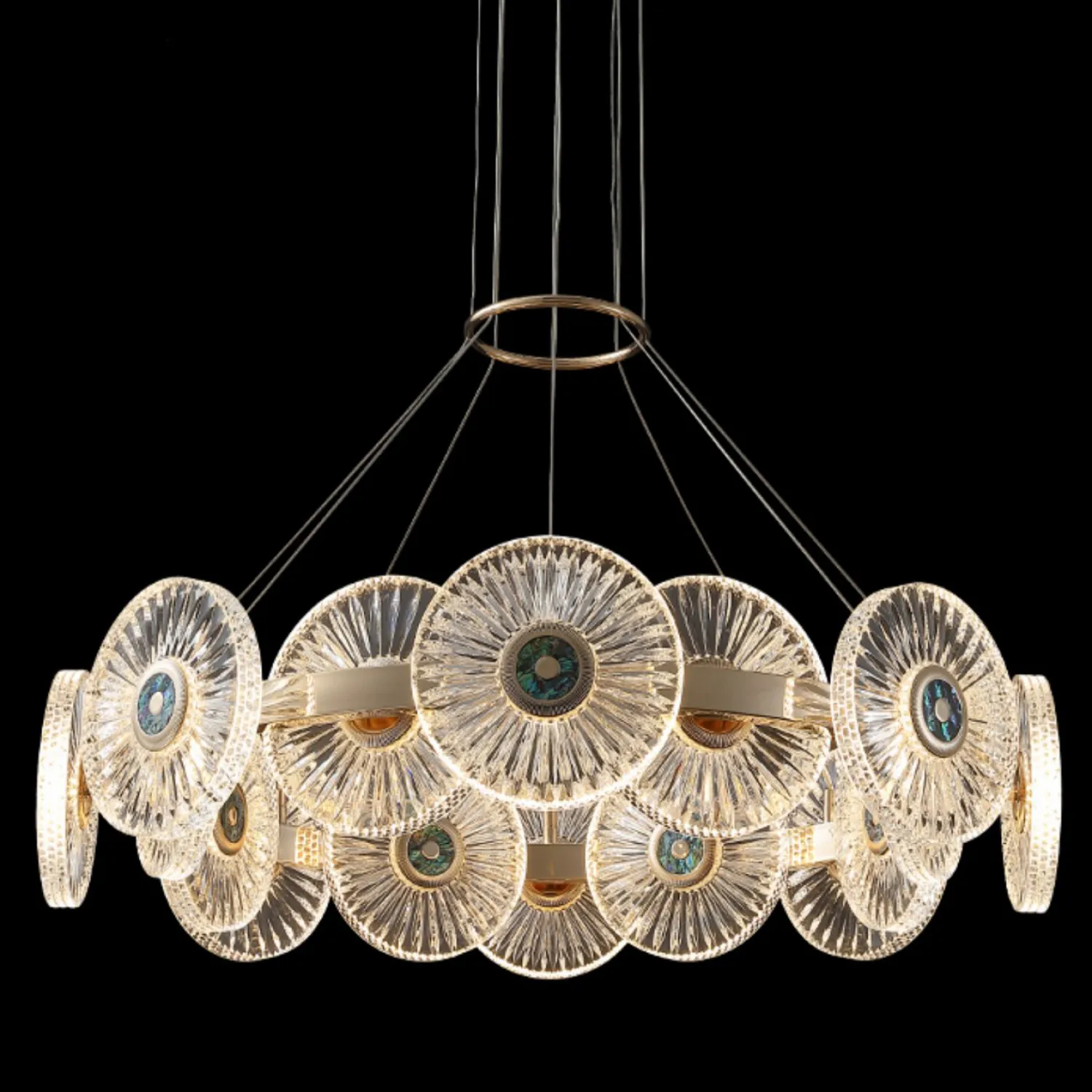 Благодаря своей подвесной конструкции, эта люстра идеально подходит для помещений с высокими потолками, создавая эффектный и впечатляющий вид.