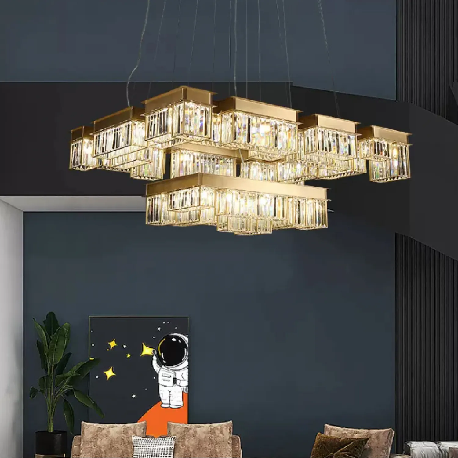 Подвесная люстра BERNADET идеально подходит для гостиной, столовой или спальни. Она эффектно смотрится как в классическом, так и в современном интерьере, придавая помещению изысканность и роскошь. Благодаря своей универсальности, она легко впишется в любой стиль декора.