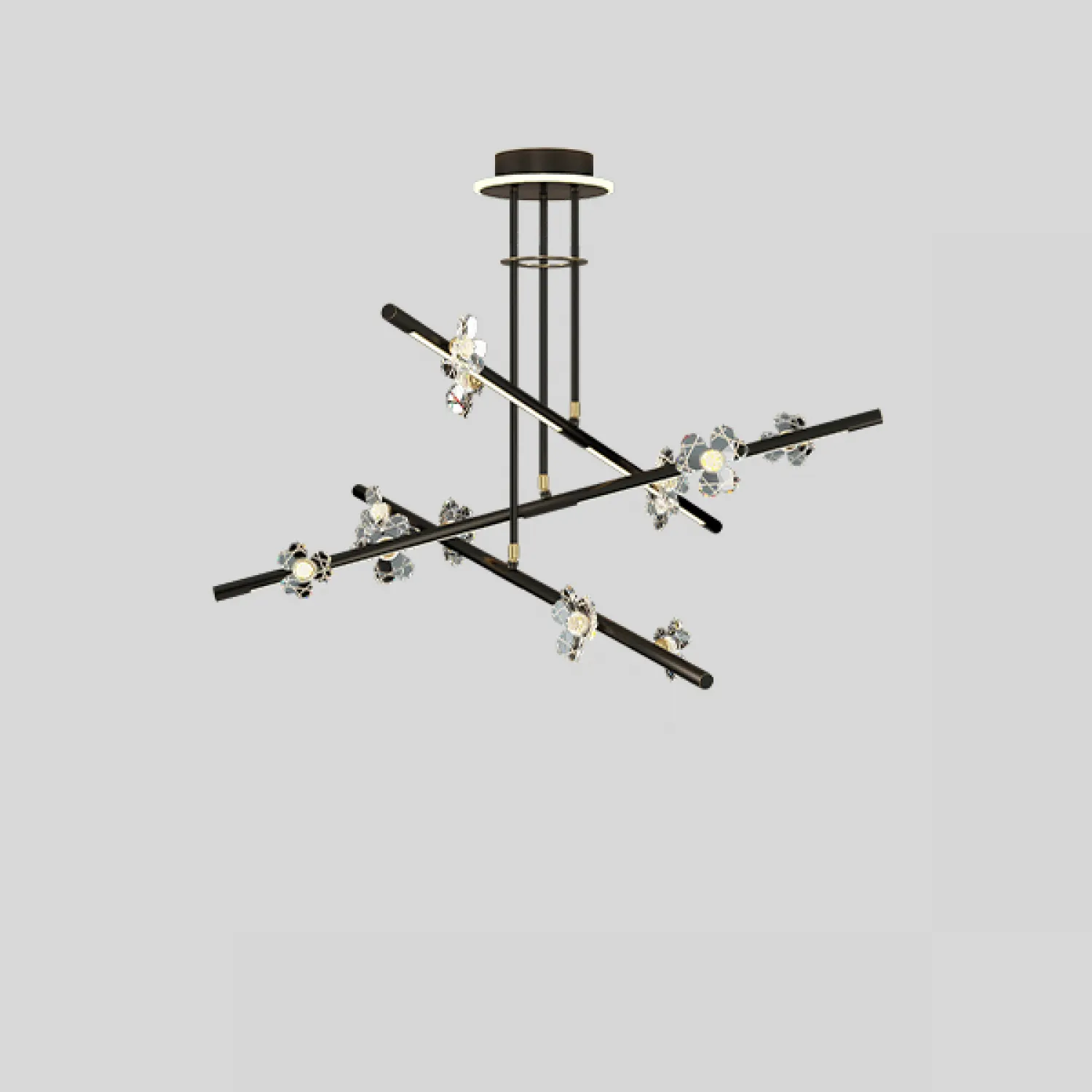 Эта потолочная люстра изготовлена из высококачественных материалов, которые обеспечивают долговечность и надежность. Ее металлический каркас и хрустальные подвески создают впечатляющий эффект, добавляя в вашу комнату блеск и шарм.