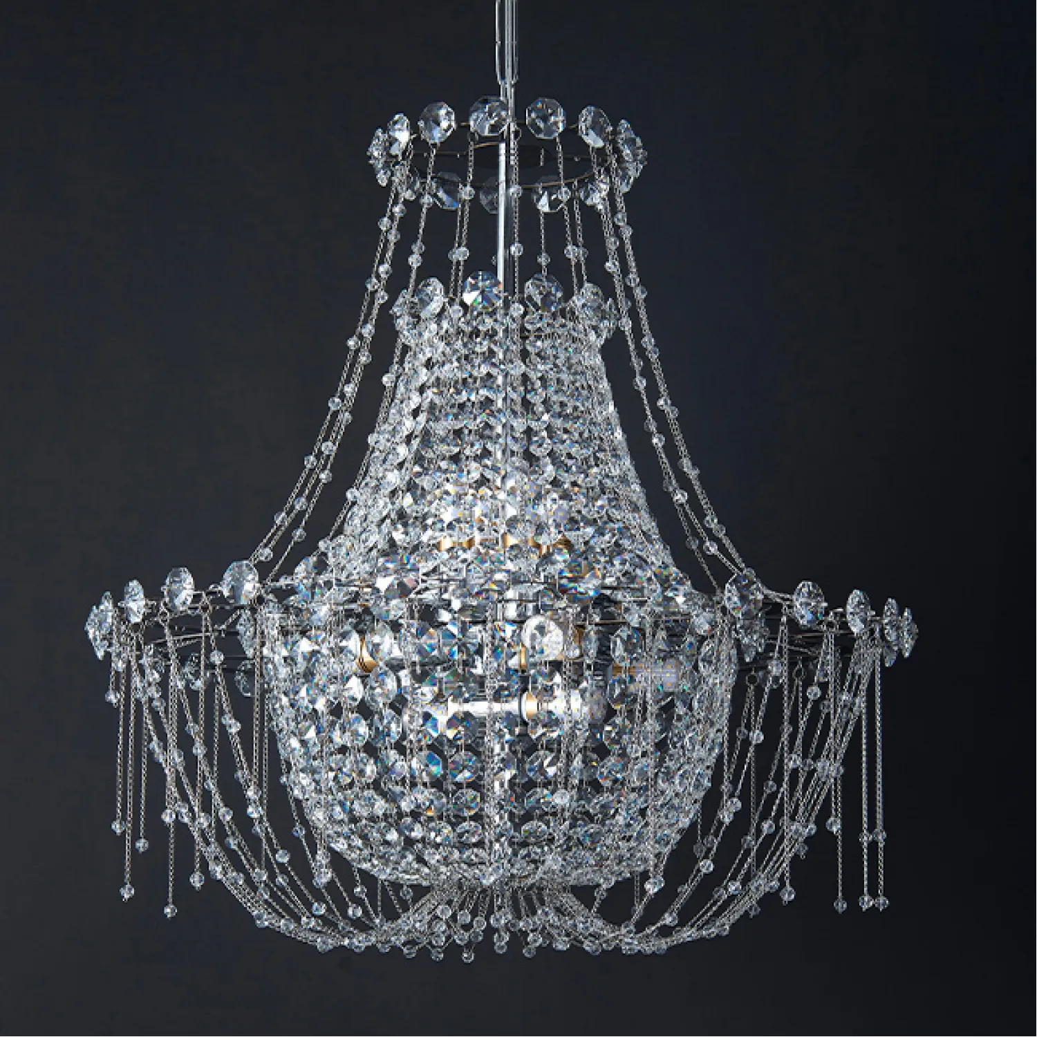 Эта люстра имеет прочную структуру из высококачественного металла, которая обеспечивает ее долговечность и надежность. Благодаря своему стильному дизайну с кристаллическими подвесками, она привнесет нотку роскоши и изысканности в ваш дом.