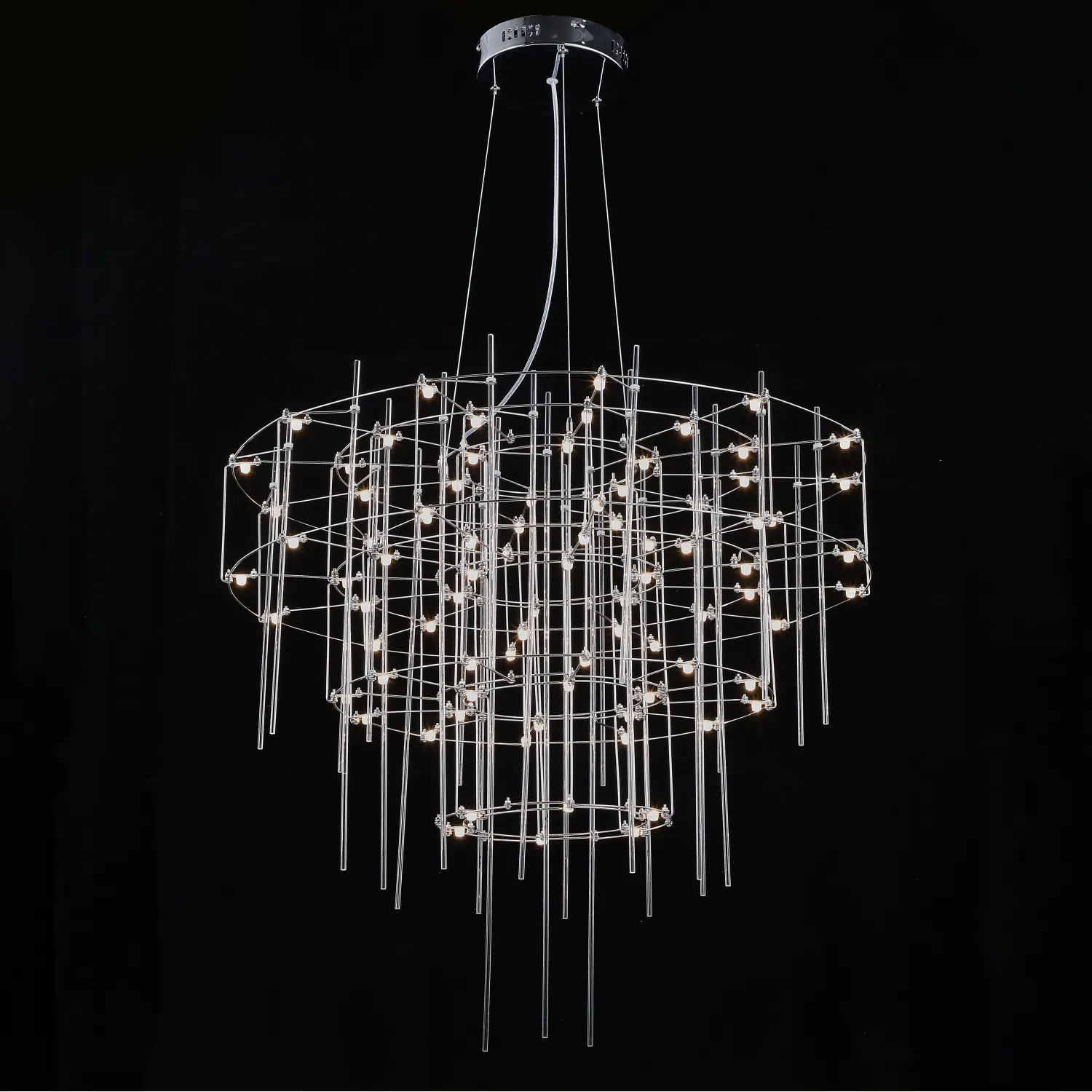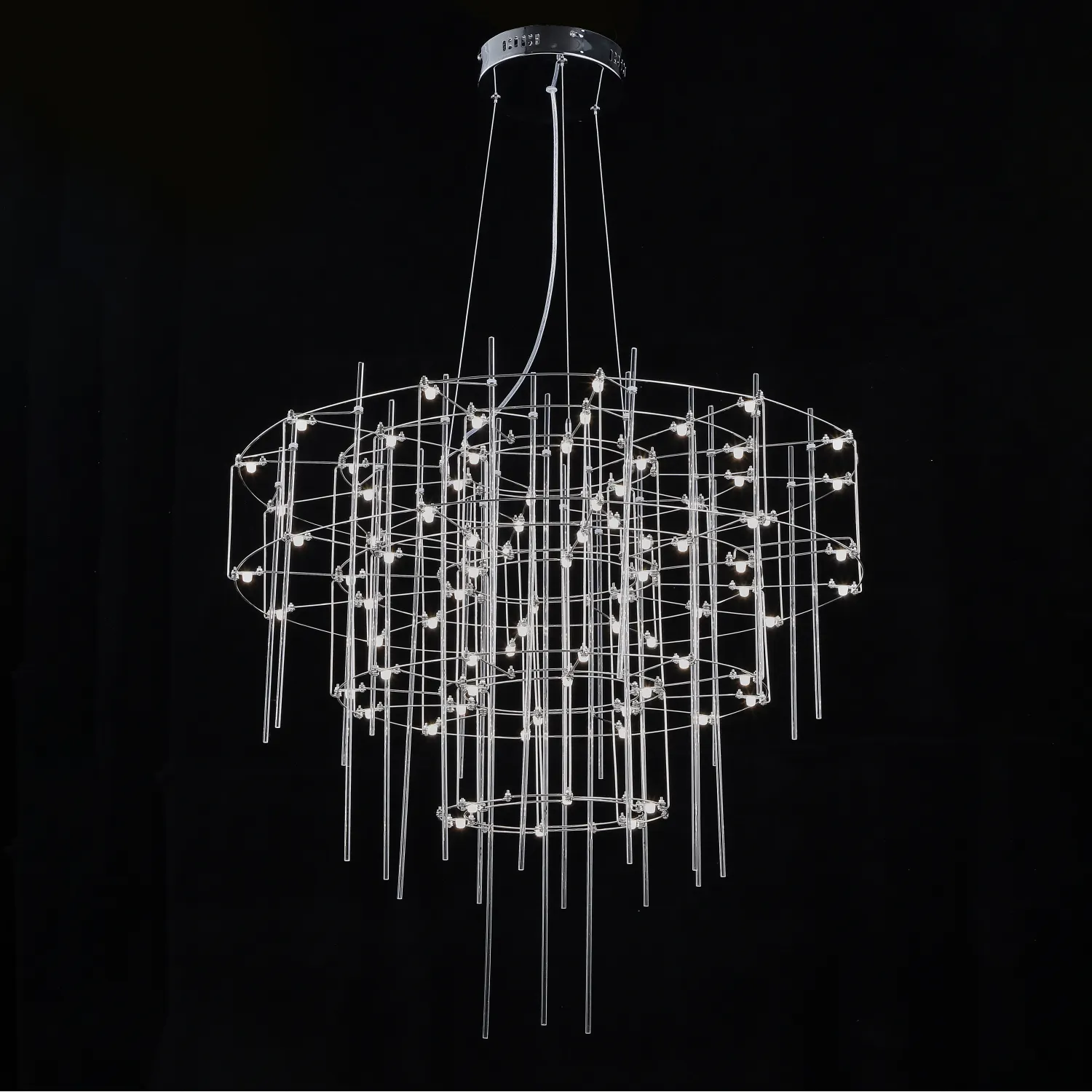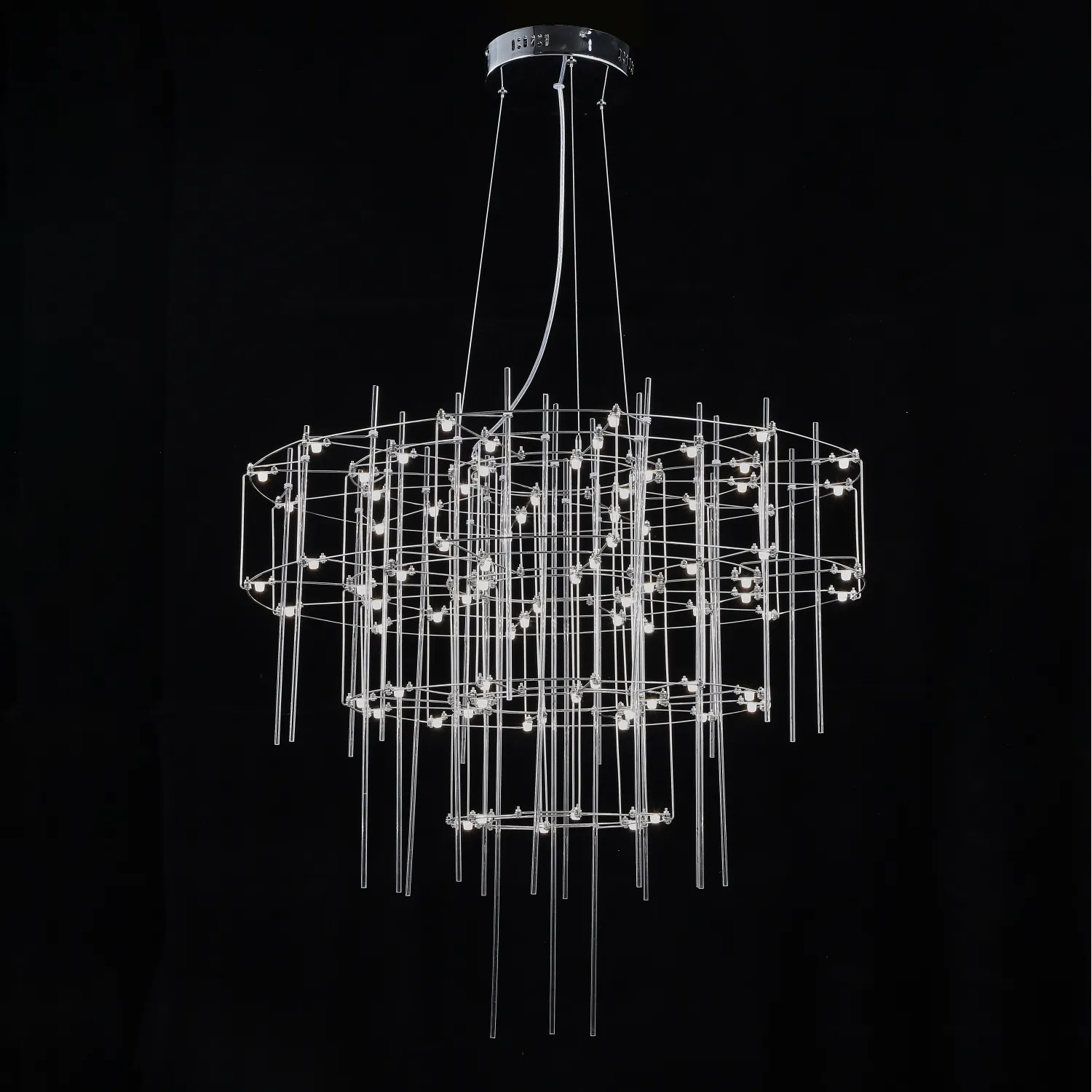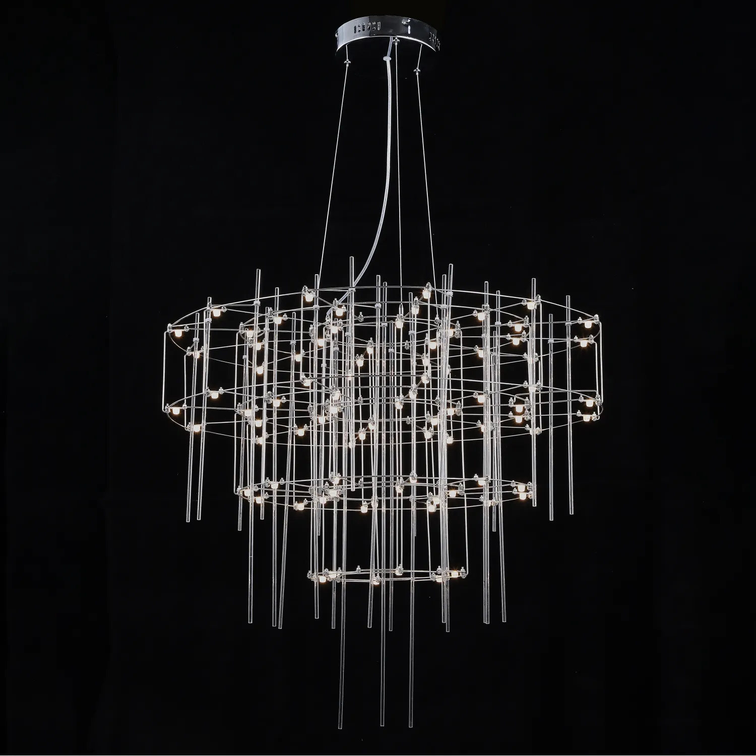 Люстра с точечными светодиодными источниками на серебристом каркасе с декором из стеклянных стержней CHILL A