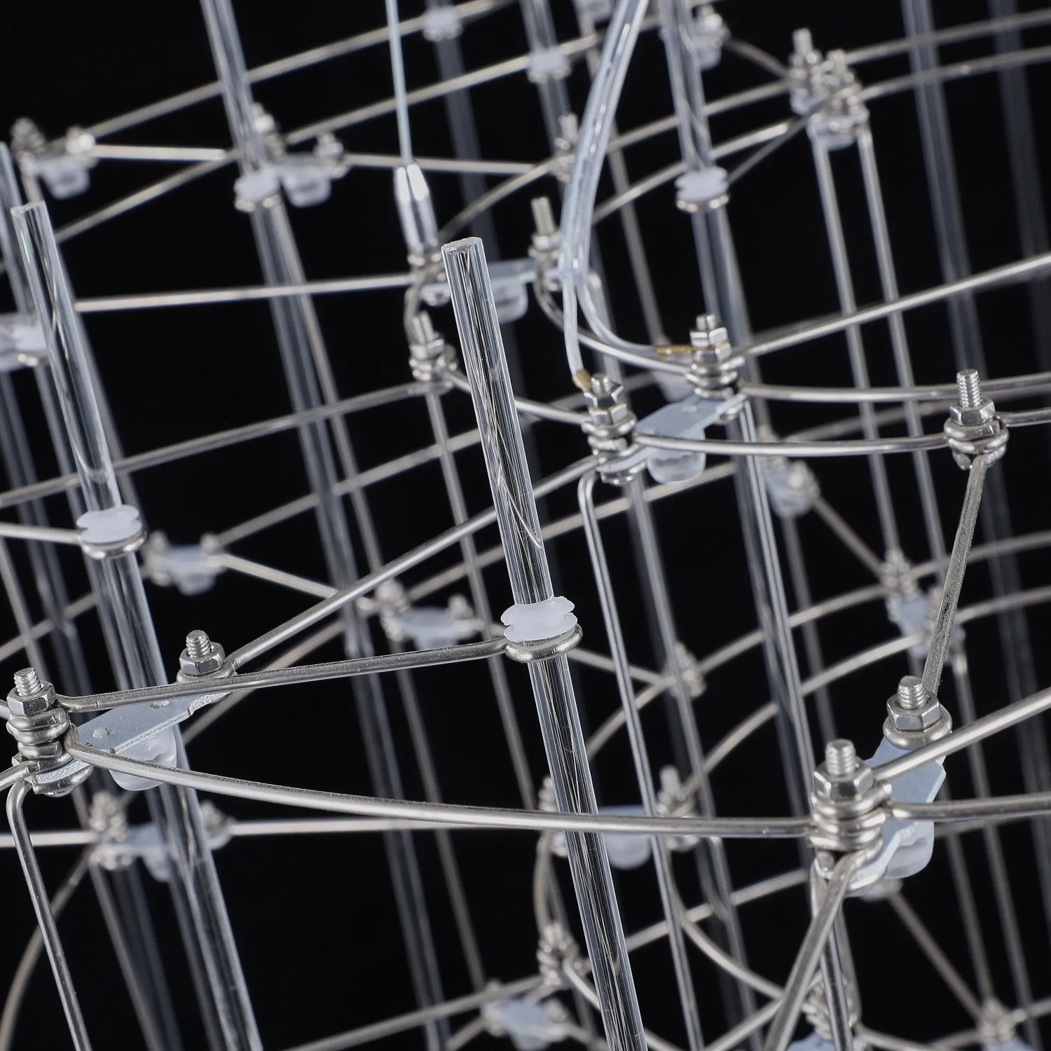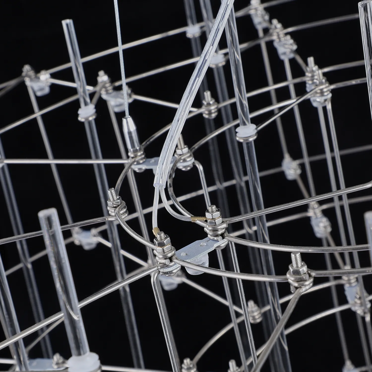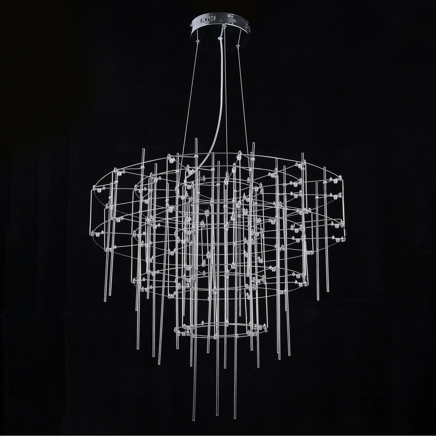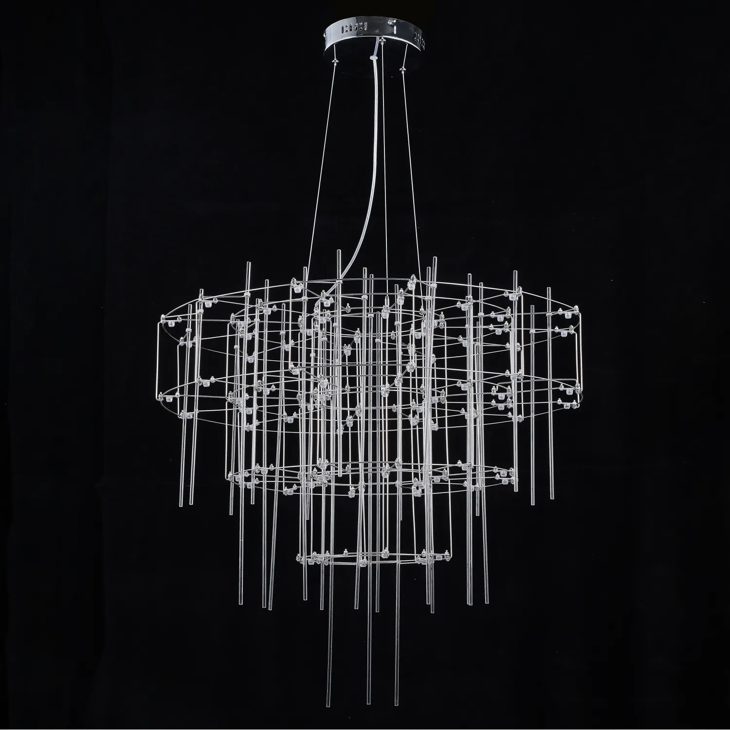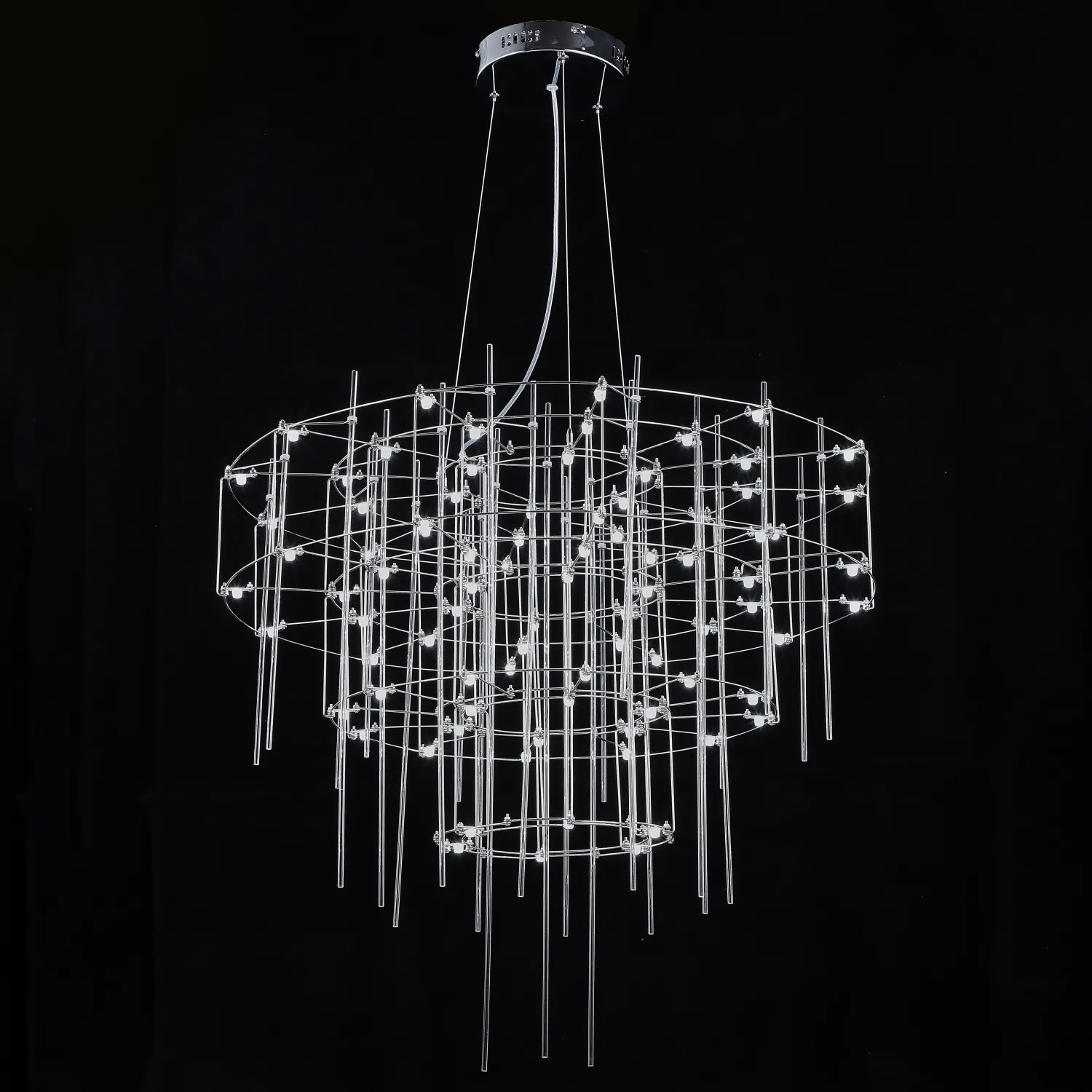 Люстра с точечными светодиодными источниками на серебристом каркасе с декором из стеклянных стержней CHILL A