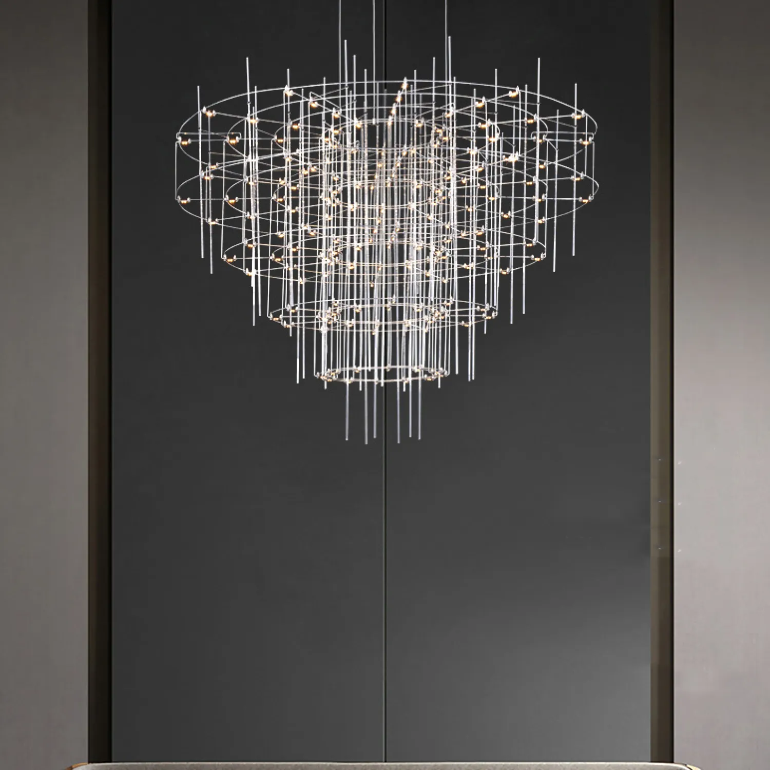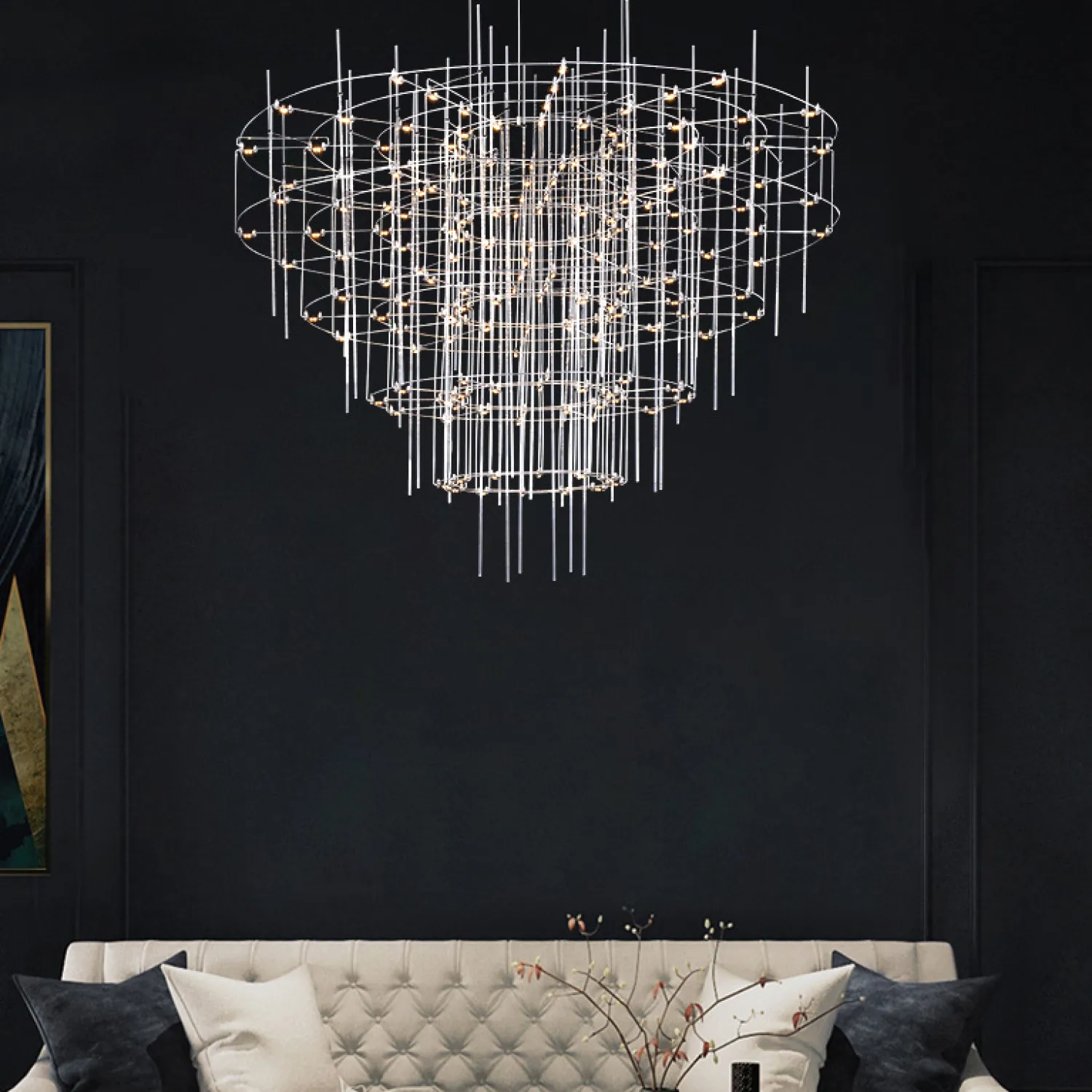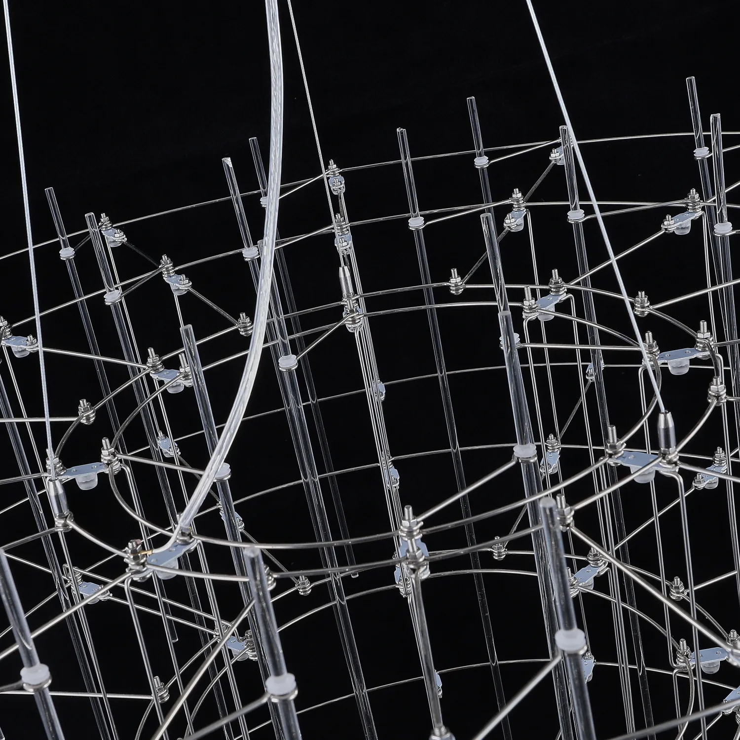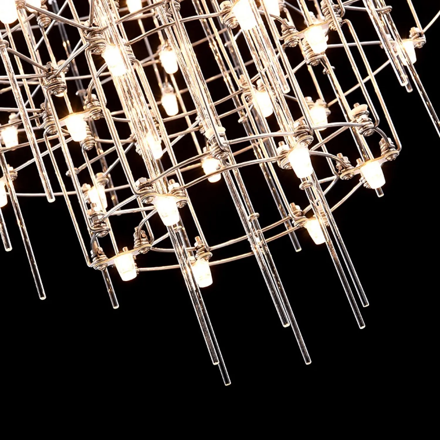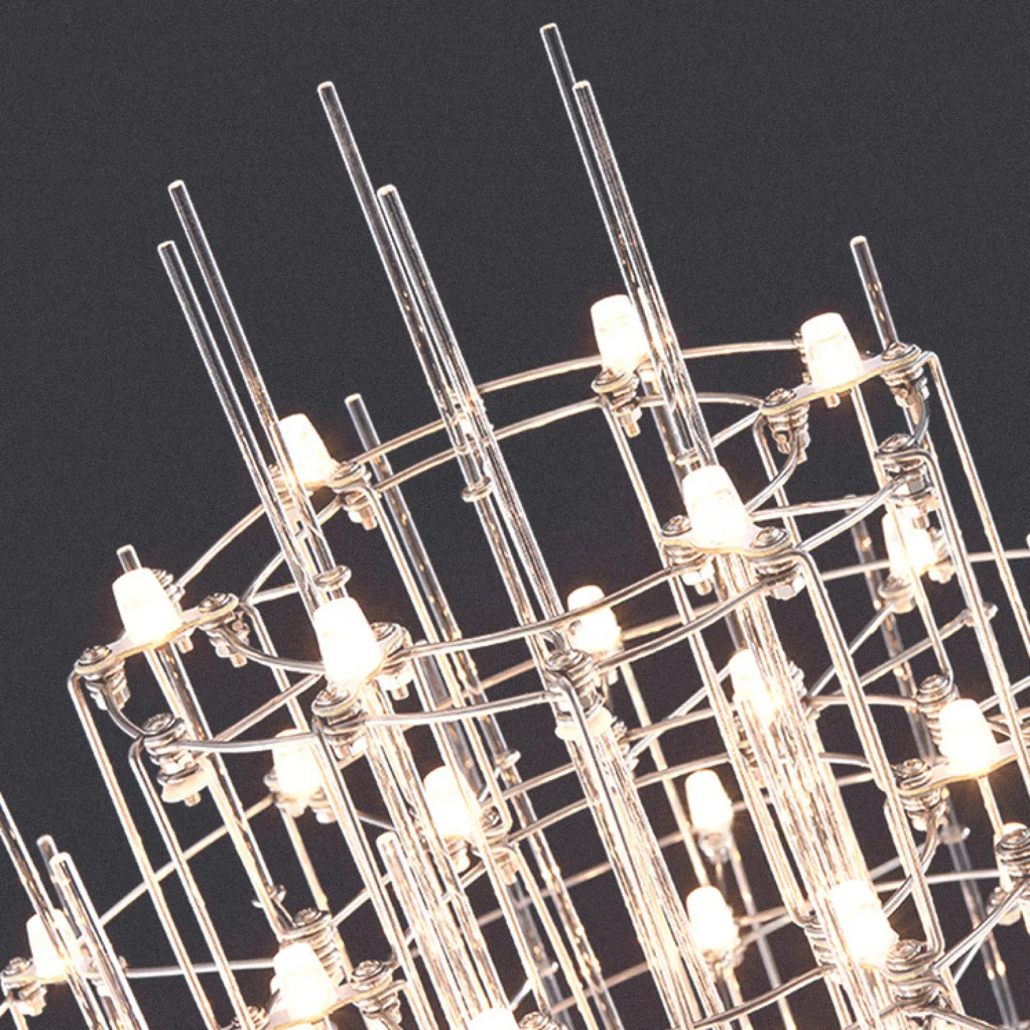 Люстра с точечными светодиодными источниками на серебристом каркасе с декором из стеклянных стержней CHILL A