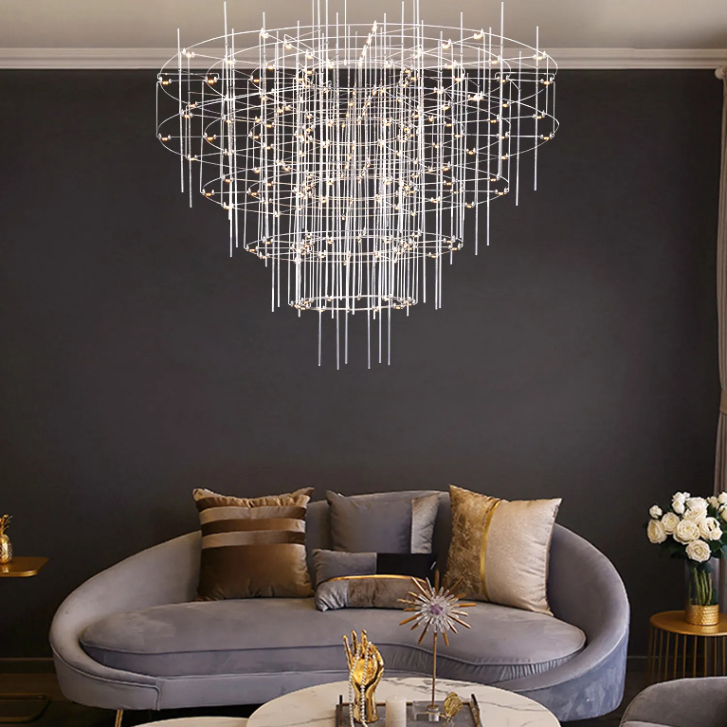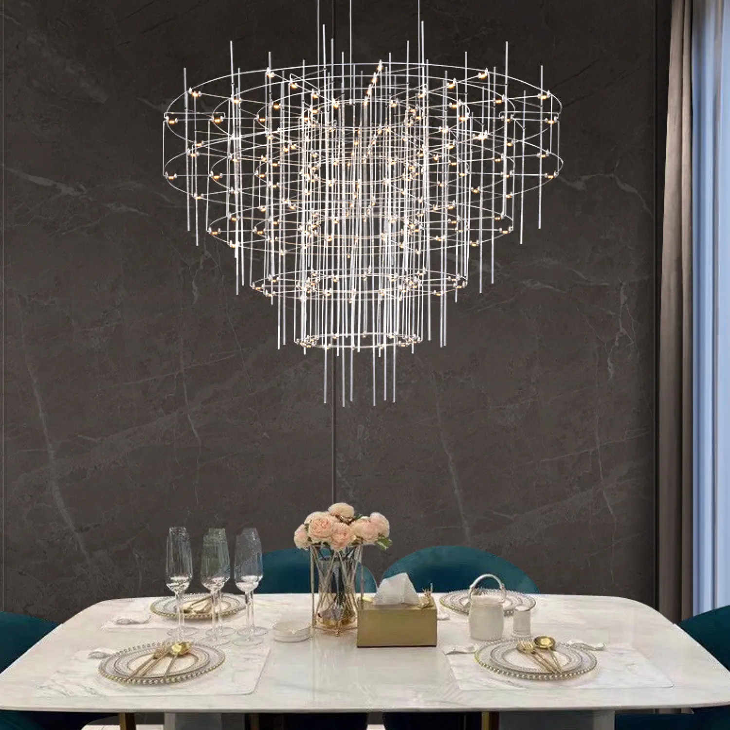Люстра CHILL A D120 оснащена 8 лампами, которые обеспечивают яркий и равномерный свет в вашем помещении. Благодаря своему большому размеру и потрясающему дизайну, она станет настоящим центром внимания в любой комнате.