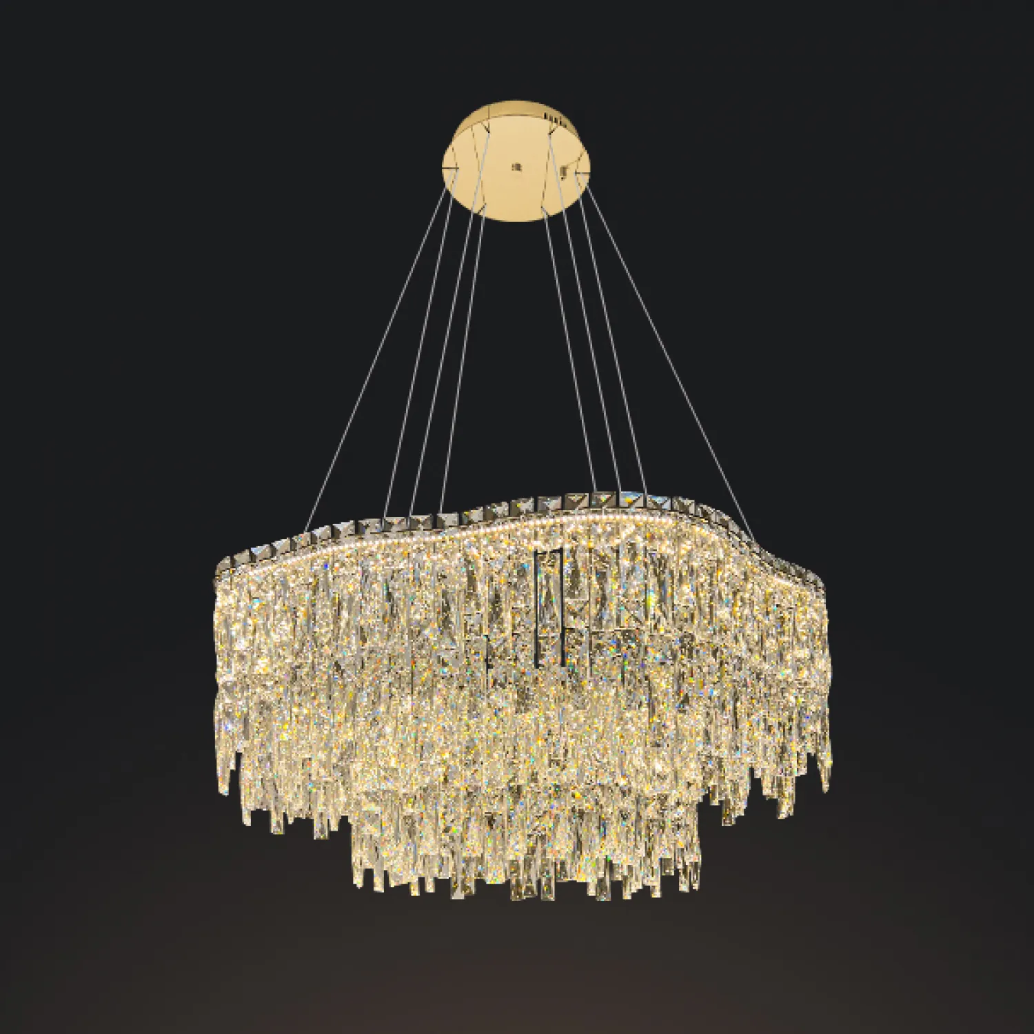 Кольцевая форма люстры создает эффектное освещение, которое привносит в помещение неповторимую атмосферу. Благодаря своему изысканному дизайну и золотистому оттенку, она станет настоящим украшением вашего интерьера, придавая ему шик и роскошь.