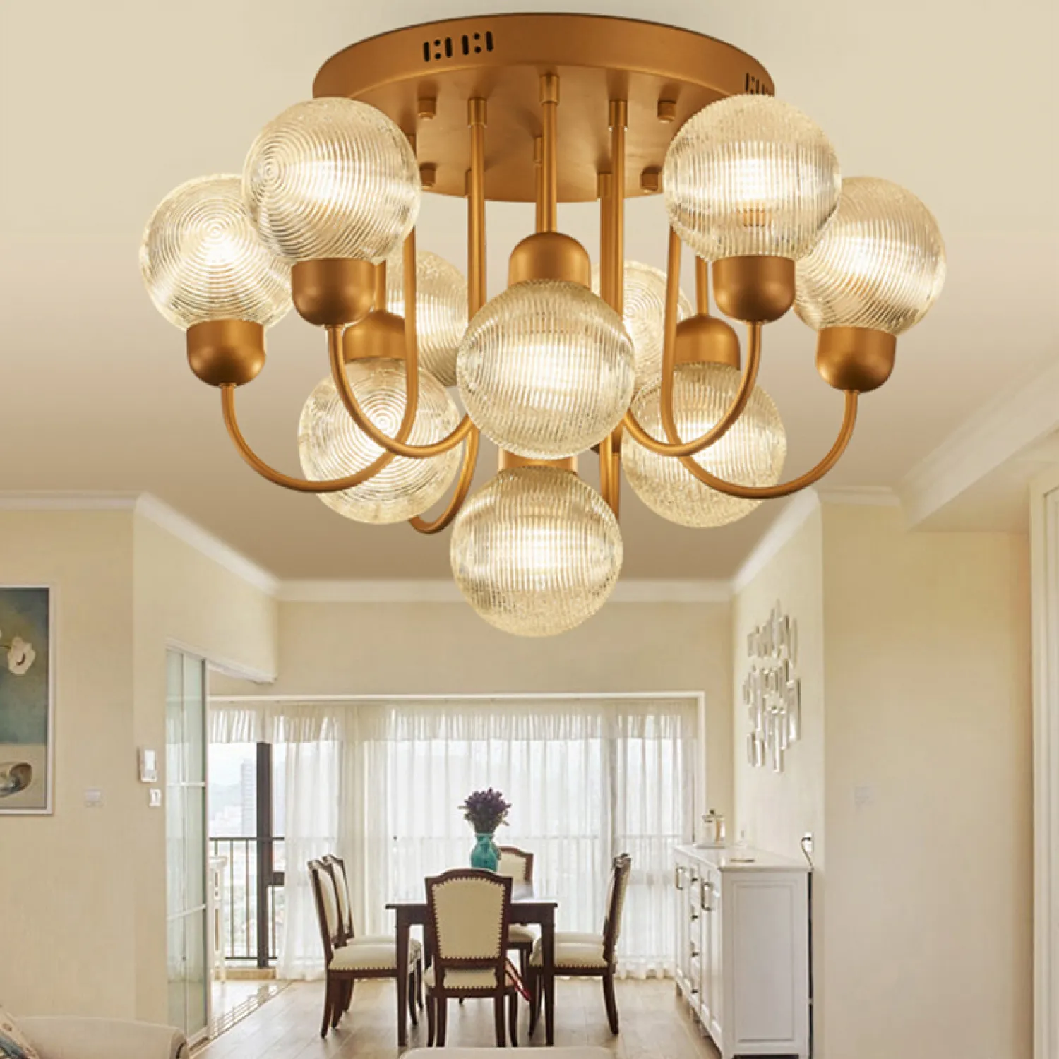 Благодаря высококачественным материалам и надежной конструкции, эта люстра прослужит вам долгие годы, не теряя своей эстетической привлекательности. Она легко монтируется на потолок и проста в уходе.