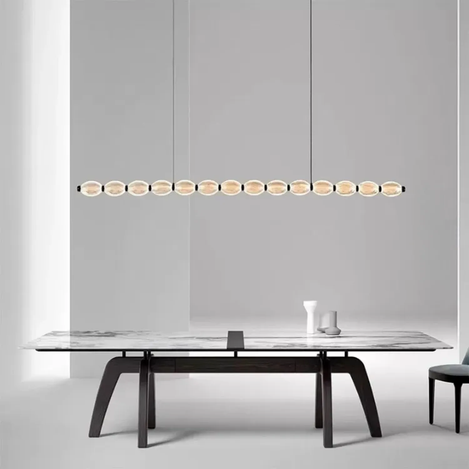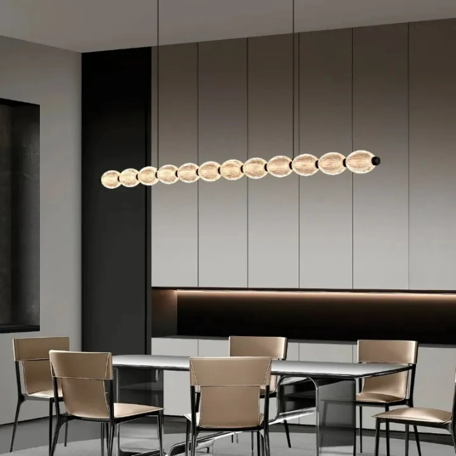 Модель CARA ELLIPSE LONG изготовлена из металла и акрила в глубоком черном цвете. Она мягко рассеивает свет, создавая уютную атмосферу в современном интерьере. Удлиненная эллиптическая форма и рельефные плафоны придают светильнику элегантность и динамику, подчеркивая стиль минимализм, лофт или скандинавский как в кухне, так и в гостиной. Благодаря LED-матрице, которая излучает трехцветный свет, и регулируемой длине подвеса, этот реечный светильник легко адаптируется под различные сценарии освещения и интерьерные решения. Его лаконичный дизайн органично вписывается в просторные помещения, добавляя функциональность и эстетику без перегрузки пространства.