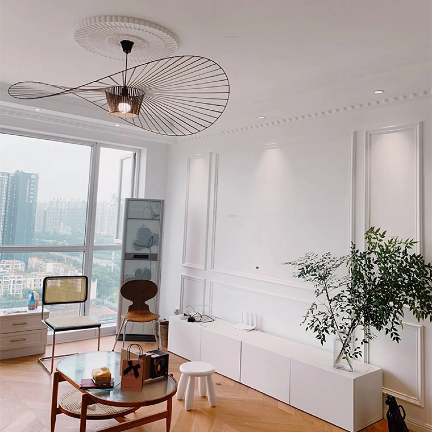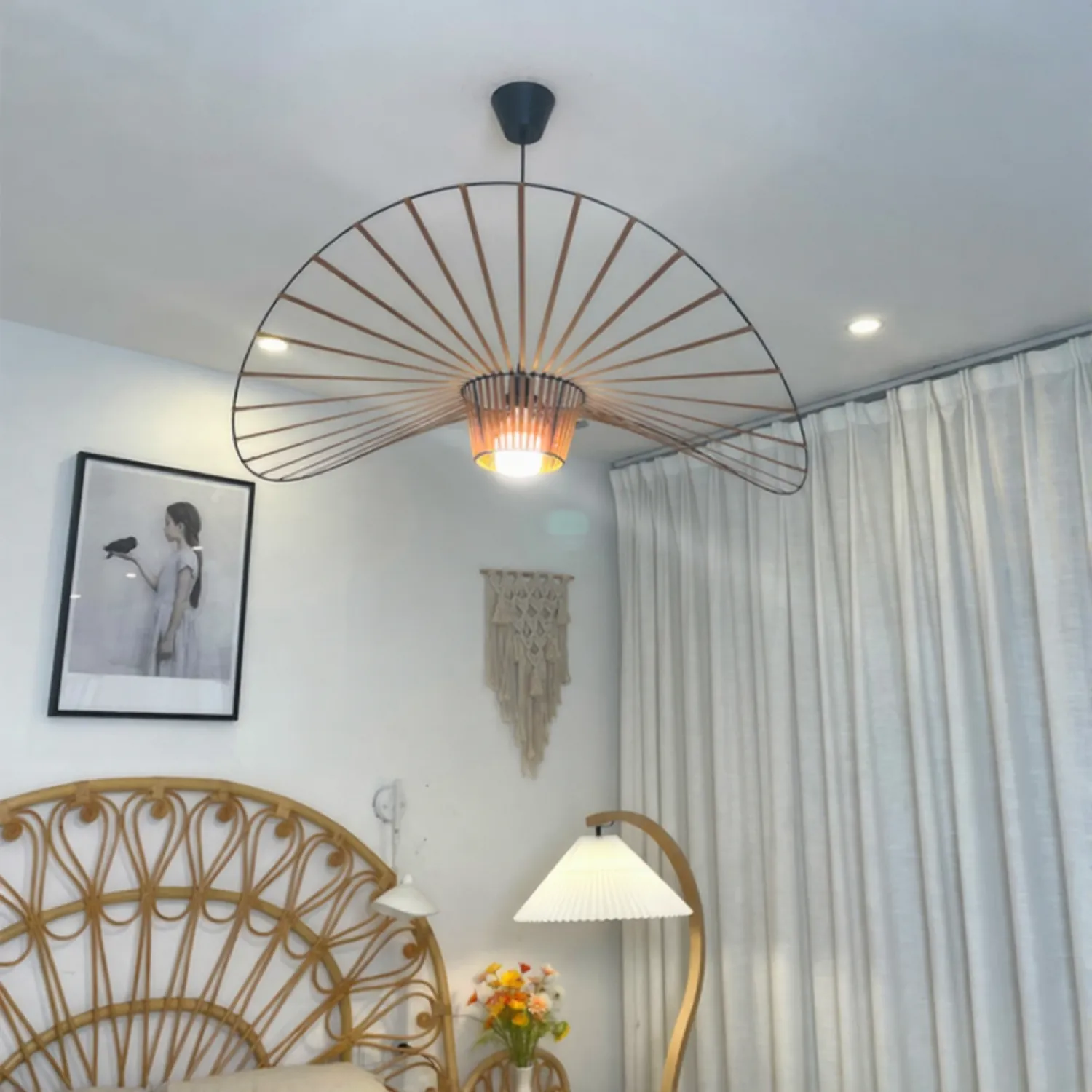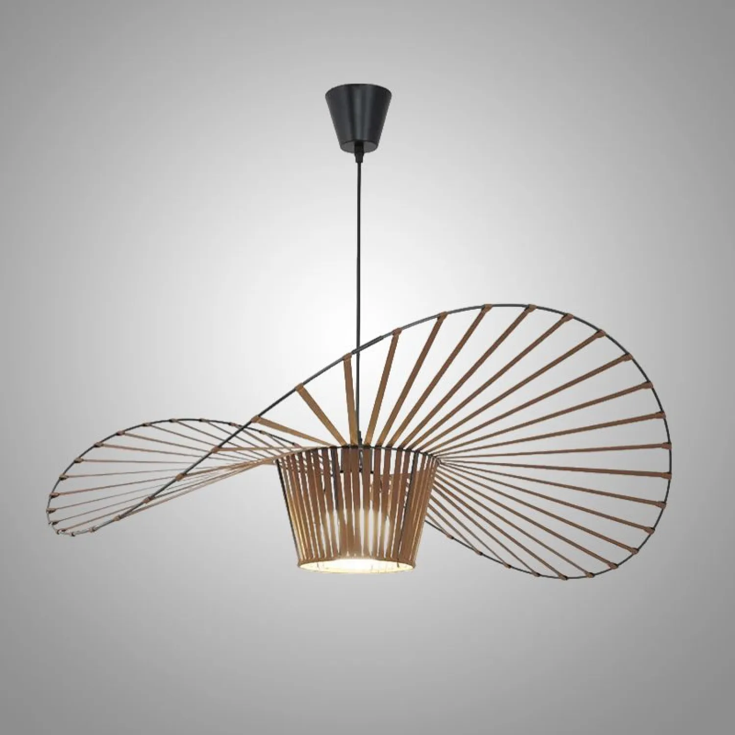 Подвесной светильник HAT WEB в форме плетеной шляпы из тесьмы создает атмосферу легкости и уюта, гармонично сочетая стиль лофт и скандинавский минимализм. Черный металлический каркас и текстильное покрытие в виде шляпы придают пространству современный и функциональный вид, идеально подходя для гостиной или кухни. Этот светильник станет акцентом в интерьере, подчеркивая непринужденную элегантность и обеспечивая мягкое, рассеянное освещение. Он легко впишется в различные стили и добавит индивидуальности вашему дому. Обновите интерьер с помощью этого уникального дизайнерского решения.