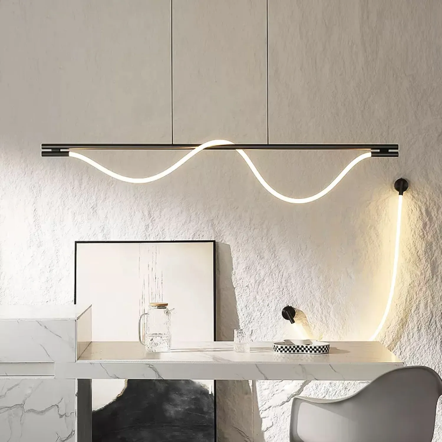 Светильник Lite Curve Long — это длинная реечная модель в стиле лофт. Она идеально подходит для интерьеров в стиле модерн и минимализм. Светильник выполнен из черного металла и оснащен мягким светодиодным освещением, обеспечивающим равномерное и рассеянное свечение. Он подчеркивает современные элементы и элегантную форму. Удлиненная конструкция и гибкое плетеное волокно визуально расширяют пространство, создавая уютную и современную атмосферу.