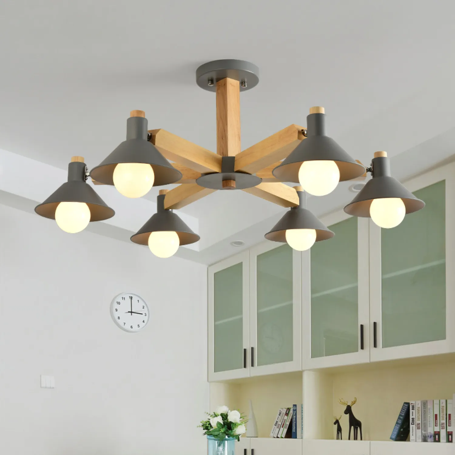 Светильник оснащен несколькими лампочками, что обеспечивает яркое и равномерное освещение. Благодаря своей конструкции, люстра создает уютную и приятную атмосферу в комнате.