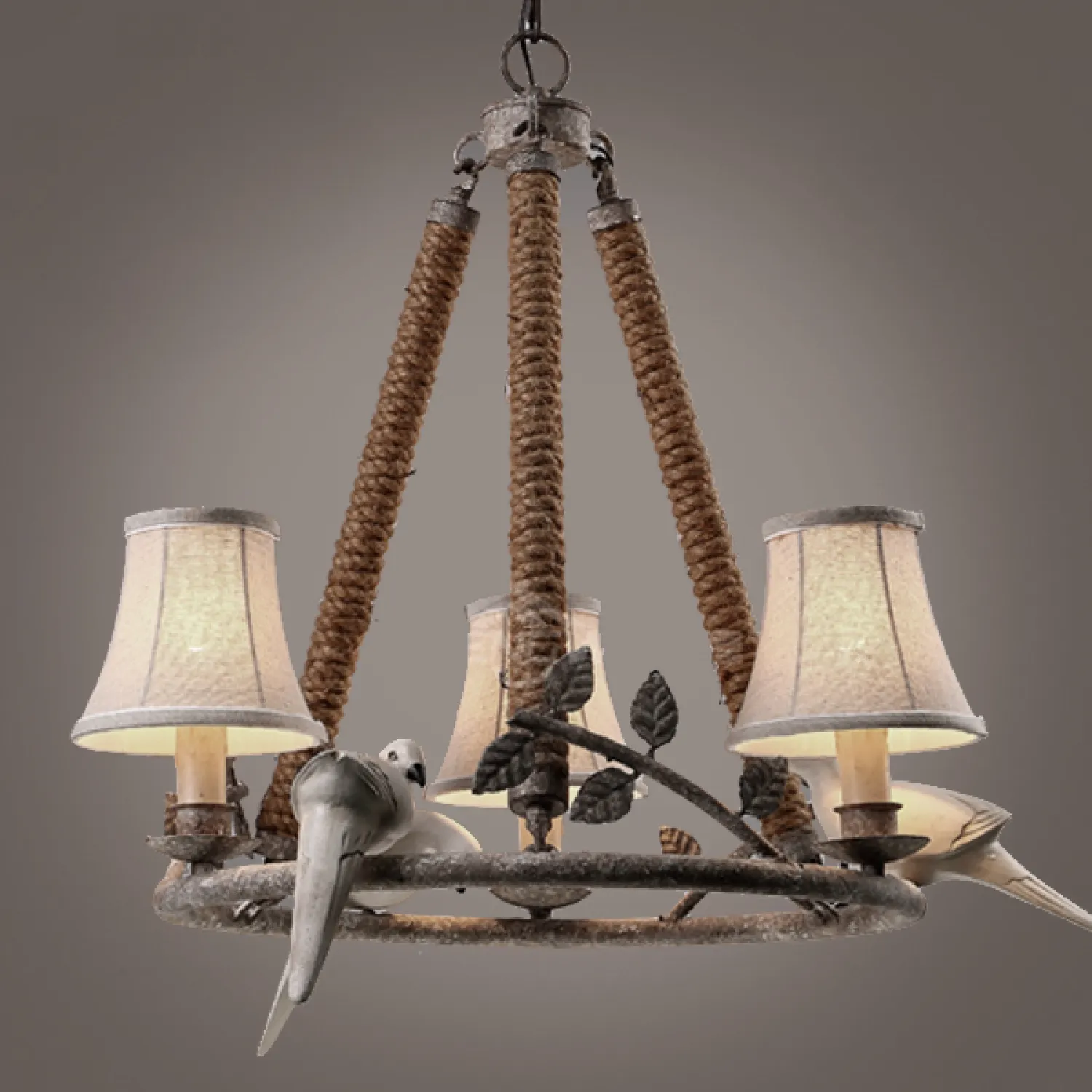 Эта люстра выполнена из высококачественного материала и имеет покрытие патиной, которое придает ей особый шарм и стиль. Три светильника с птицами изящно размещены на ветвях, создавая эффект лесной поляны прямо в вашей гостиной.