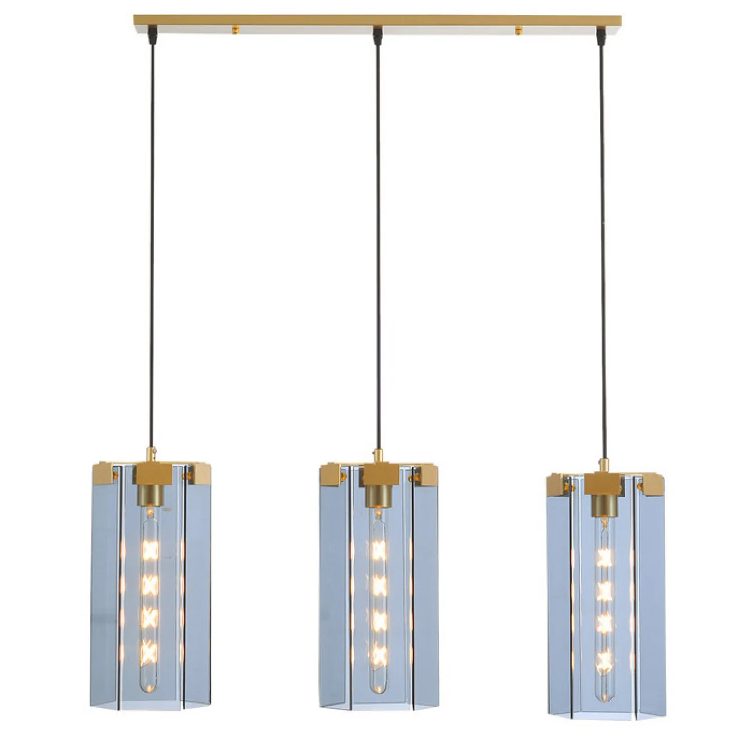 Ее прозрачные стеклянные плафоны создают уютное и яркое освещение, которое преобразит любое помещение. Три подвесных плафона в форме прямоугольника придают этой люстре особую изящность и оригинальность.