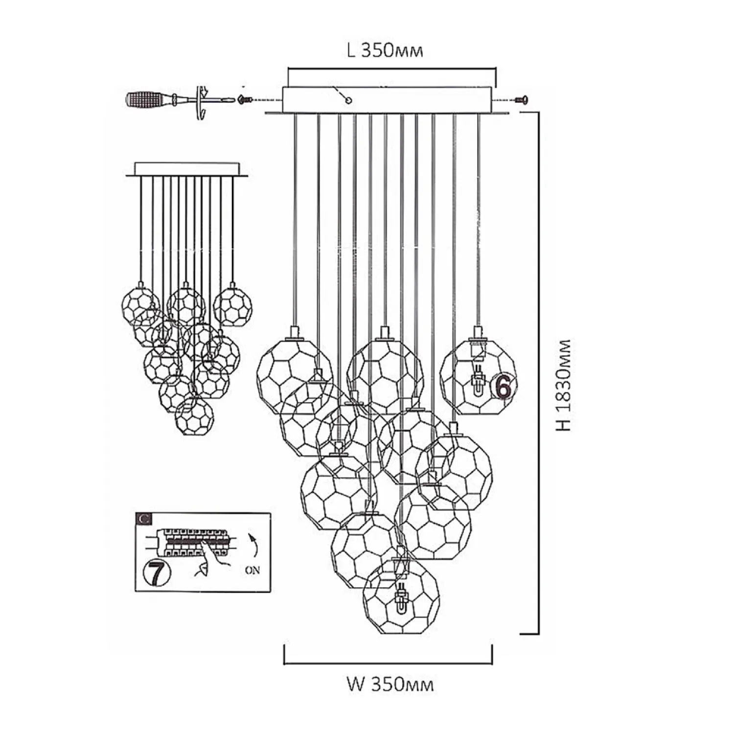 Подвесная люстра Boule De Cristal Round Cluster Chandelier 10