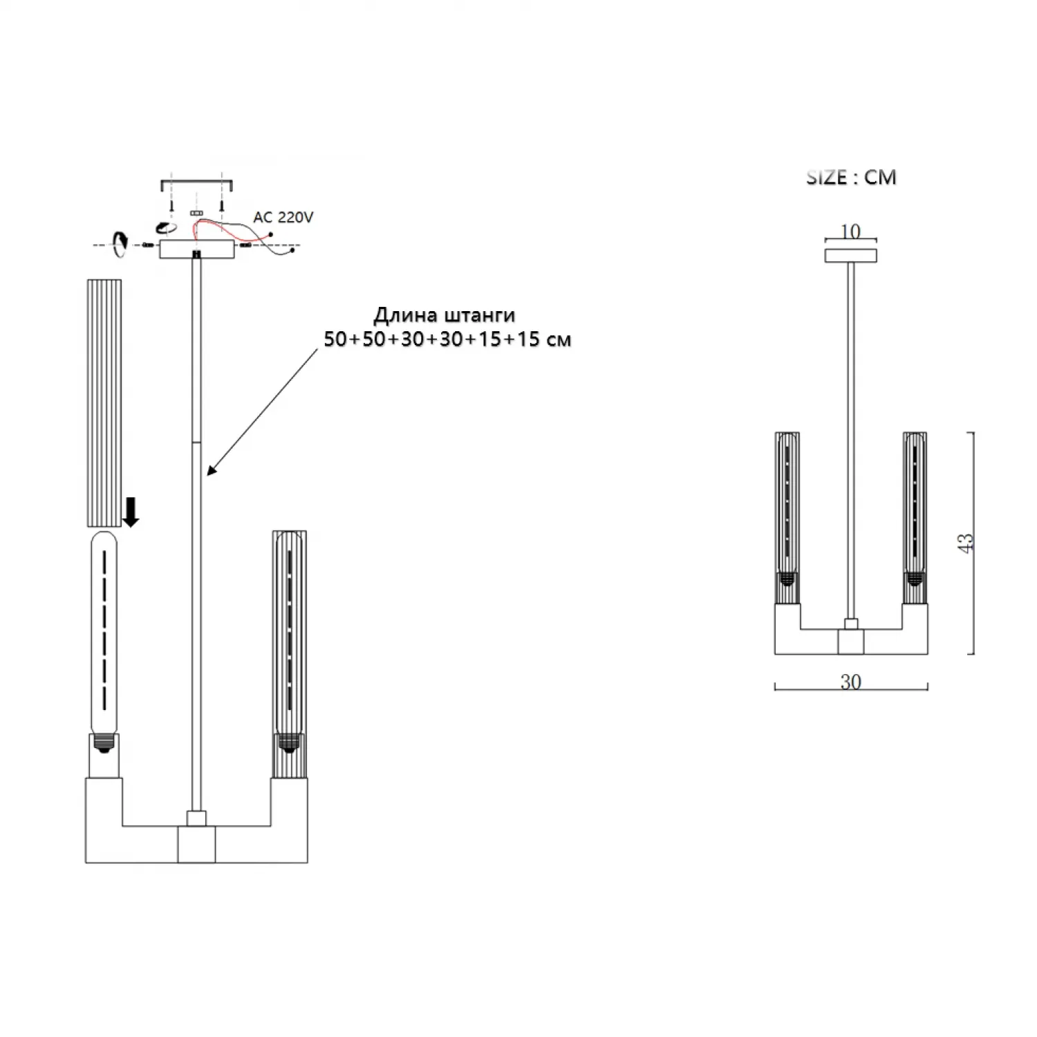 Люстра на штанге CANELLE Pendant lamp 4 Modern Brass