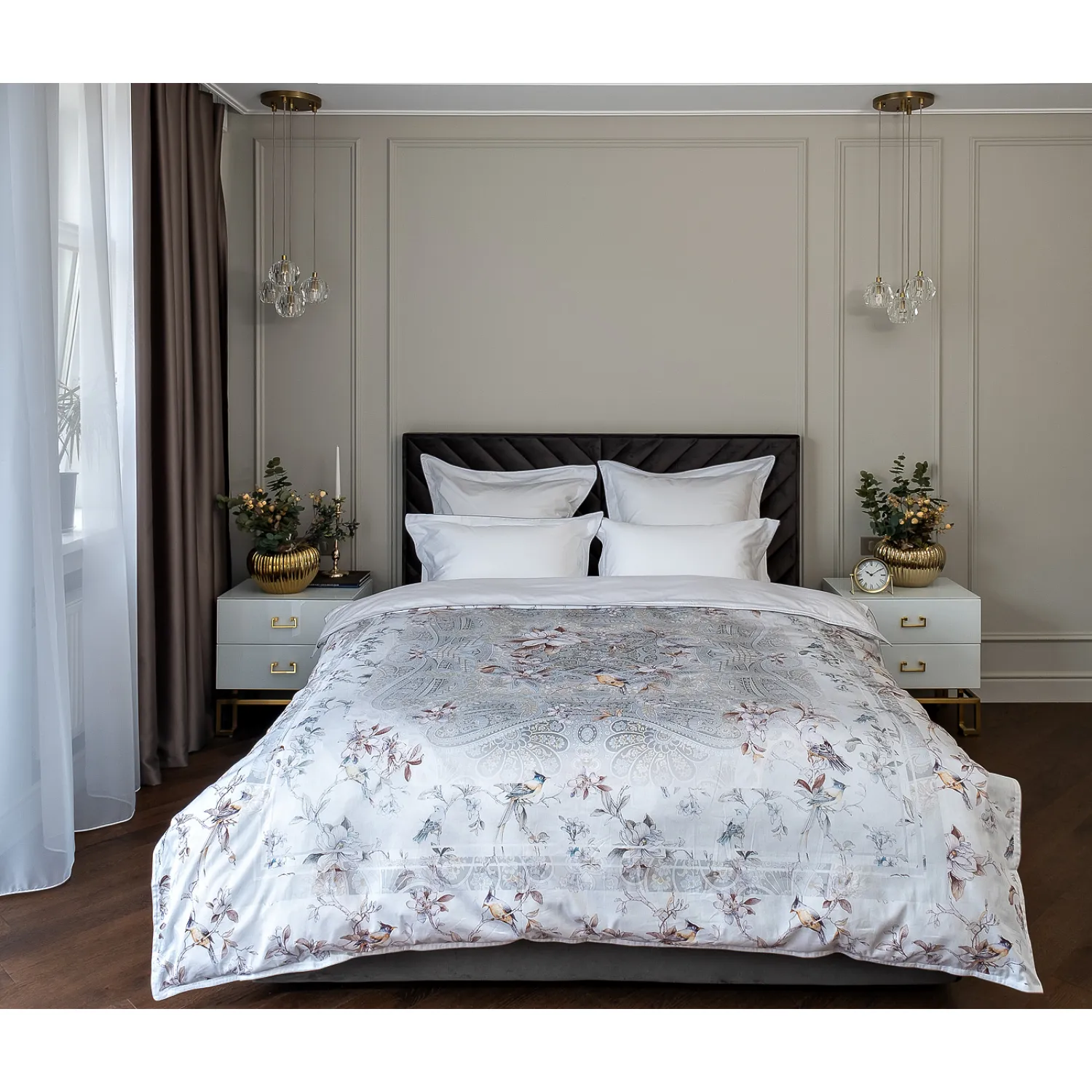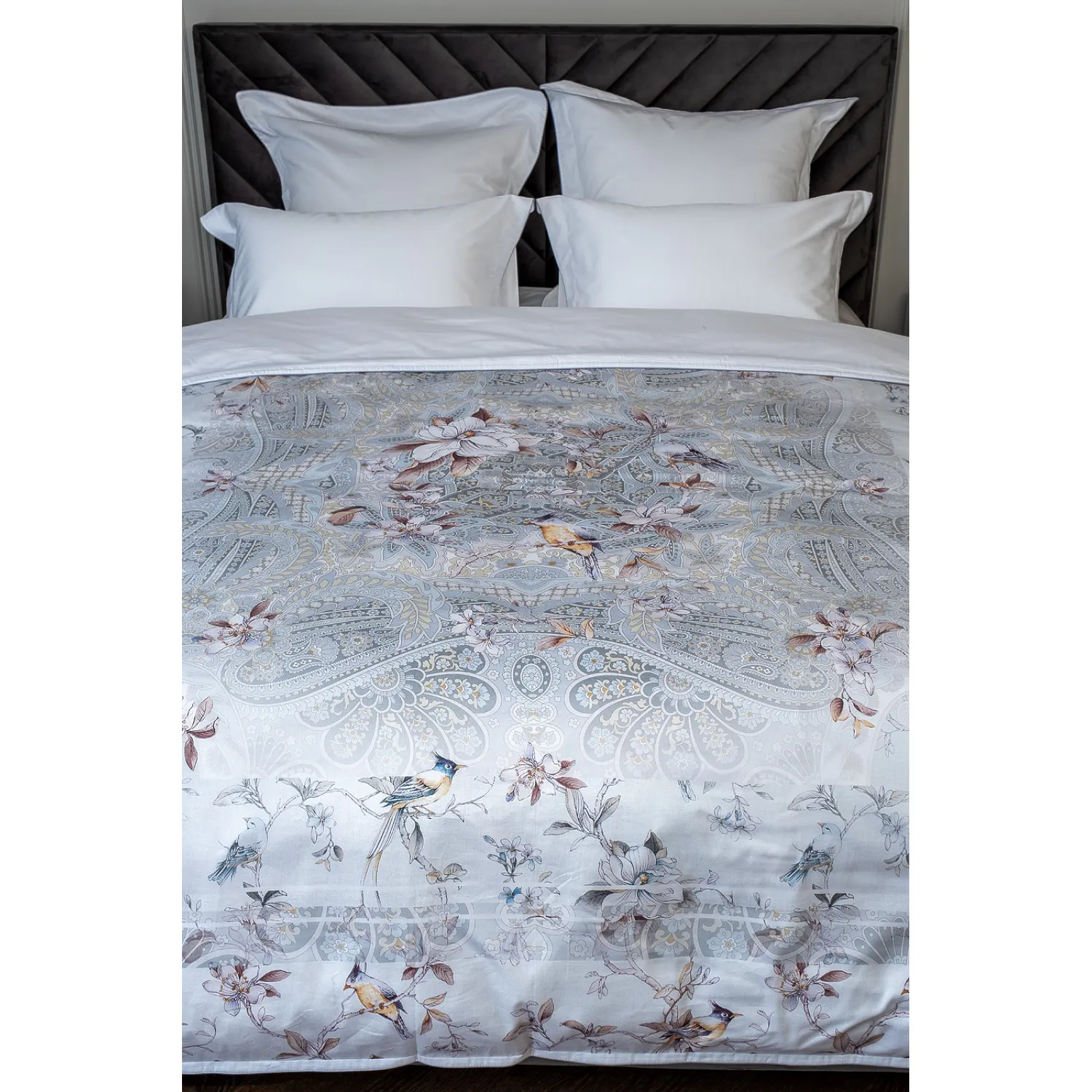 Насыщенные и яркие цвета принта 'Грёзы' привнесут в вашу спальню атмосферу мечты и романтики. Каждая нить ткани тщательно подобрана и обработана, чтобы обеспечить мягкость и гладкость на ощупь.