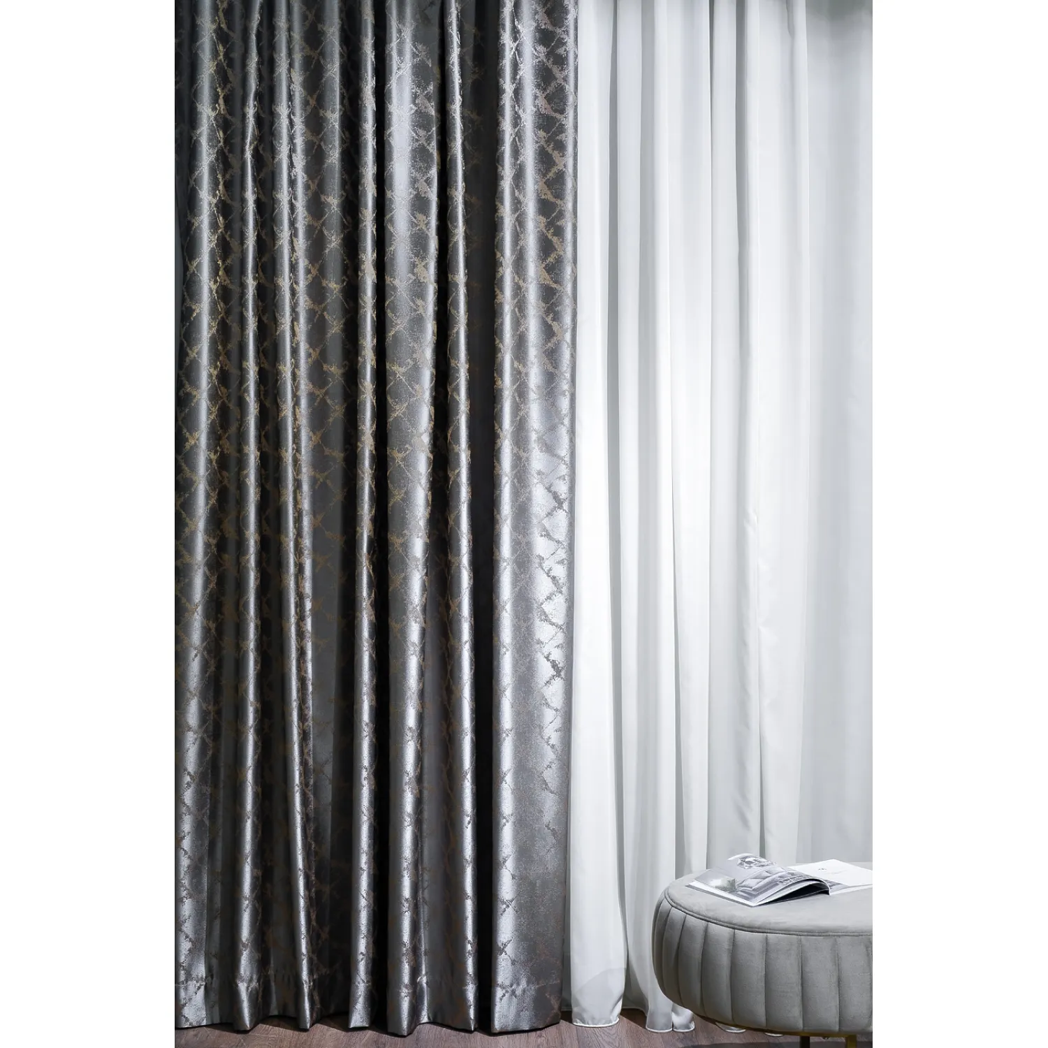 Серый цвет портьеры TRENTO идеально сочетается с любым интерьером. Он придает помещению шик и элегантность, а также создает атмосферу спокойствия и уюта.