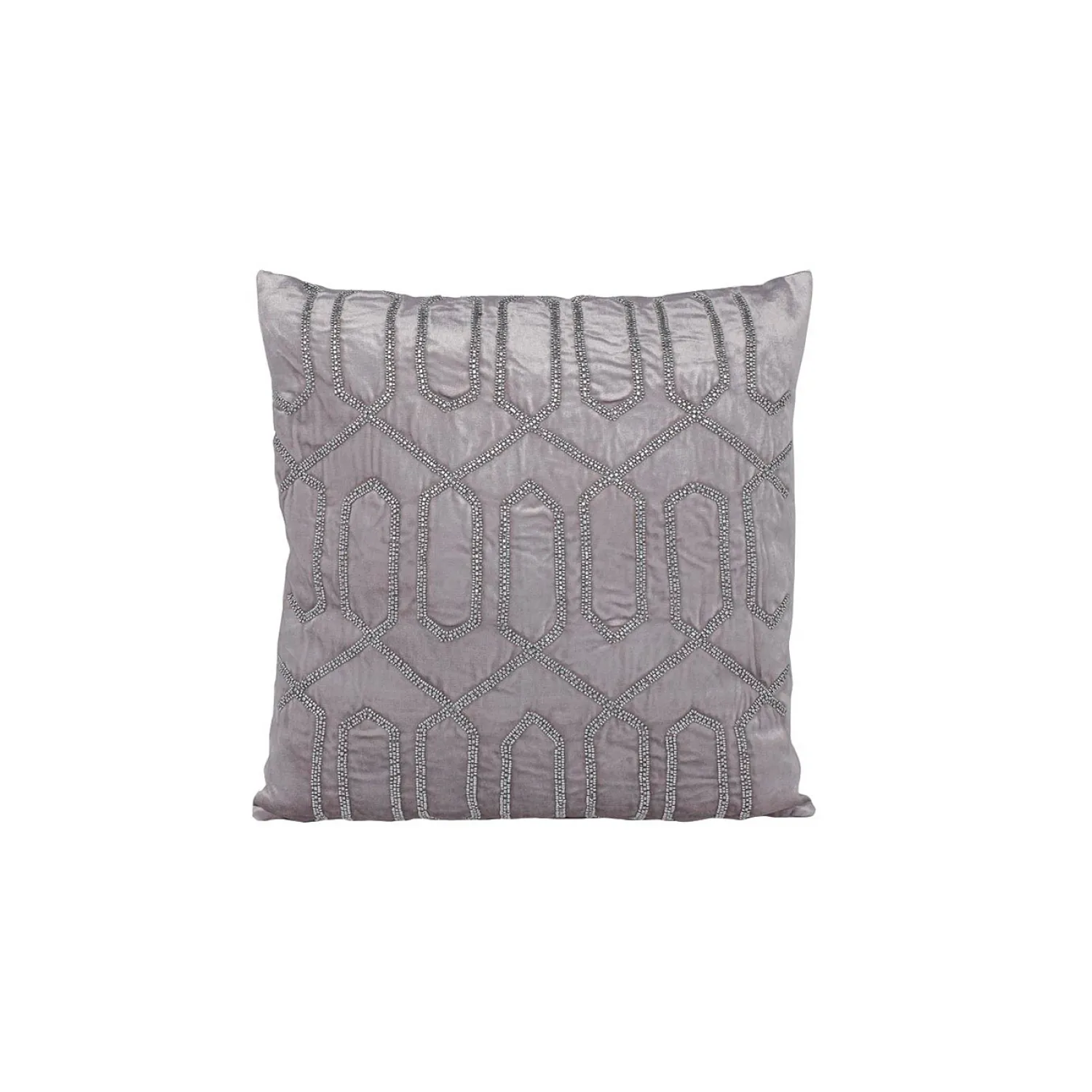 Подушка выполнена в стильном серебряном цвете и имеет размер 45*45 см. Ее дизайн вдохновлен геометрическими фигурами, которые придают ей особый шарм и элегантность. Бисерное украшение добавляет изысканности и привлекает взгляды.