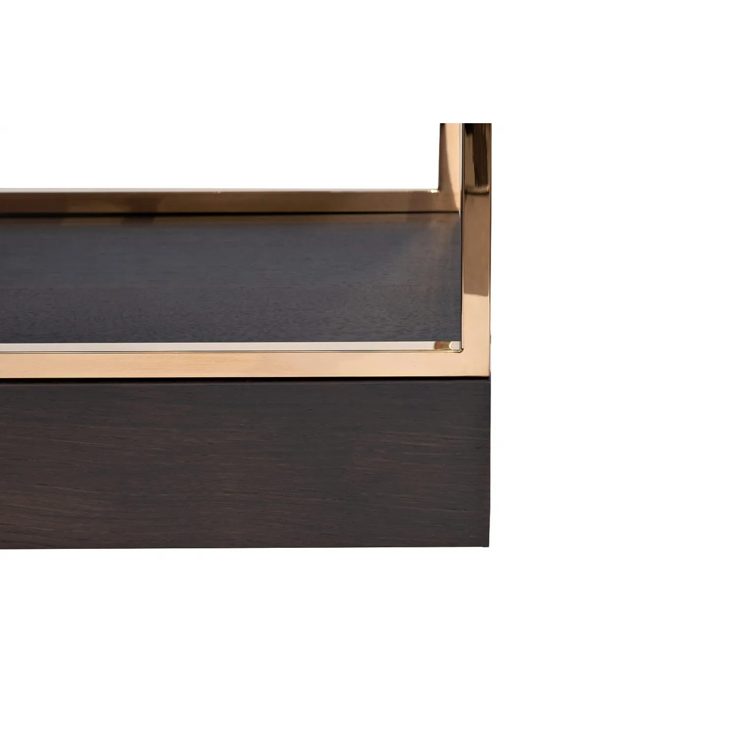 Изготовленный из прочного и качественного материала, стеллаж-полусфера обладает надежной конструкцией, которая гарантирует его долговечность и стабильность. Розовое золото и темный шпон создают элегантное сочетание, которое привлекает внимание и придает уникальность этому предмету мебели.