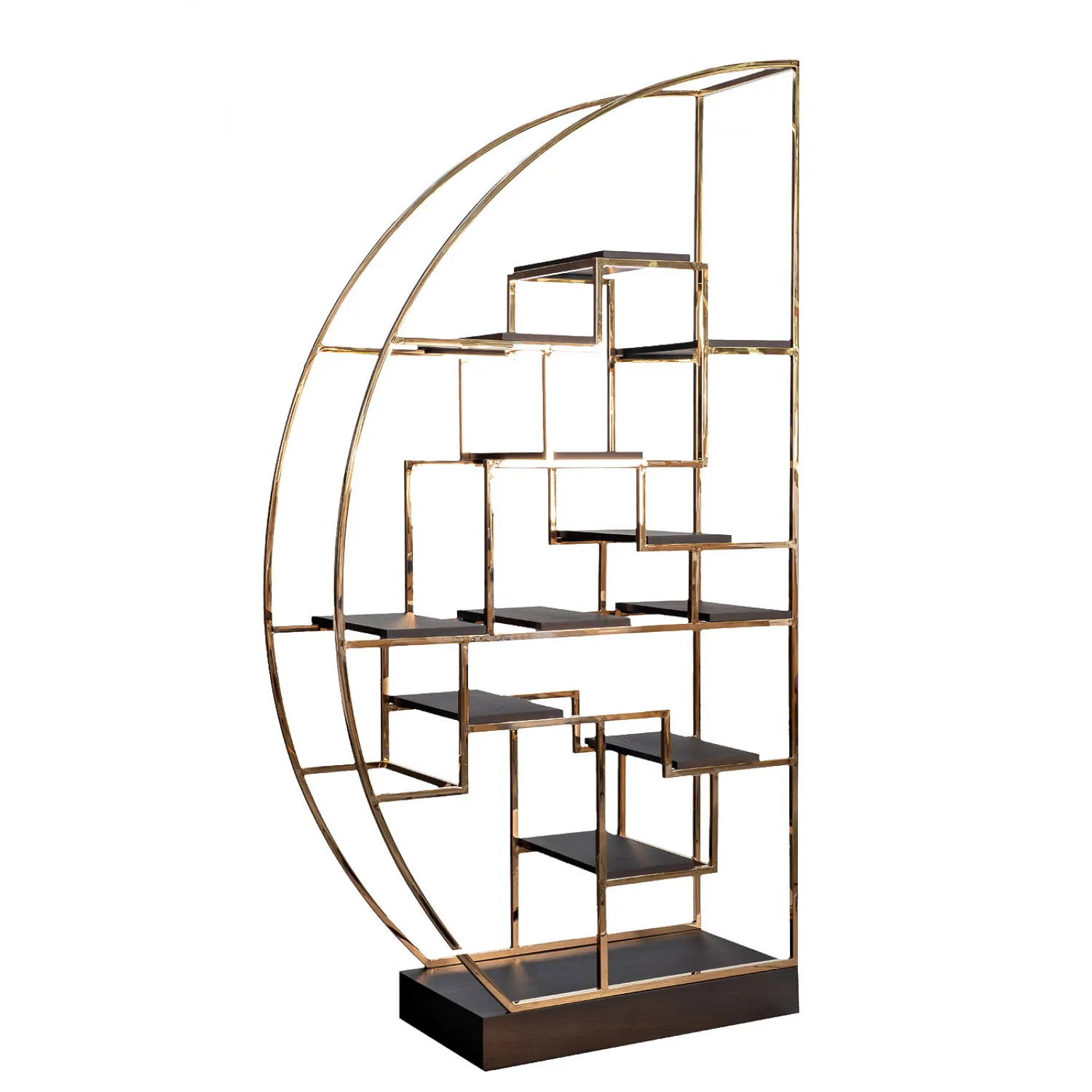 Этот стеллаж-полусфера розовое золото/темный шпон - это не только функциональный предмет мебели, но и настоящий объект искусства. Он станет великолепным дополнением к вашему интерьеру и привнесет в него нотку изысканности и стиля.