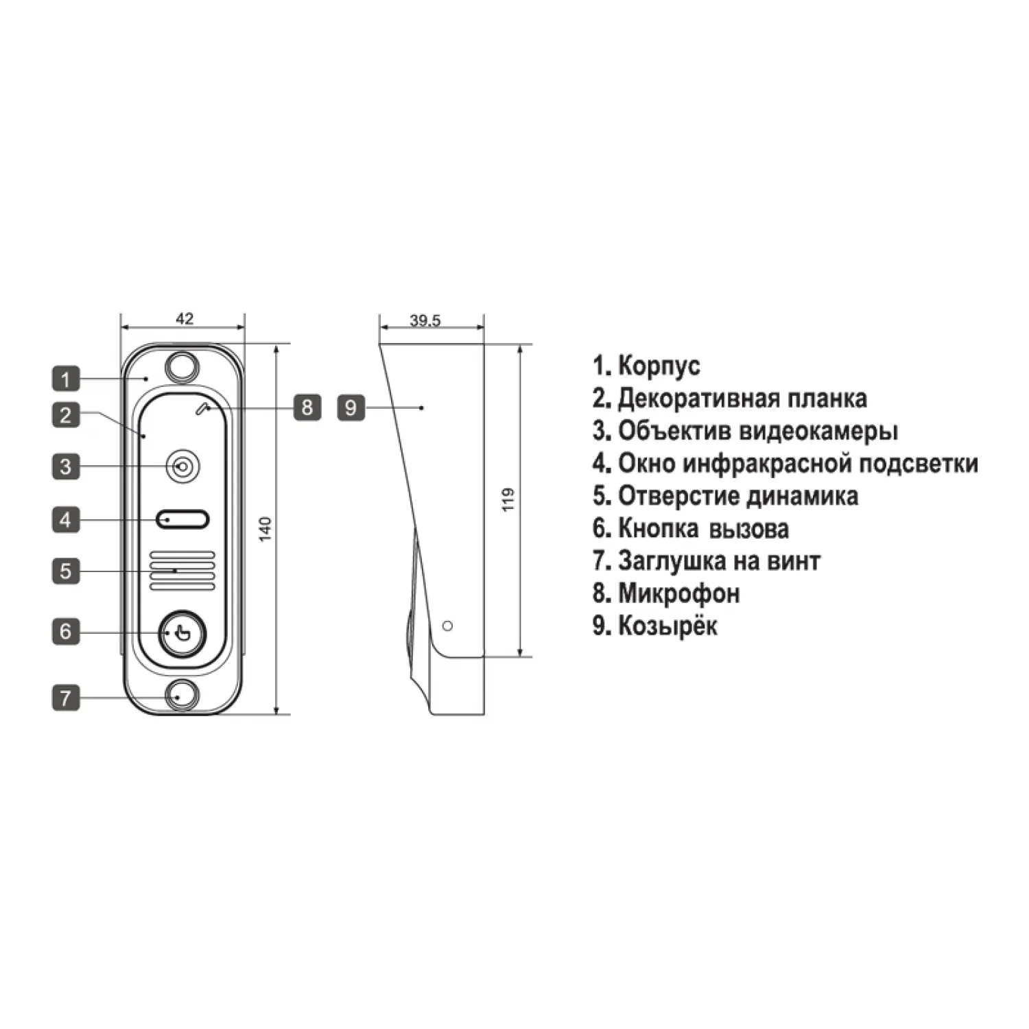 Эта вызывная панель сочетает в себе высокое качество и элегантный дизайн. Она выполнена в серебристом цвете, который прекрасно подходит к любому интерьеру. Благодаря своей компактности и минималистичному дизайну, она не займет много места и станет стильным дополнением к вашему входу.