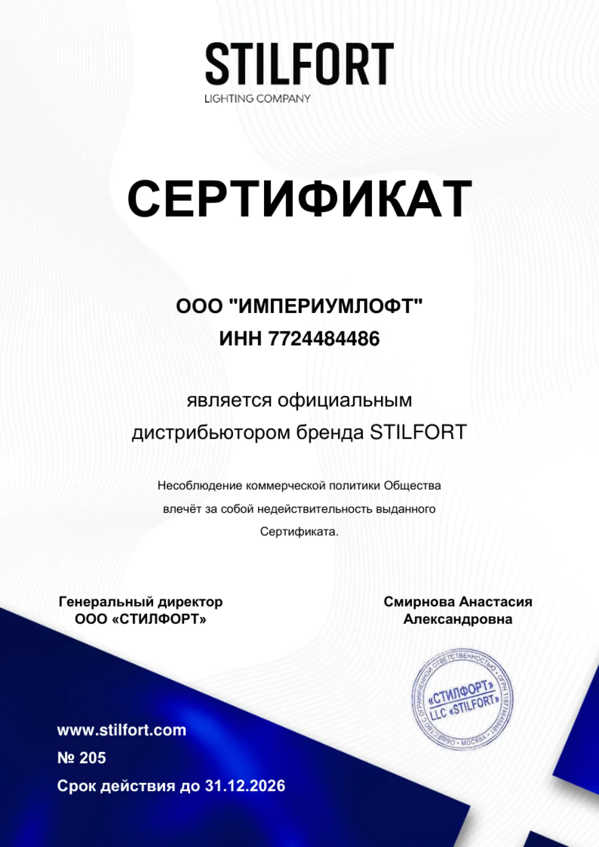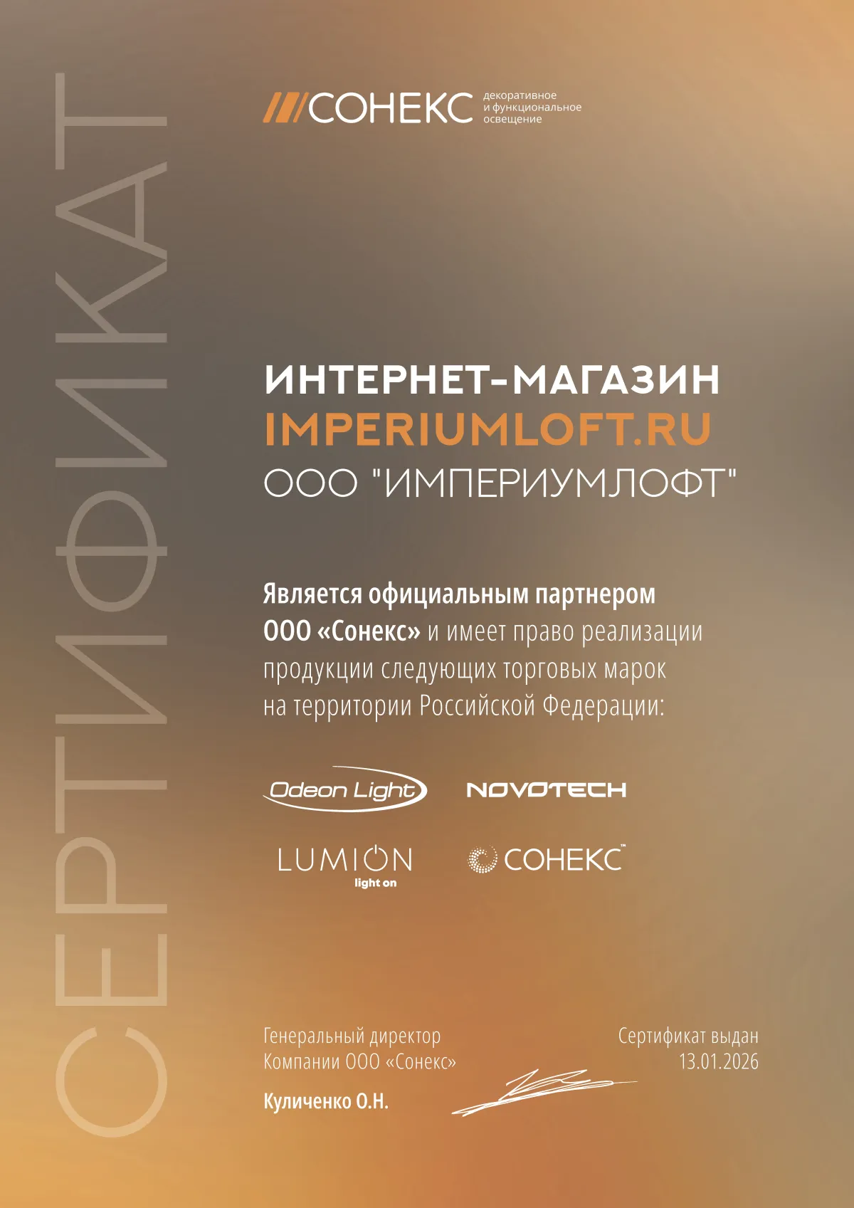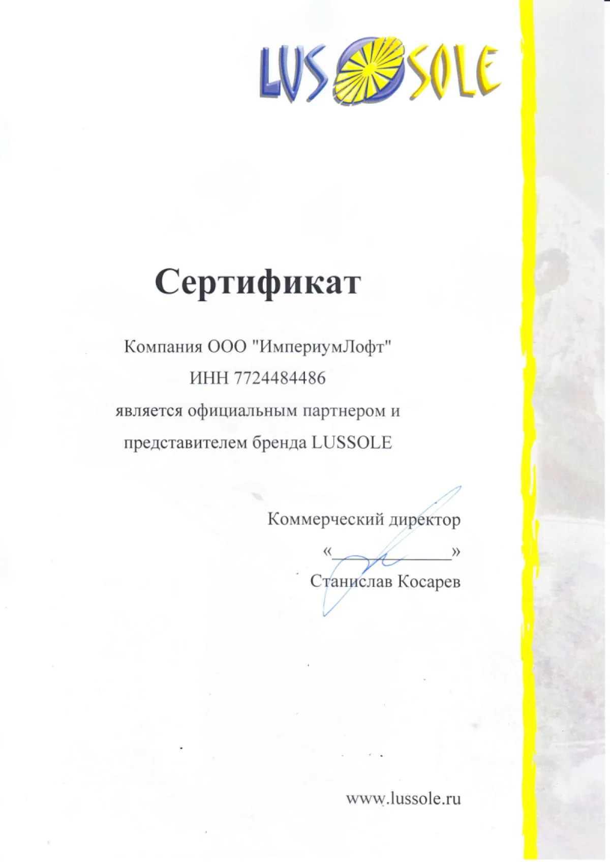 Галерея сертификатов компании Империумлофт
