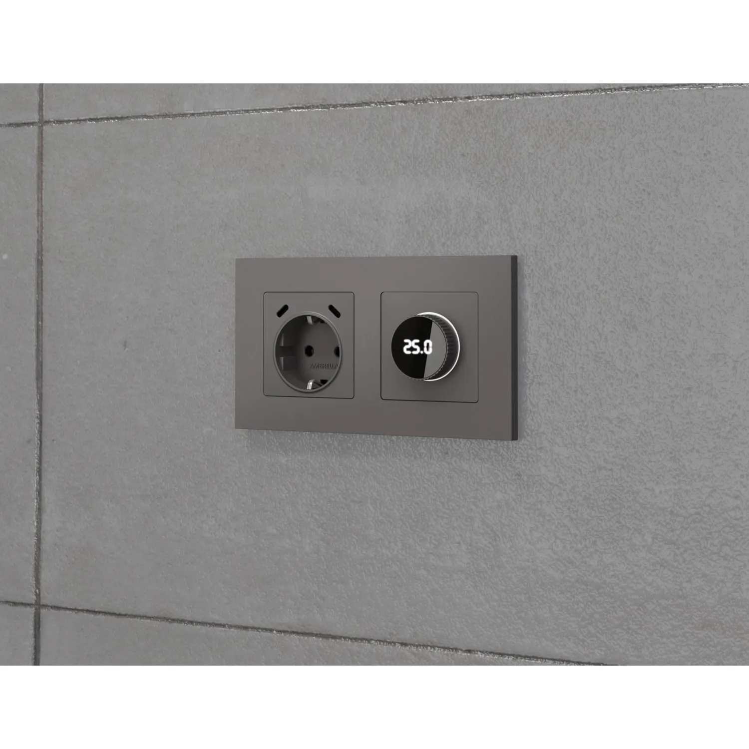Магазин ImperiumLOFT представляет Вашему вниманию Лицевая панель (Антрацит серый) для электрической розетки с заземлением со шторками 2USB C+C Ambrella Volt ALFA AP6605 от производителя - Ambrella Volt.