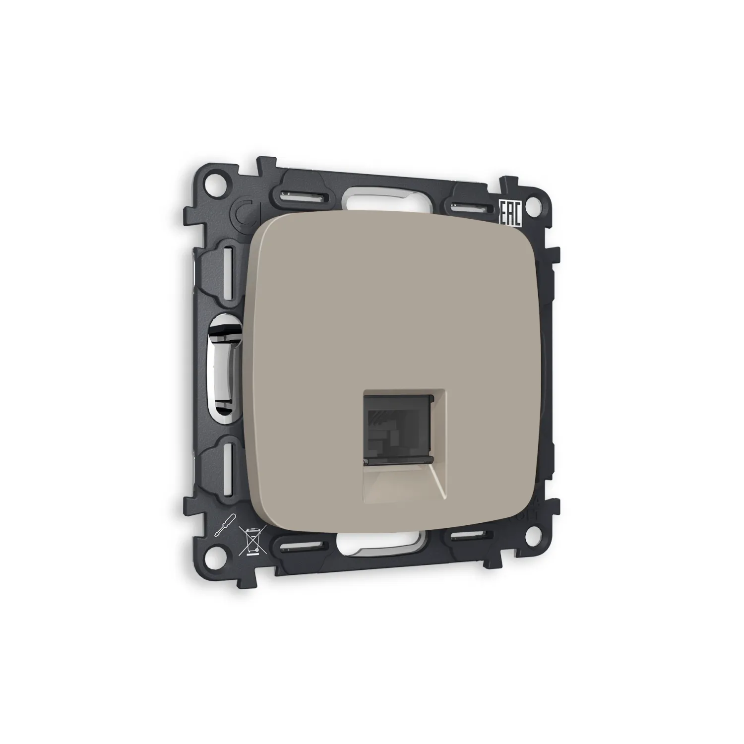 Магазин ImperiumLOFT представляет Вашему вниманию Комплект механизма компьютерной розетки OMEGA MO372010 Серо-бежевый матовый RJ-45(8P8C) CAT6 с защитной шторкой QUANT от производителя - Voltum.