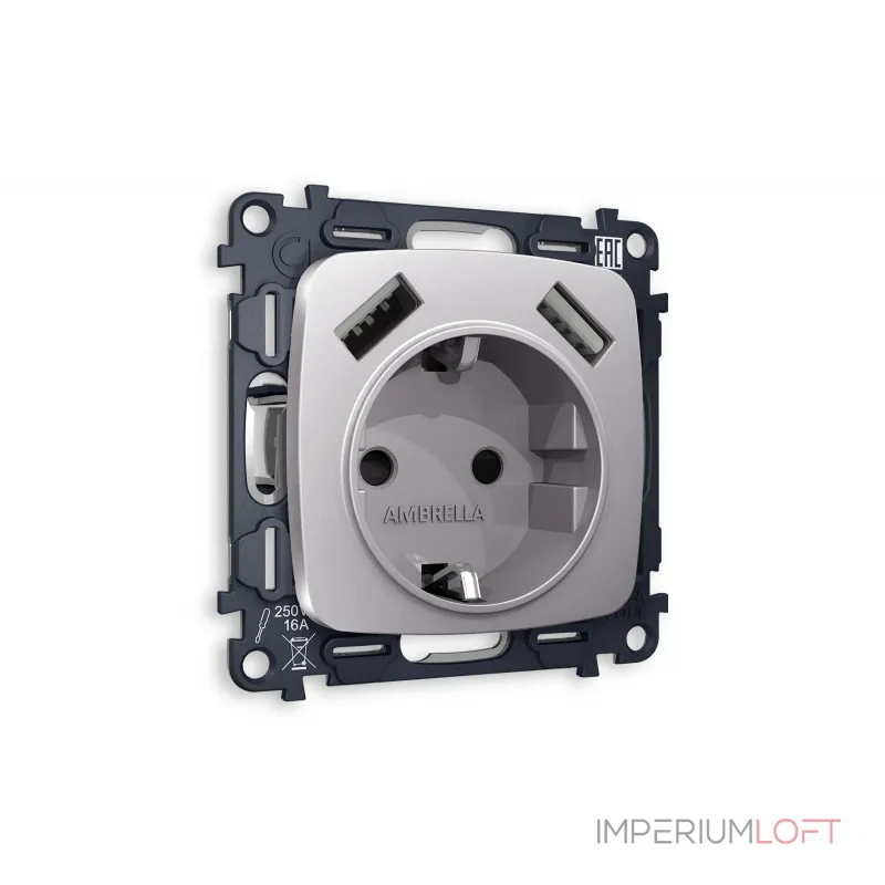 Магазин ImperiumLOFT представляет Вашему вниманию Комплект механизма электрической розетки OMEGA MO509010 Сталь матовый 2USB A+A 18W быстрая зарядка с заземлением и шторками 2P+E 16A-250V QUANT от производителя - Voltum.
