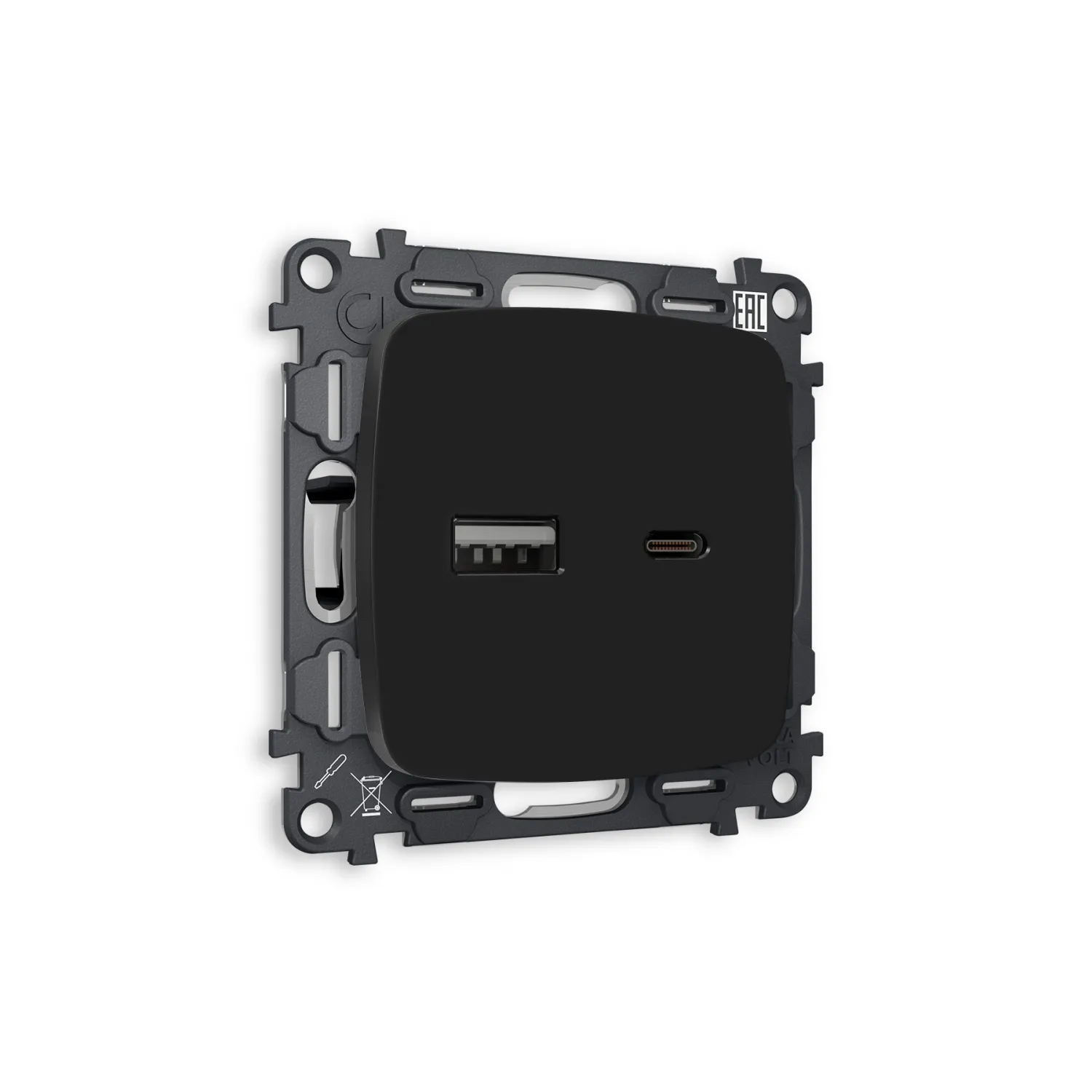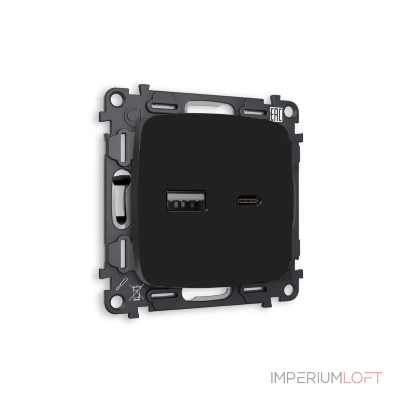 Магазин ImperiumLOFT представляет Вашему вниманию Комплект механизма розетки OMEGA MO811010 Черный матовый 2USB A+C 20W быстрая зарядка QUANT от производителя - Voltum.