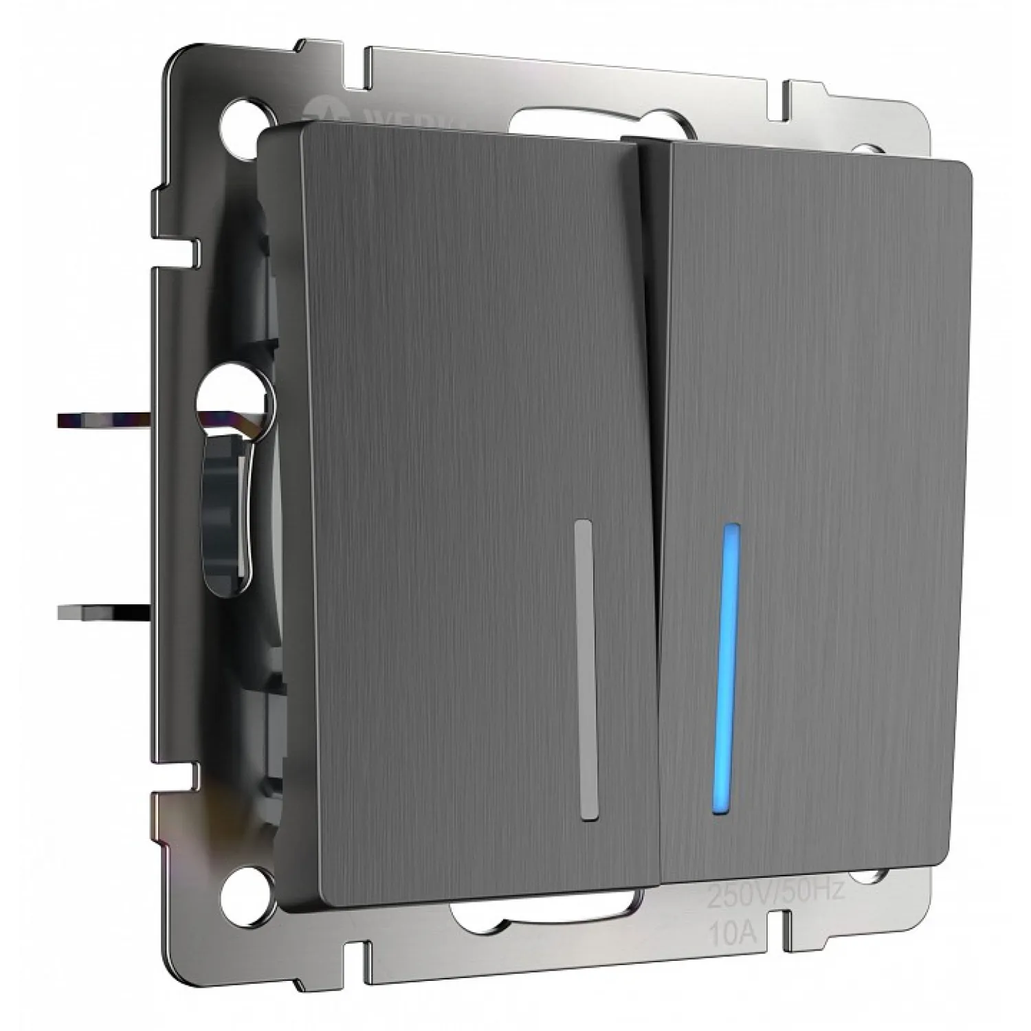 Магазин ImperiumLOFT представляет Вашему вниманию Выключатель двухклавишный с подсветкой без рамки Werkel графит рифленый W1120104 от производителя - Werkel.