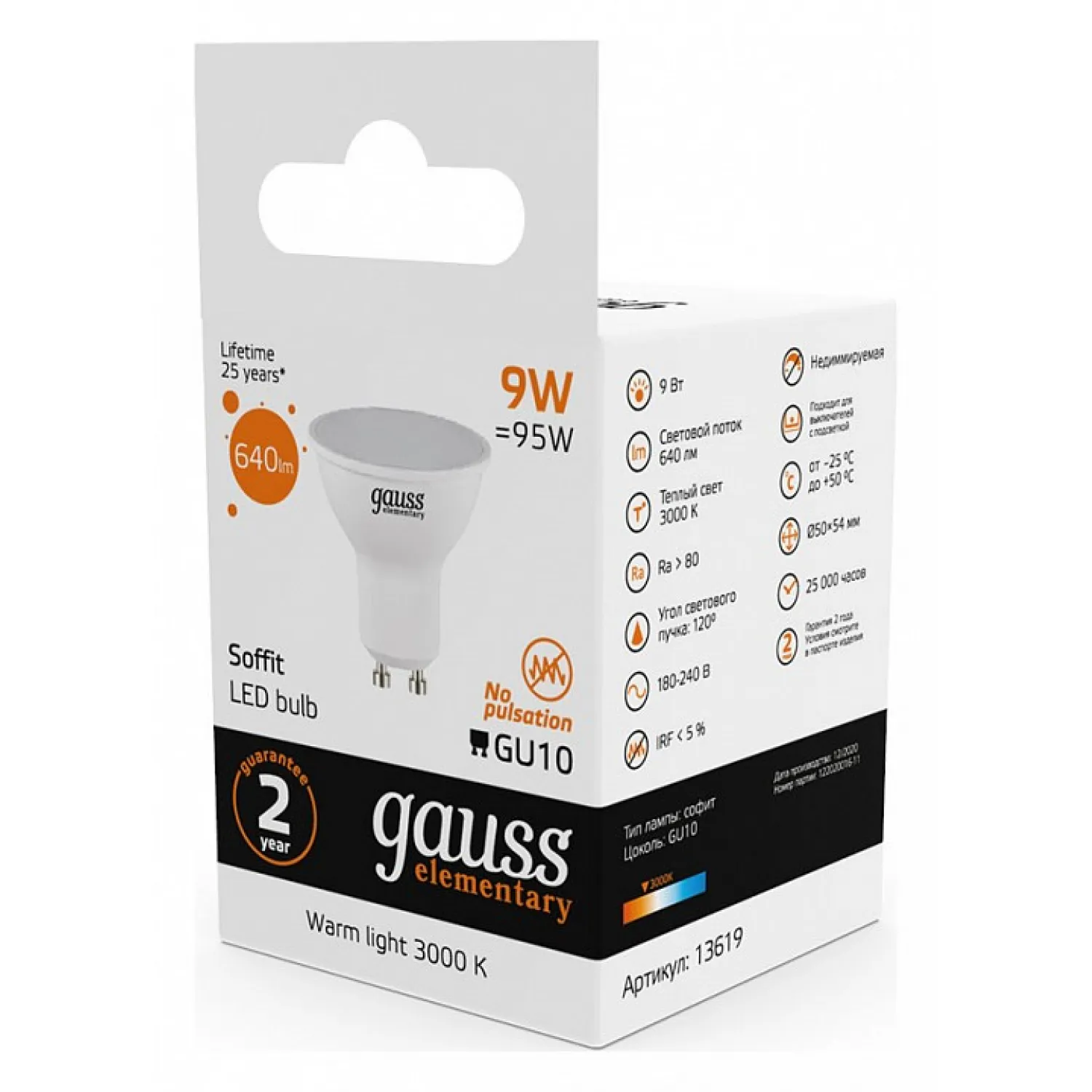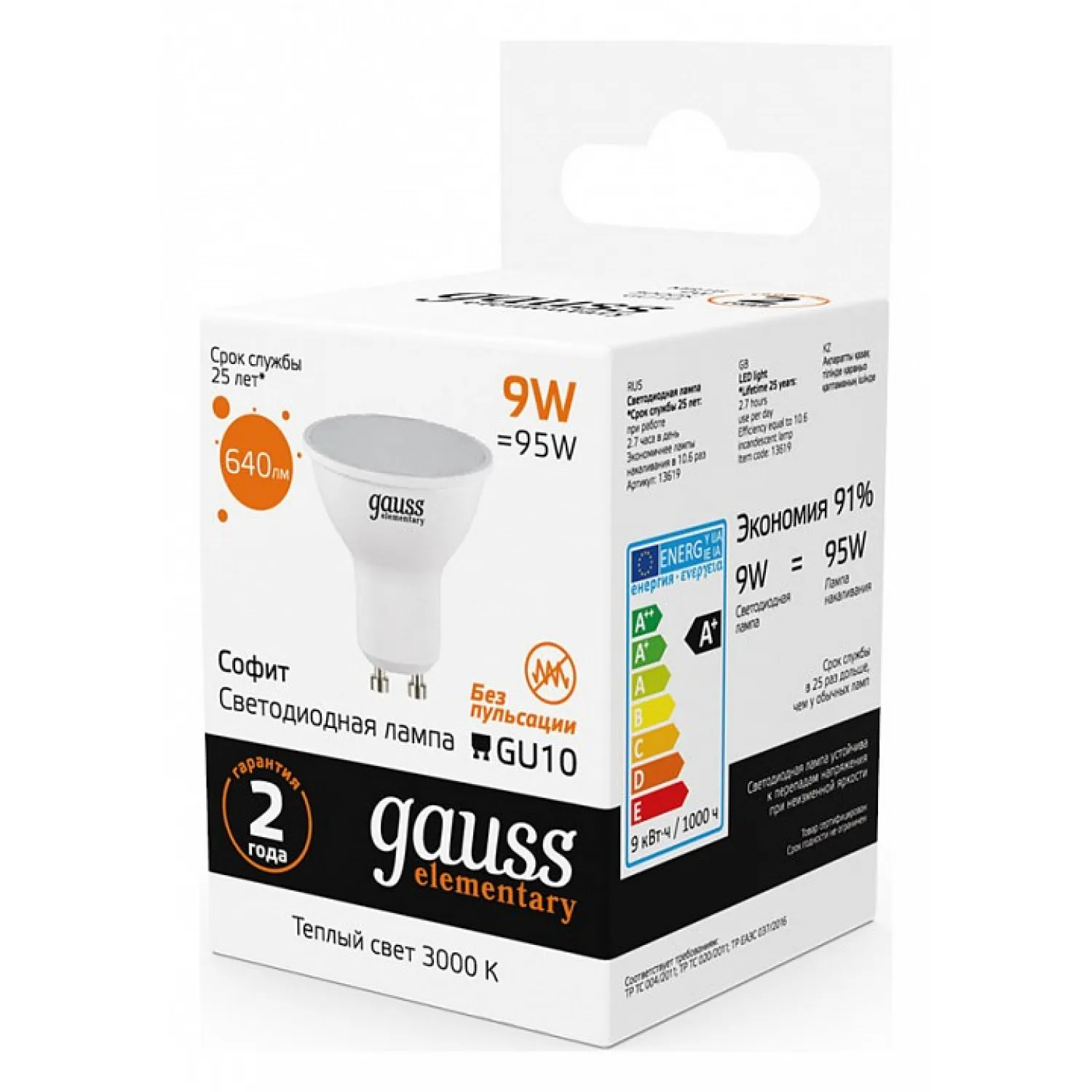 Лампа Gauss Софит GU10 9Вт 3000K 13619 идеально подходит для использования в люстрах, светильниках и спотах, идеально подходит для любого интерьера. Не упустите возможность обновить свое освещение с этой эффективной и стильной светодиодной лампой Gauss!