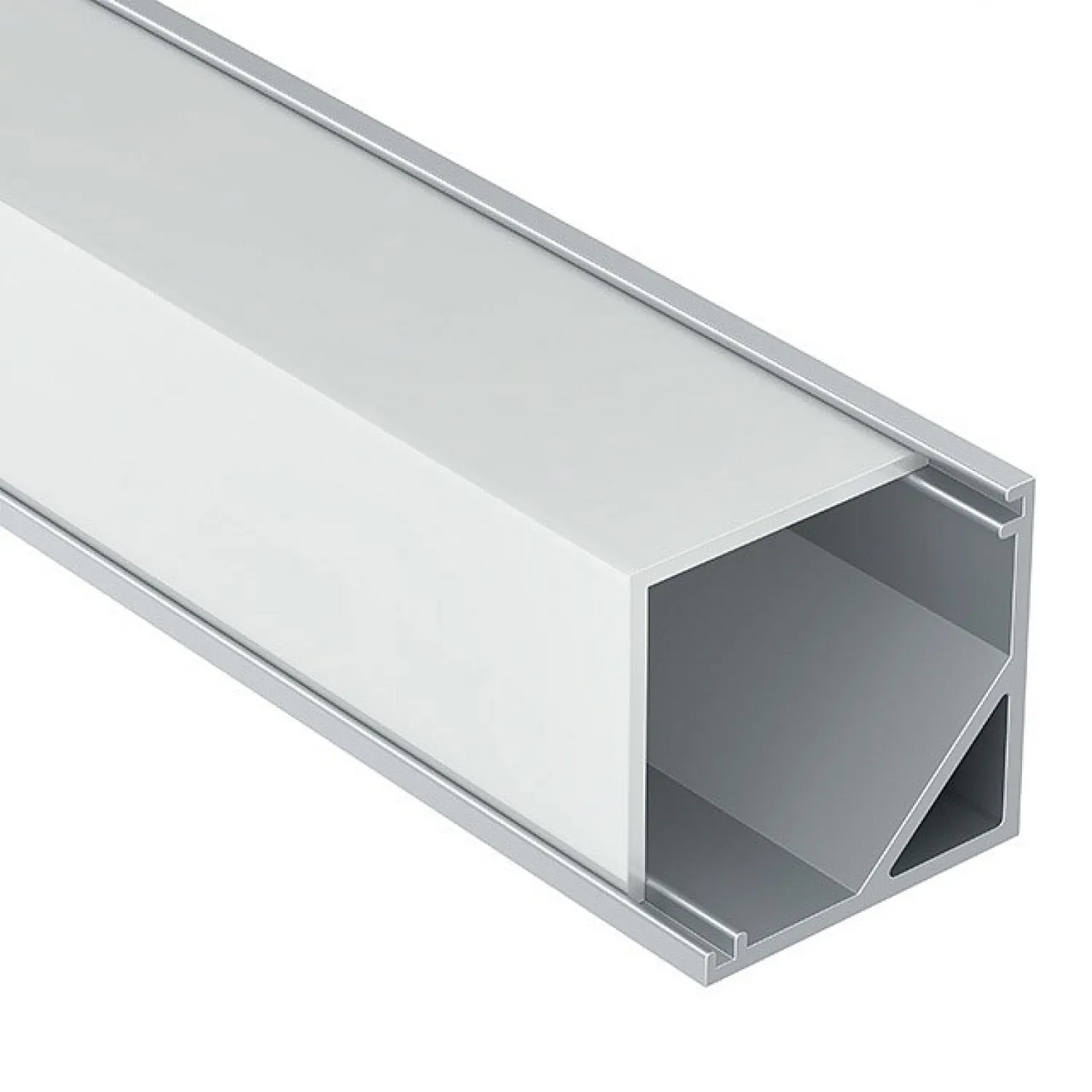 Цвет арматуры серый придает профилю элегантный и сдержанный вид, который легко впишется в любой интерьер. Благодаря своей универсальной форме, он идеально подходит для установки в углах помещений, позволяя создать эффектное и равномерное освещение.
