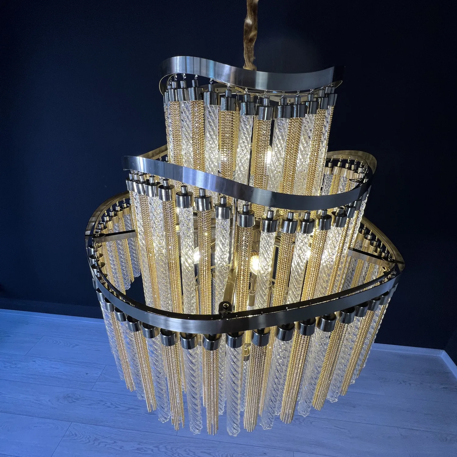 Эта потрясающая люстра сделана с использованием самых высококачественных материалов и обладает неповторимым дизайном, который точно привлечет внимание всех гостей. Ее изящные изогнутые формы и утонченные детали создают ощущение легкости и грации, придавая вашему интерьеру неповторимый шарм.