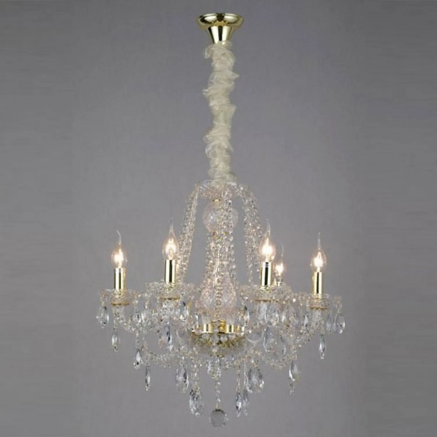 Цвет арматуры золото придает люстре роскошный и благородный вид, подчеркивая ее изысканность. Она прекрасно сочетается с различными стилями интерьера, будь то классический или современный.