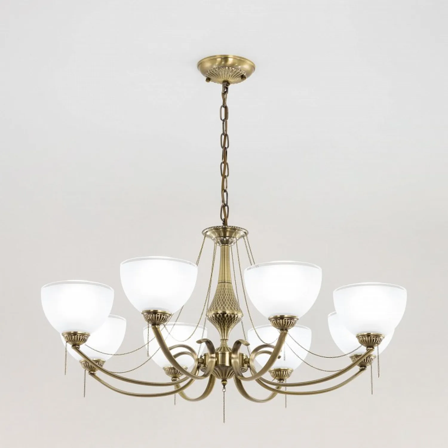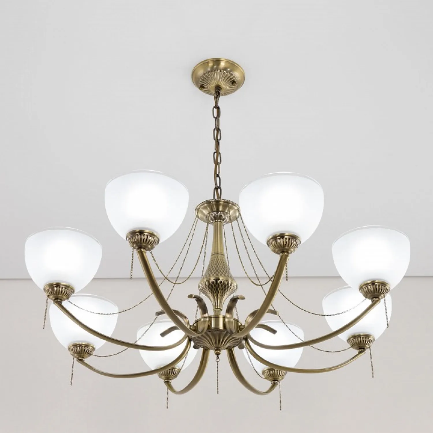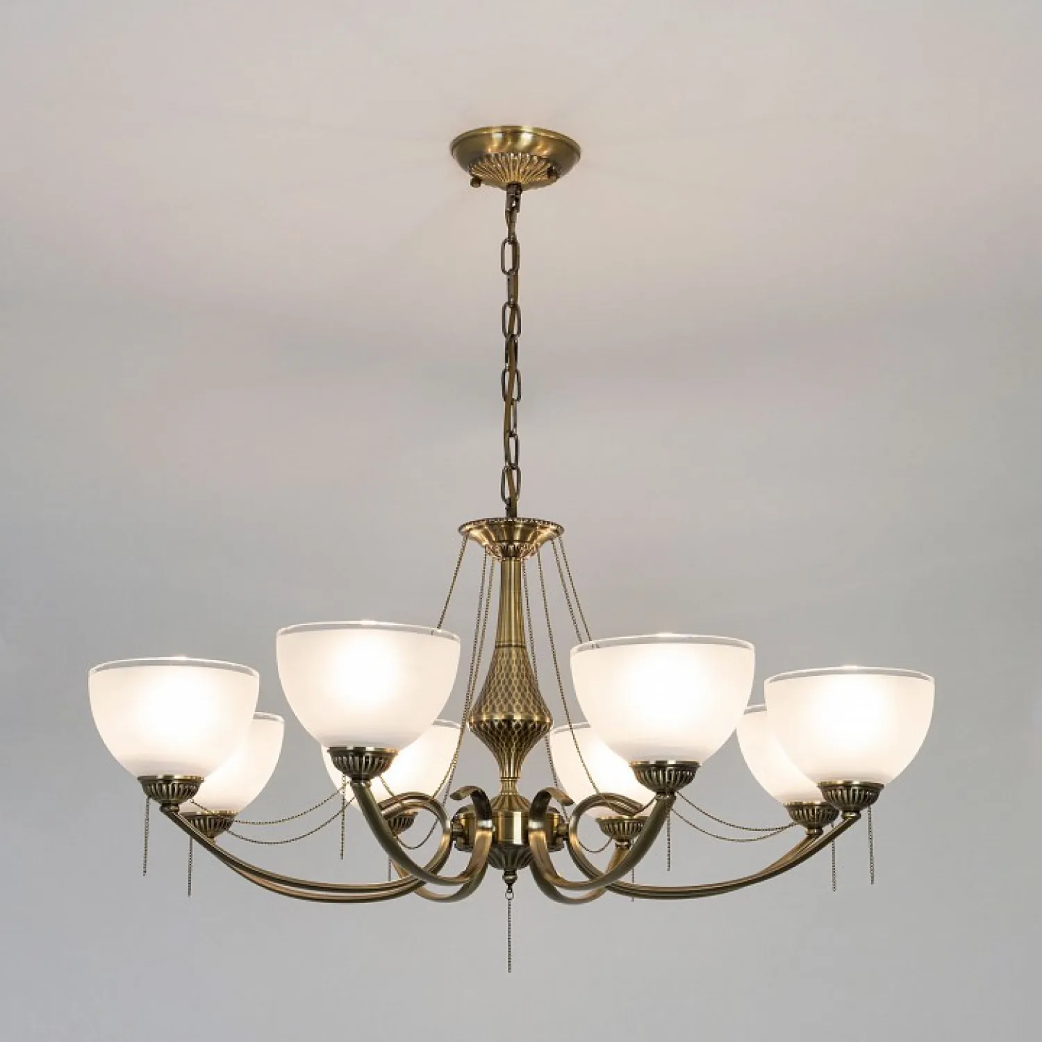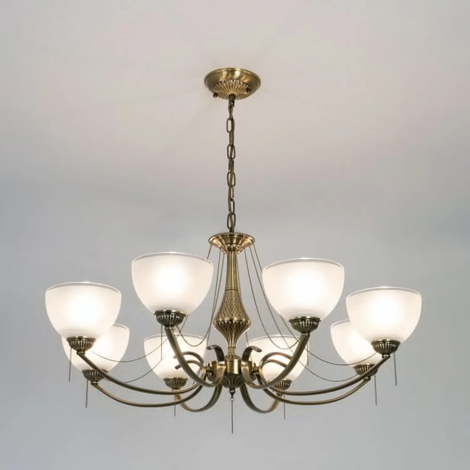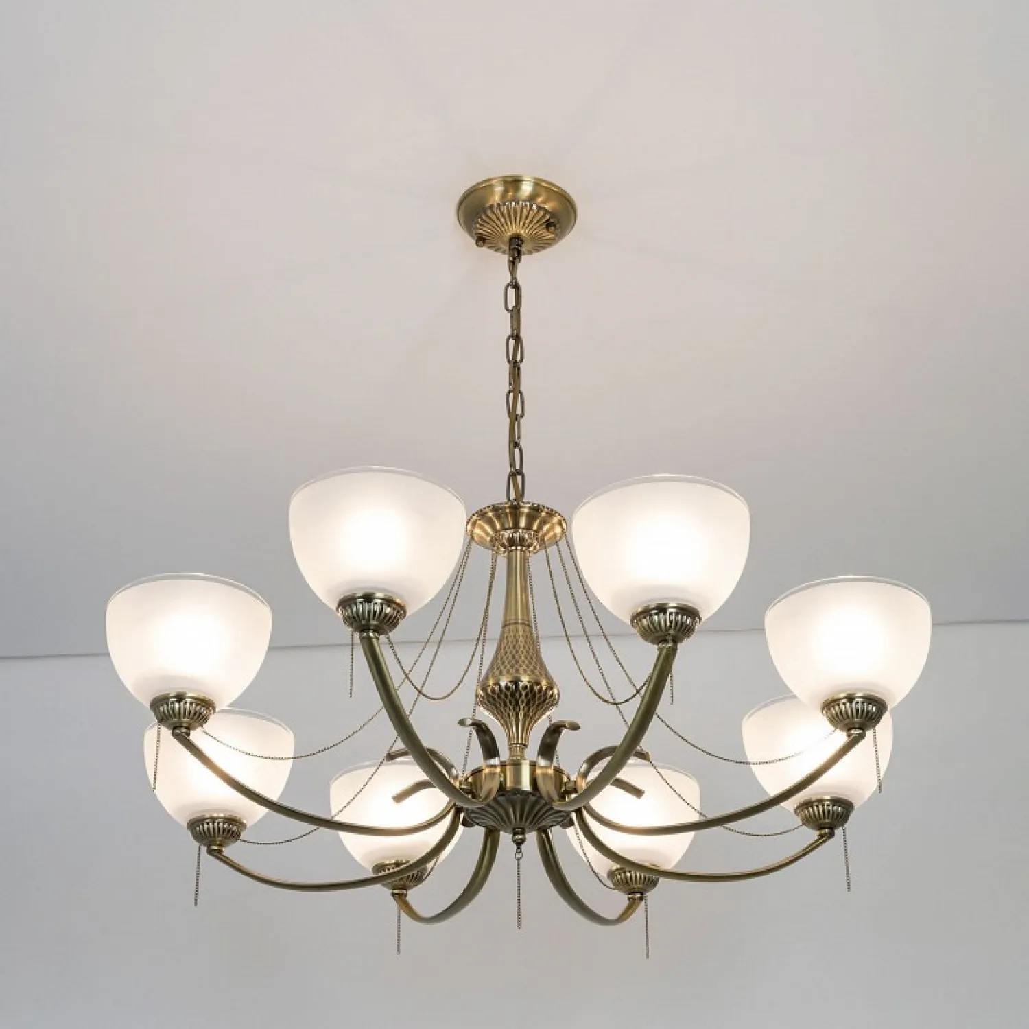 Основание изготовлено из прочного металла, который обеспечивает надежную и долговечную конструкцию. Роскошные хрустальные подвески придают люстре неповторимый шарм и создают игру света, делая вашу комнату еще более уютной и привлекательной.
