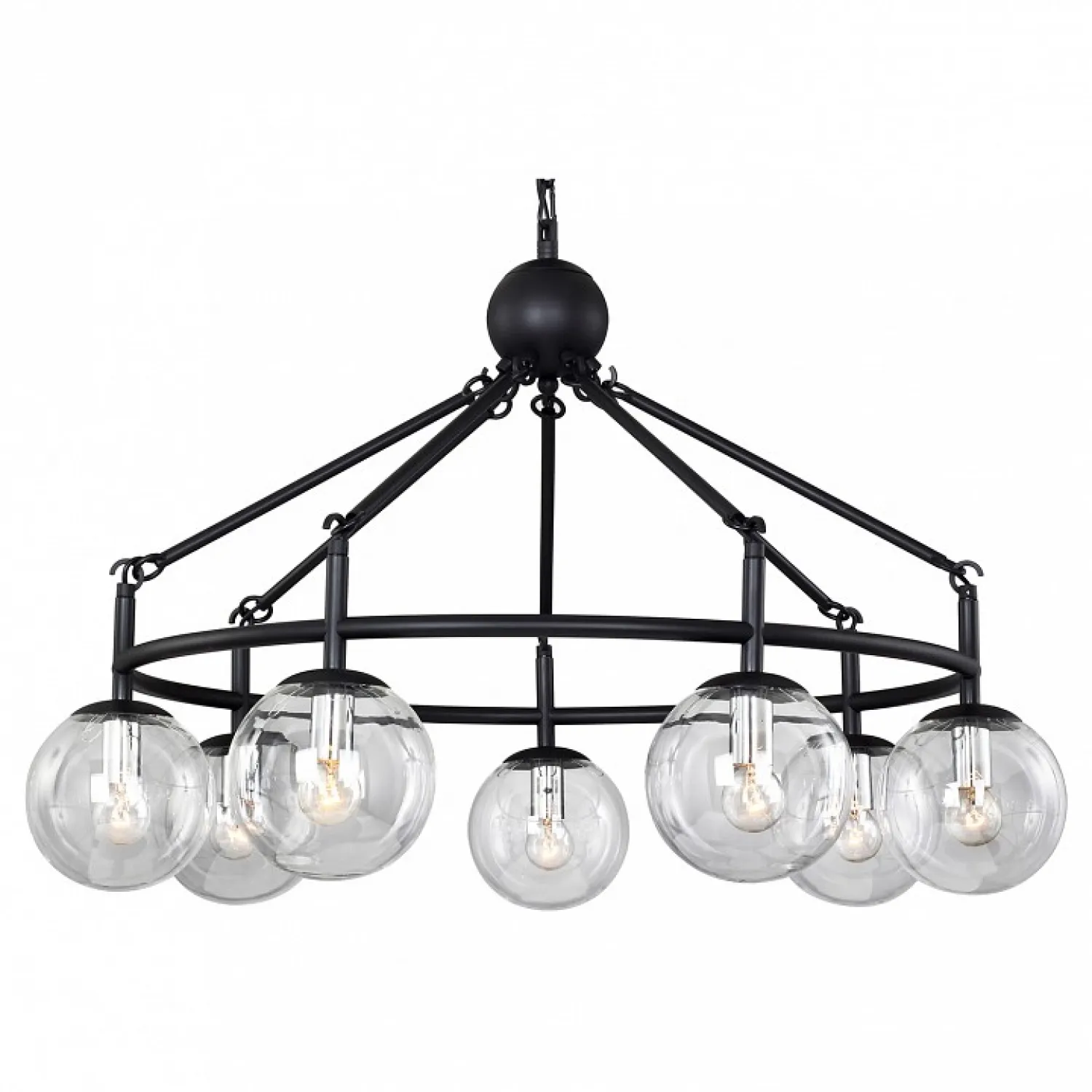 Сочетание изящного дизайна и качественных материалов делает эту люстру привлекательной и долговечной. Прозрачные плафоны изготовлены из высококачественного стекла, которое прекрасно рассеивает свет, создавая игру теней и отражений вокруг. Это придает вашему пространству особый шарм и уют.