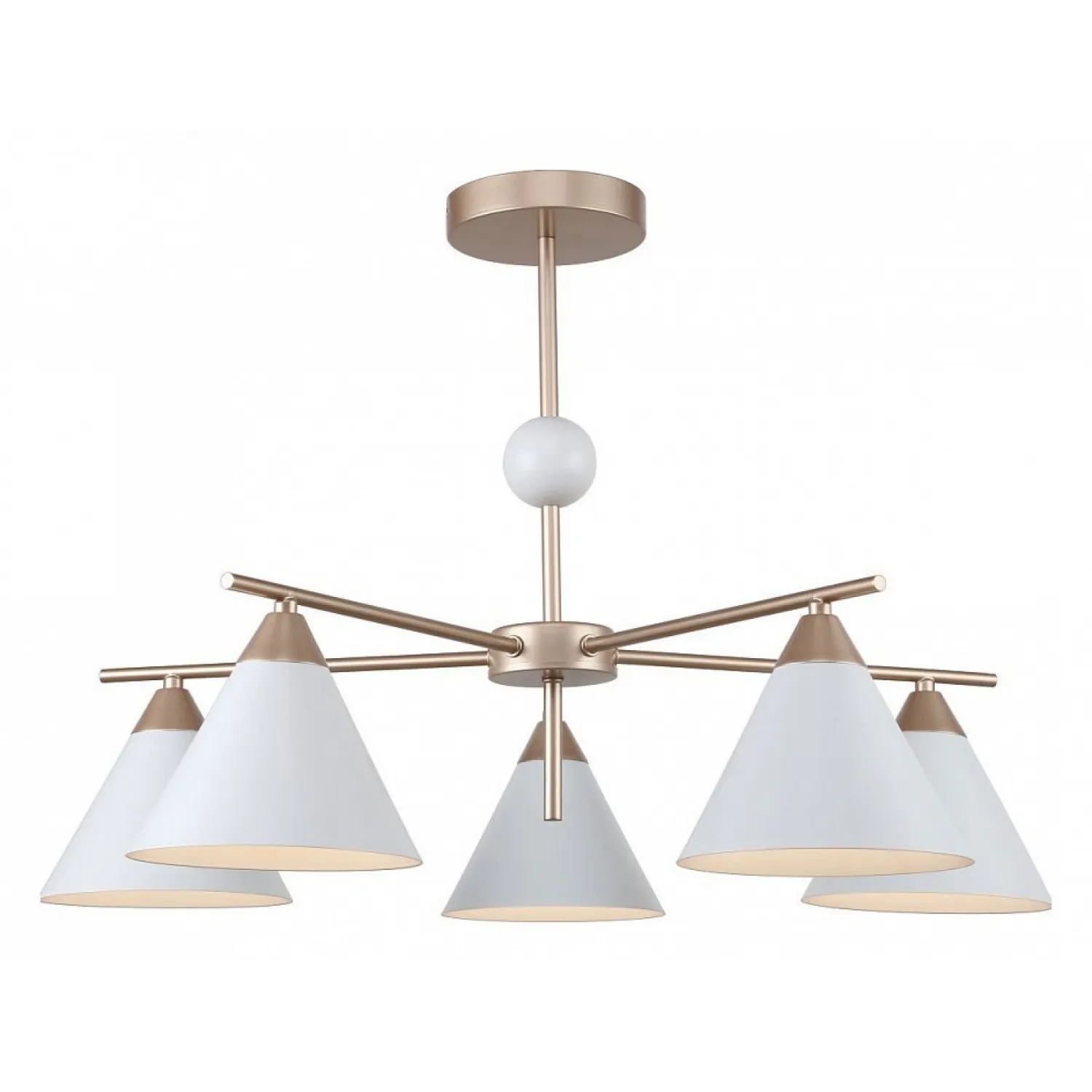 Эта потрясающая люстра сочетает в себе изысканный дизайн и высокое качество исполнения. Арматура выполнена в прекрасном золотом цвете, который придает ей изысканность и шик. Плафоны изящно окрашены в белый цвет, что придает помещению светлость и чистоту.