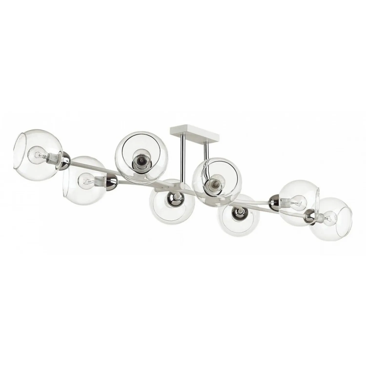 Цвет арматуры белый придает ей нежность и легкость, а прозрачные плафоны создают игру света и тени, добавляя уюта и атмосферы в вашем помещении.