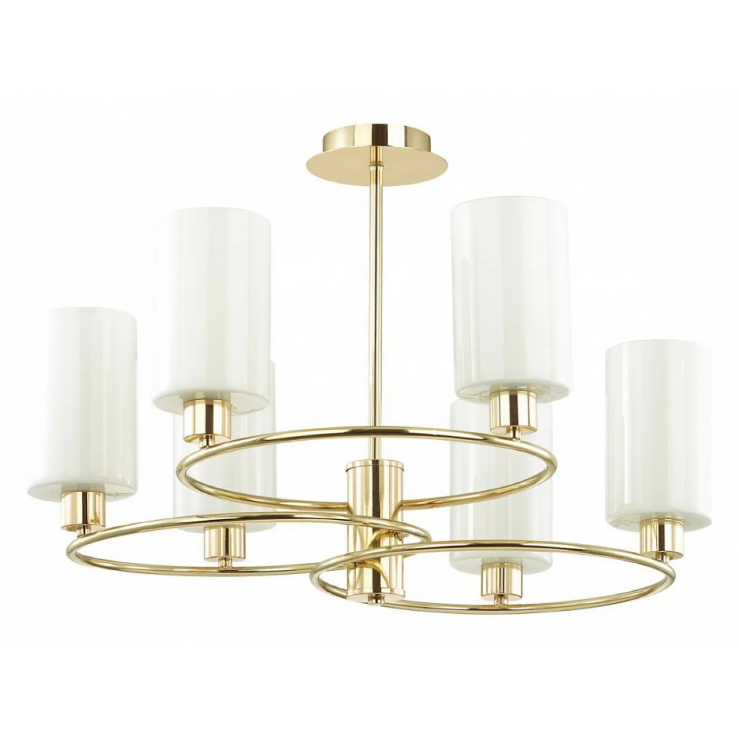 Эта изысканная люстра с арматурой золотого цвета и плафонами в нежном белом оттенке станет настоящим украшением вашего дома. Ее элегантный дизайн идеально сочетается с любым стилем интерьера, добавляя в него шарм и изысканность.