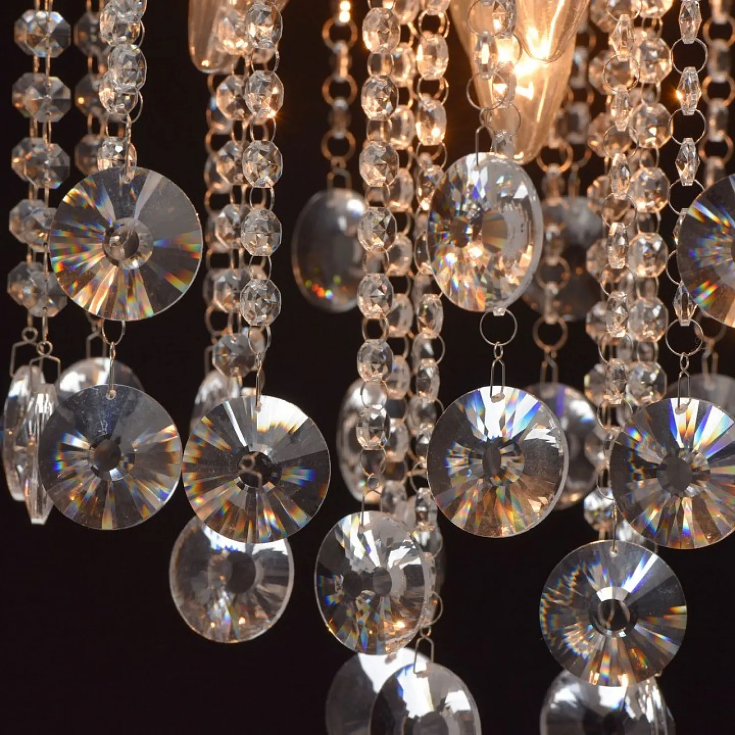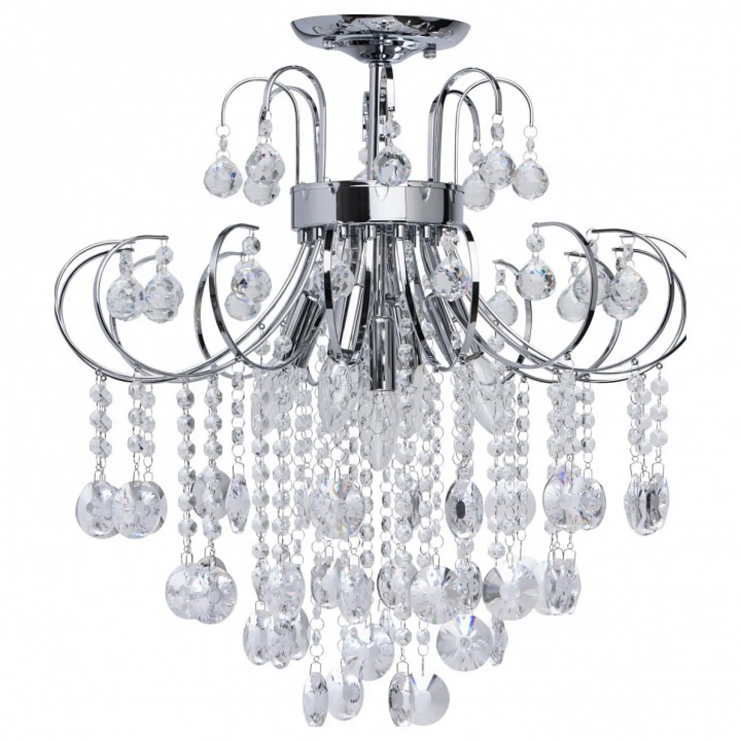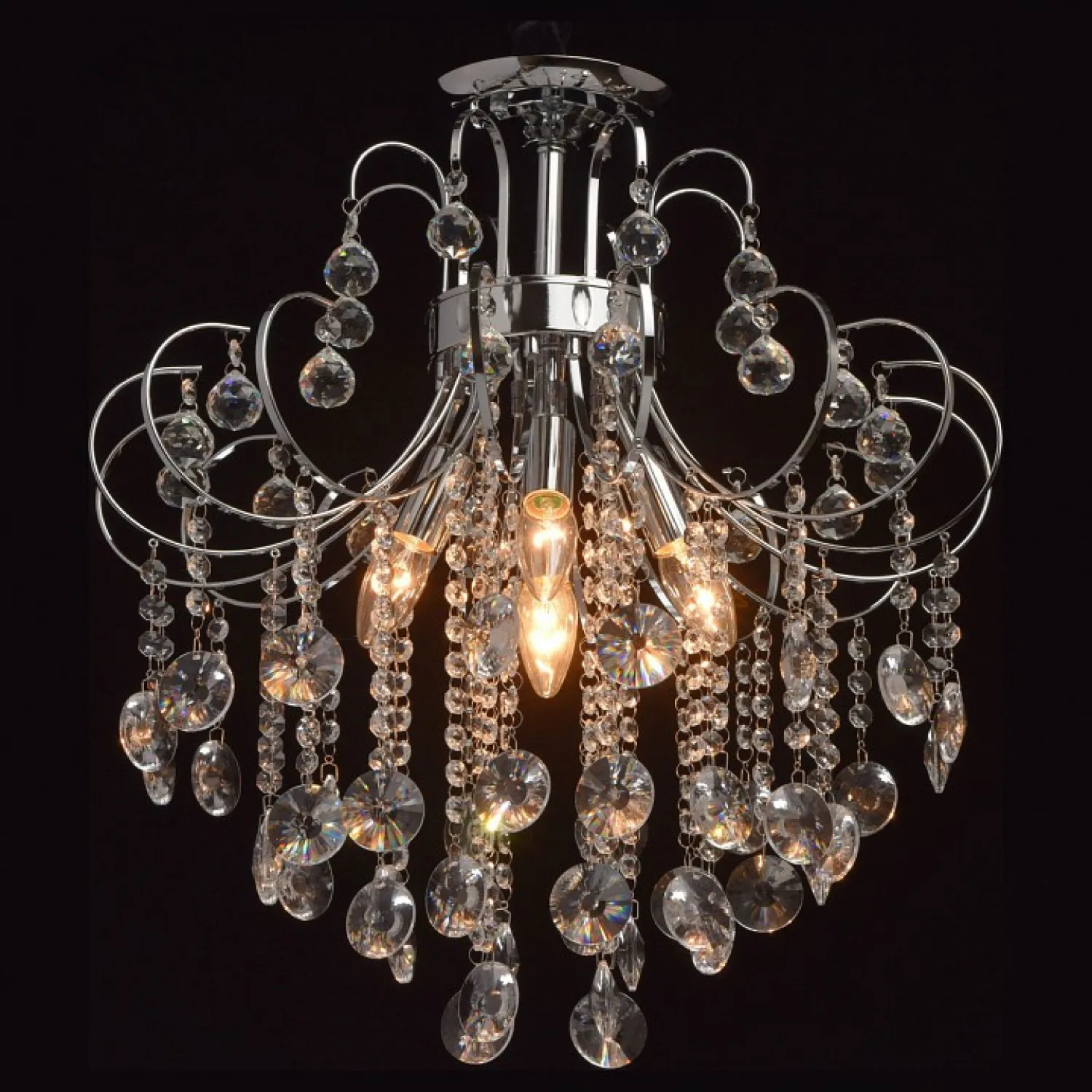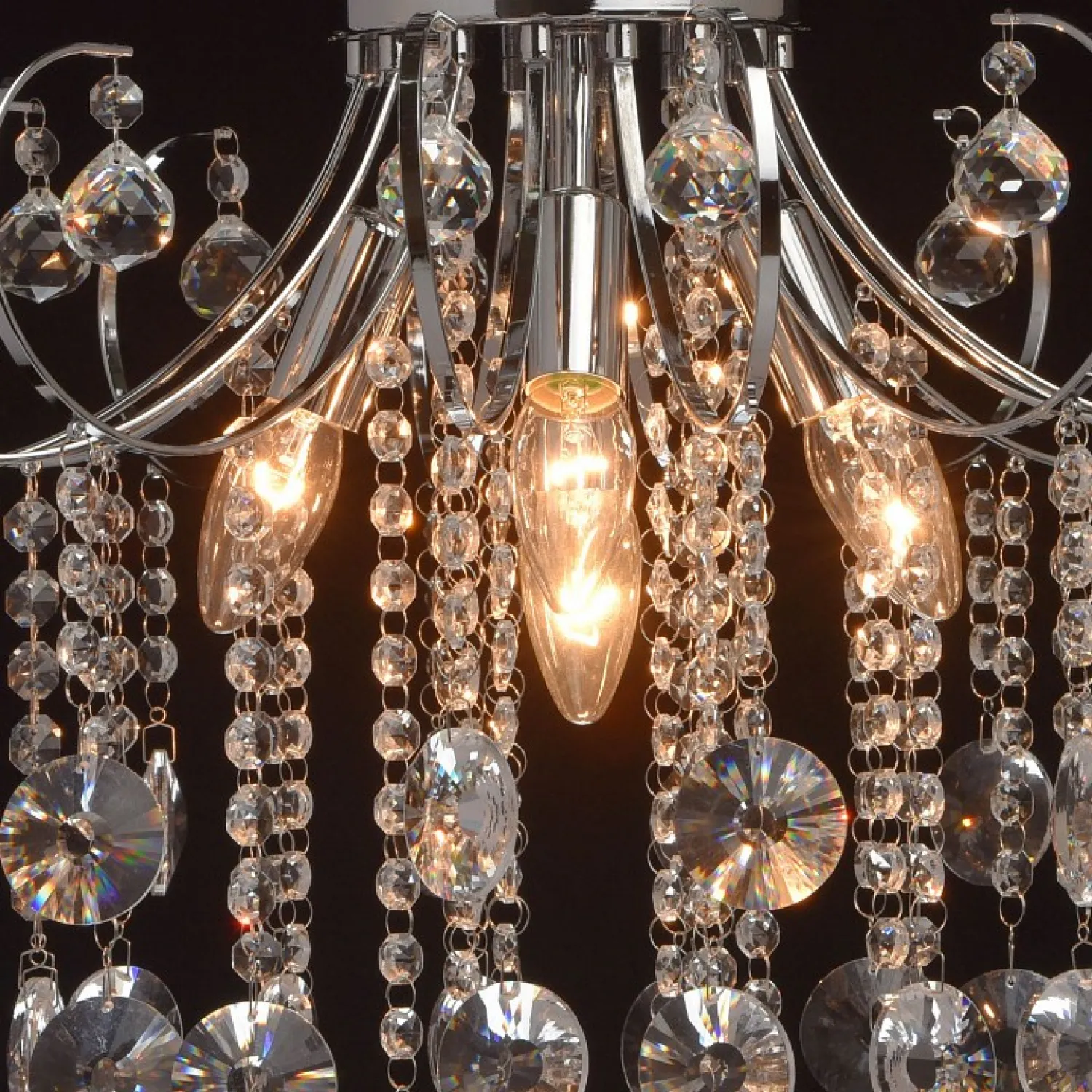 Арматура выполнена в хромированном цвете, что придает ей блеск и привлекательность. Этот материал надежен и долговечен, поэтому люстра прослужит вам долгие годы, не теряя своего первоначального вида.