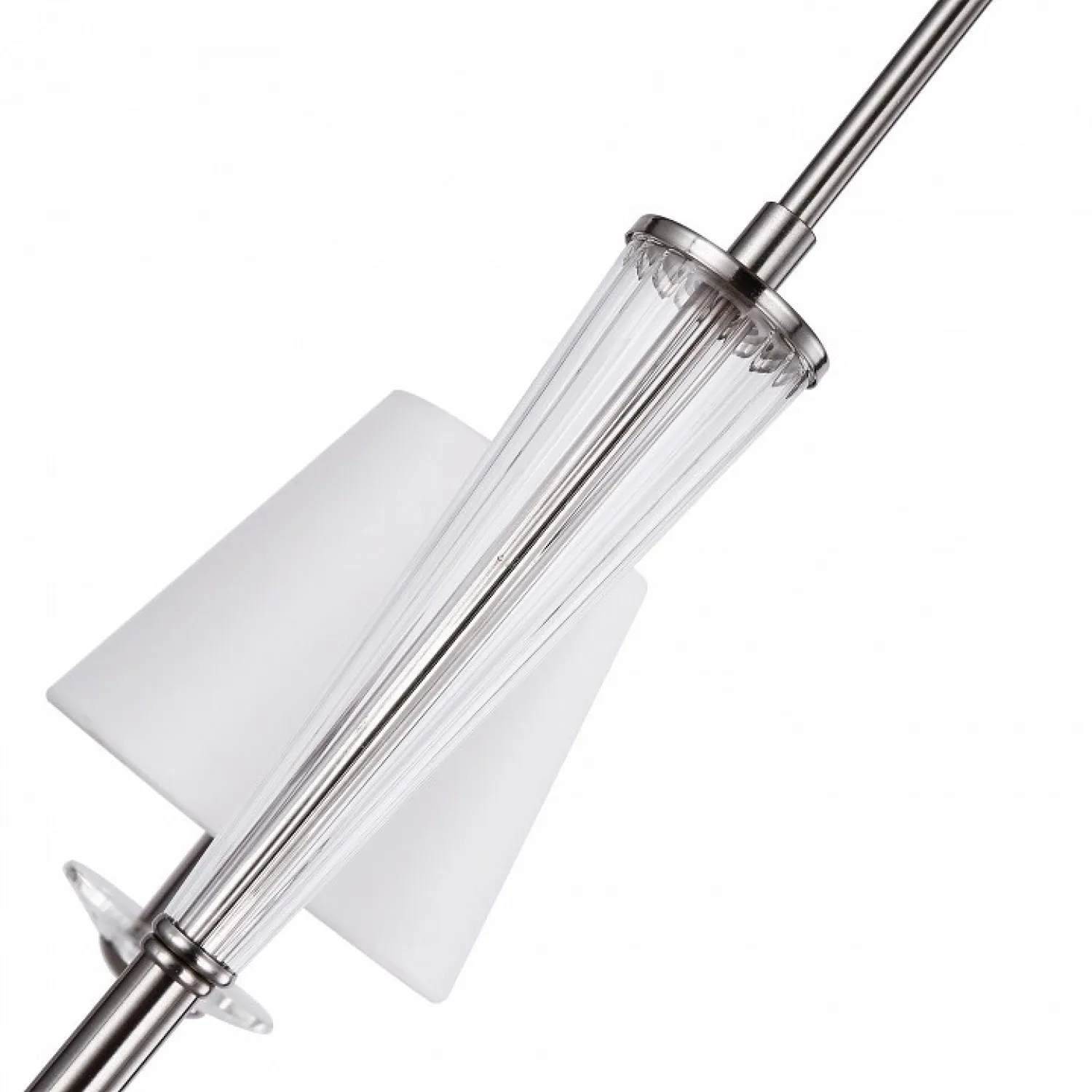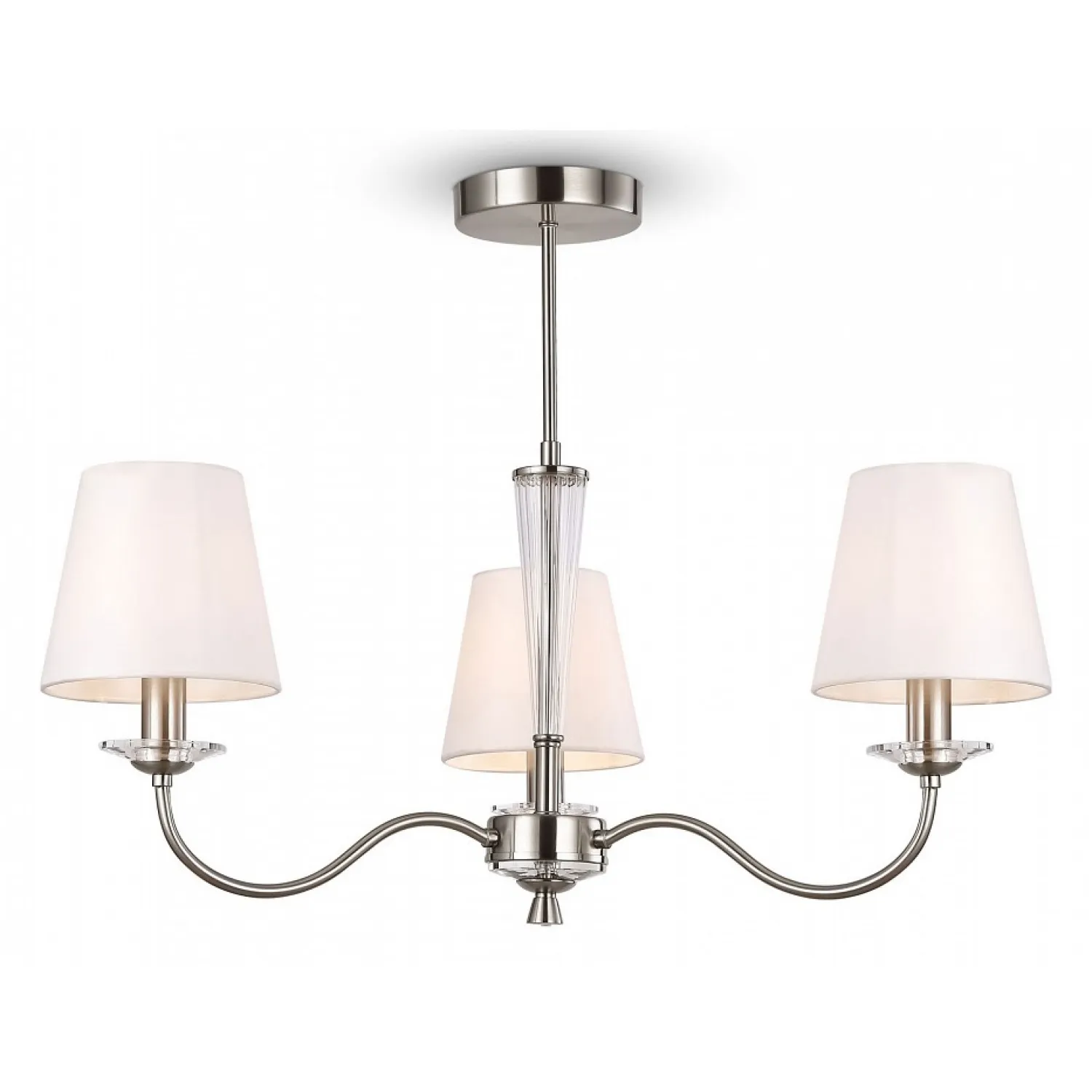 Эта потрясающая люстра сочетает в себе современный дизайн с функциональностью. Цвет арматуры в никеле и белые плафоны создают эффектный контраст, который привлекает взгляды и добавляет изысканности в любое помещение.